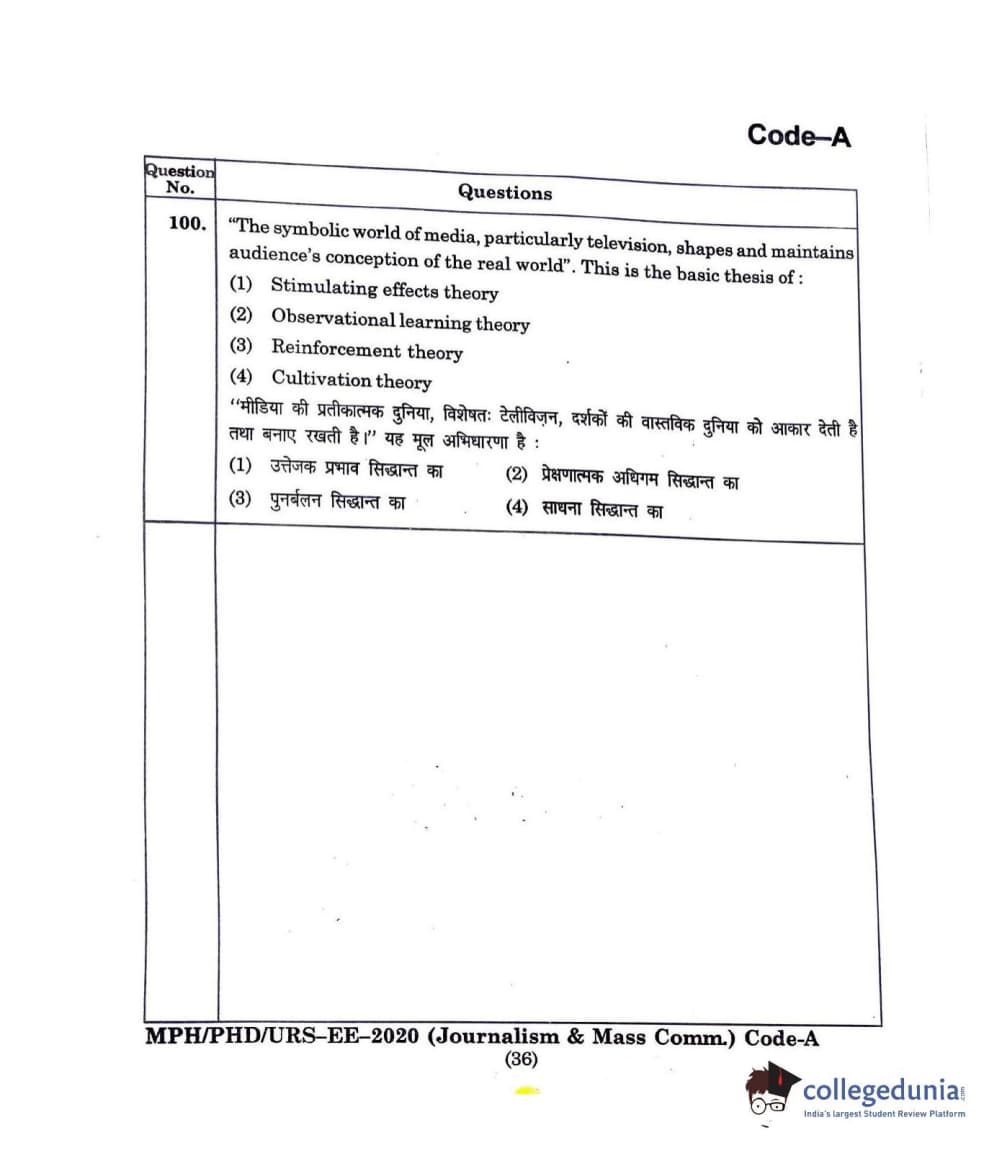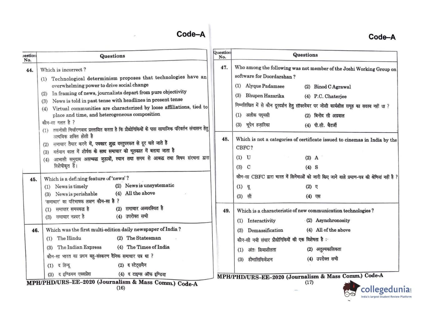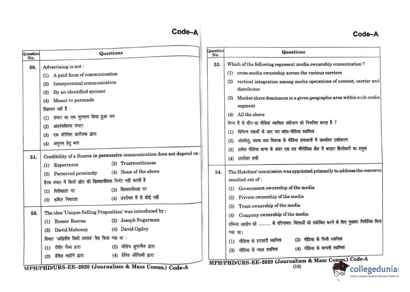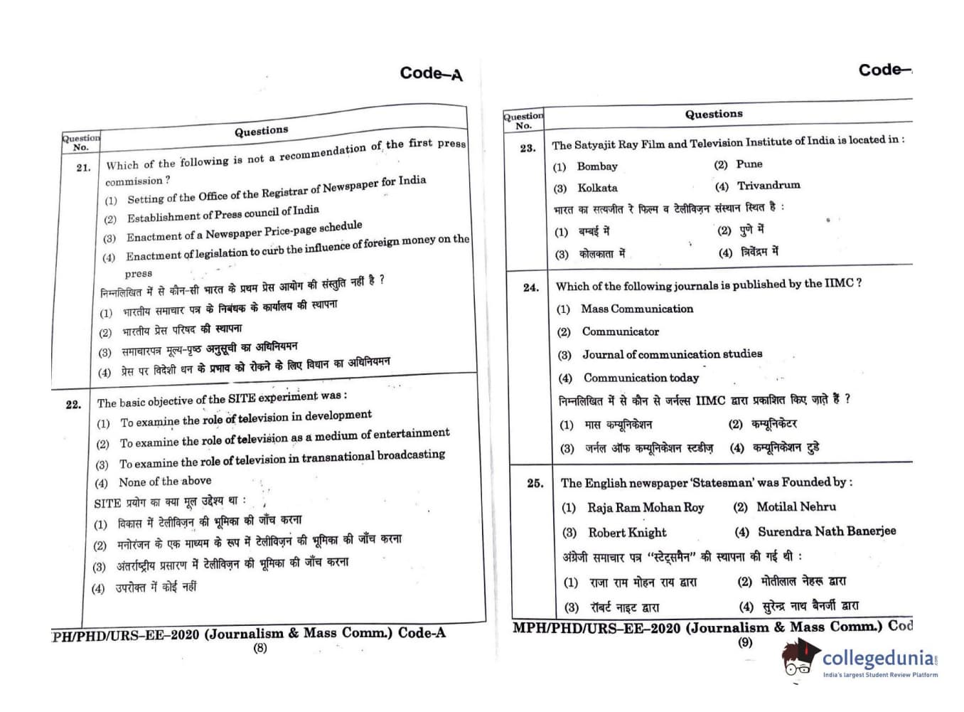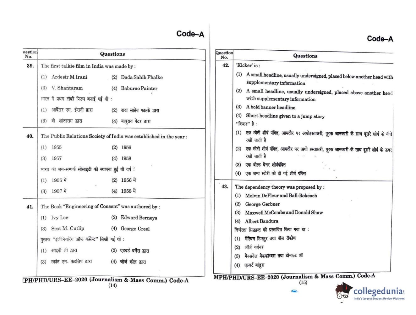 MDUCEE 2020 Ph.D/URS – Journalism and Mass Communication Set A Question Paper with Answer Key PDFs