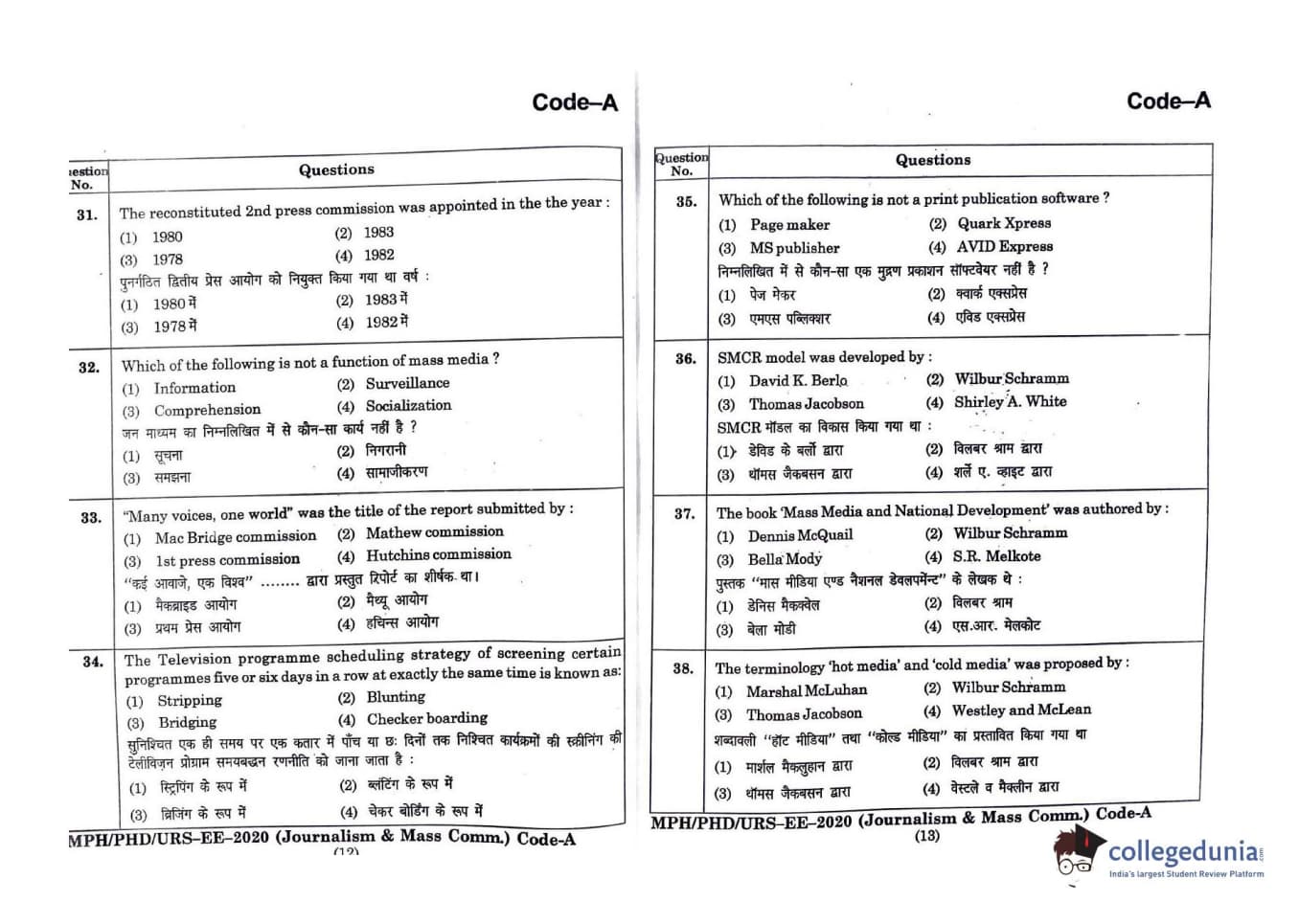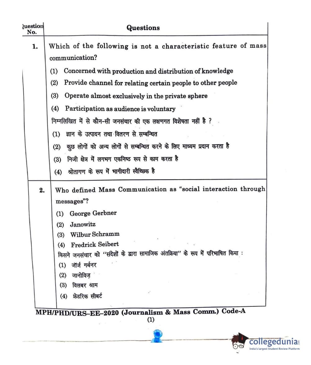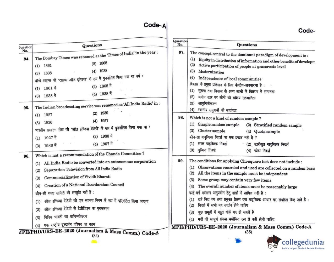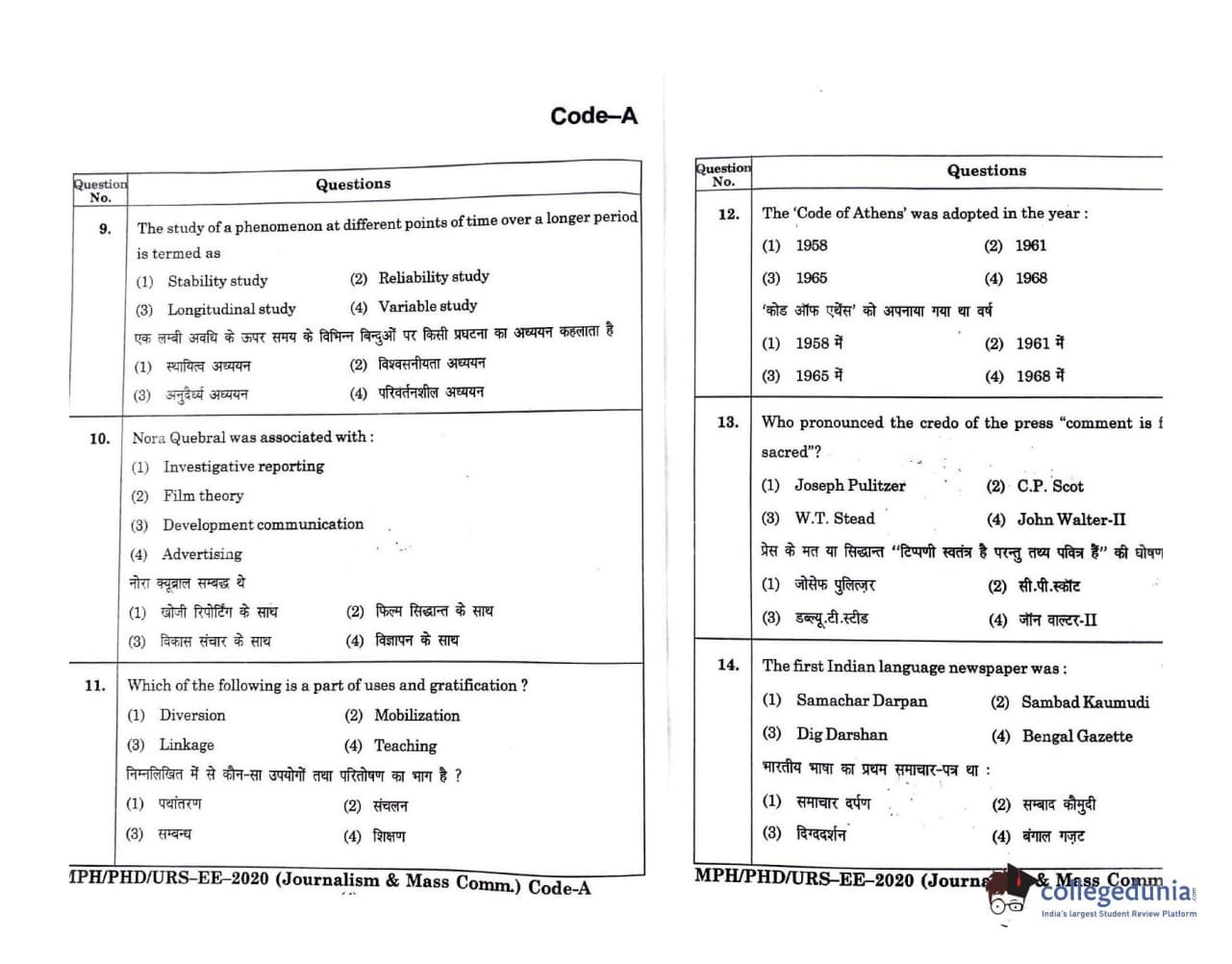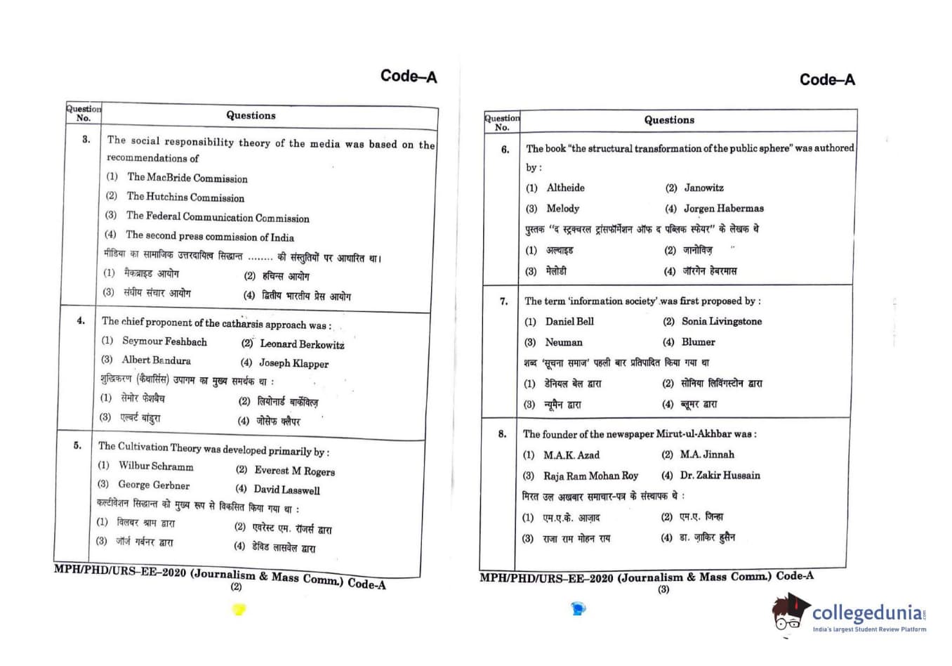 MDUCEE 2020 Ph.D/URS – Journalism and Mass Communication Set A Question Paper with Answer Key PDFs