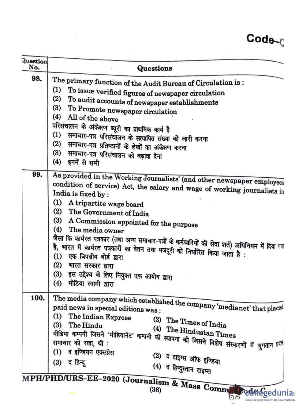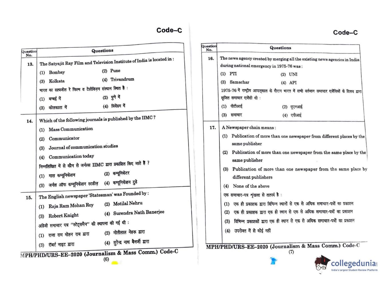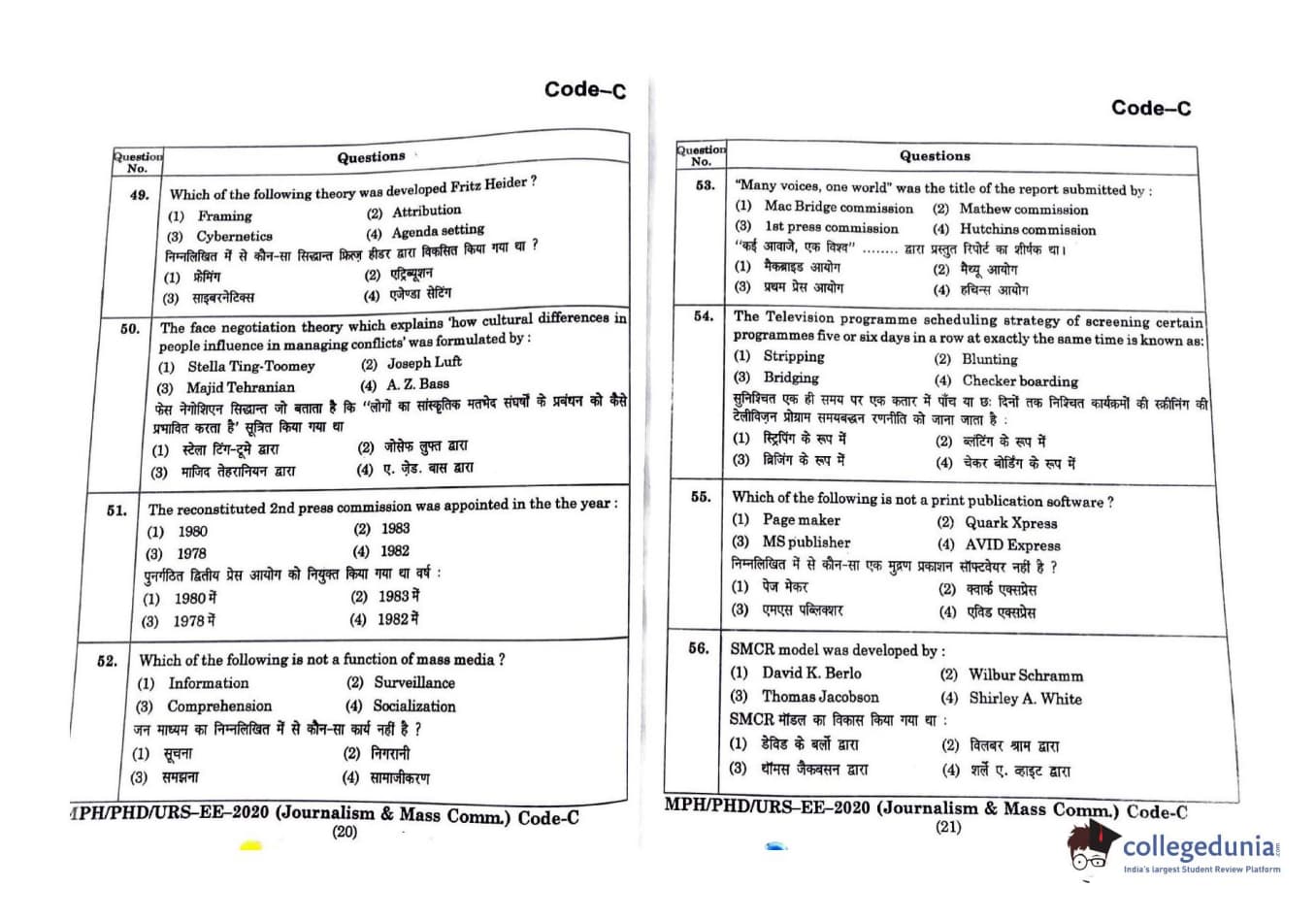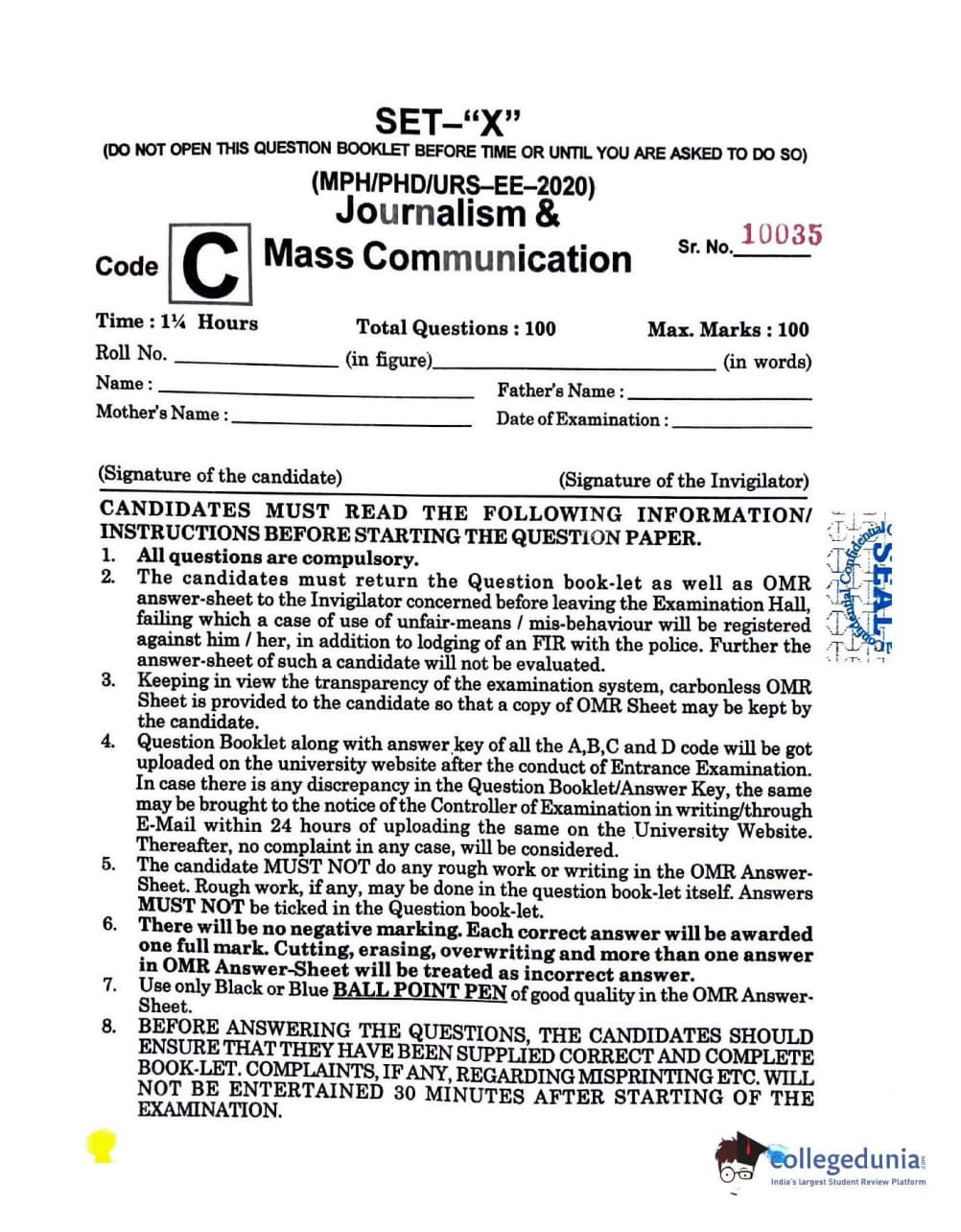 MDUCEE 2020 Ph.D/URS - Journalism and Mass Communication Set C Question Paper with Answer Key PDFs
