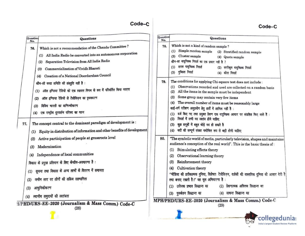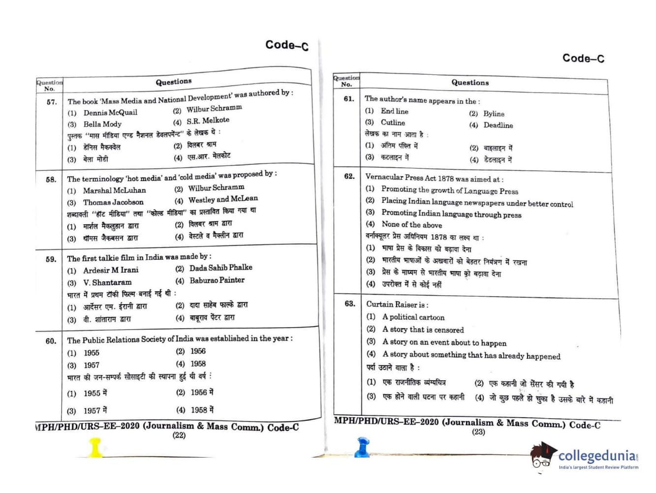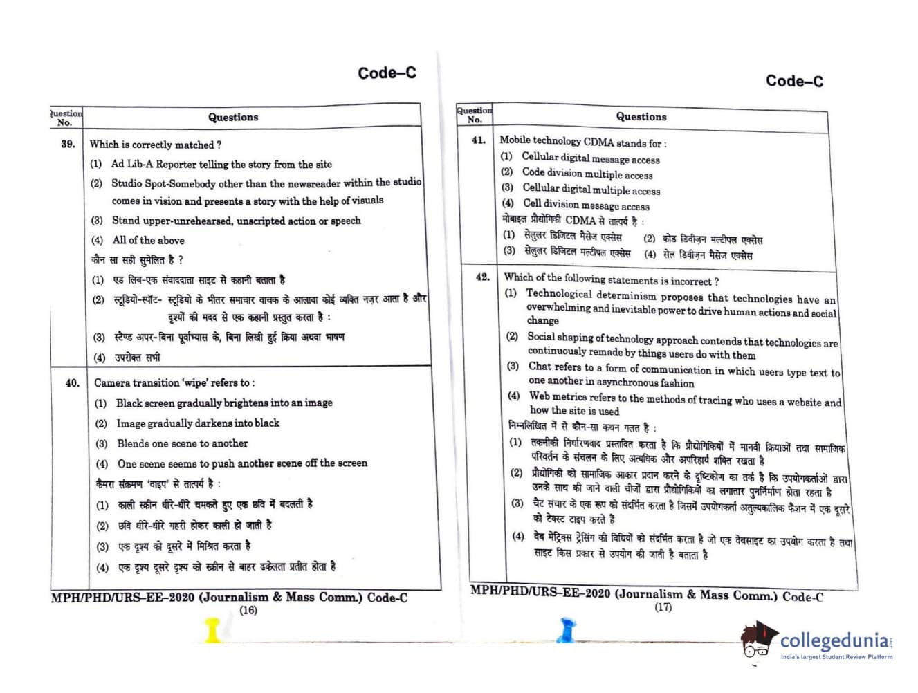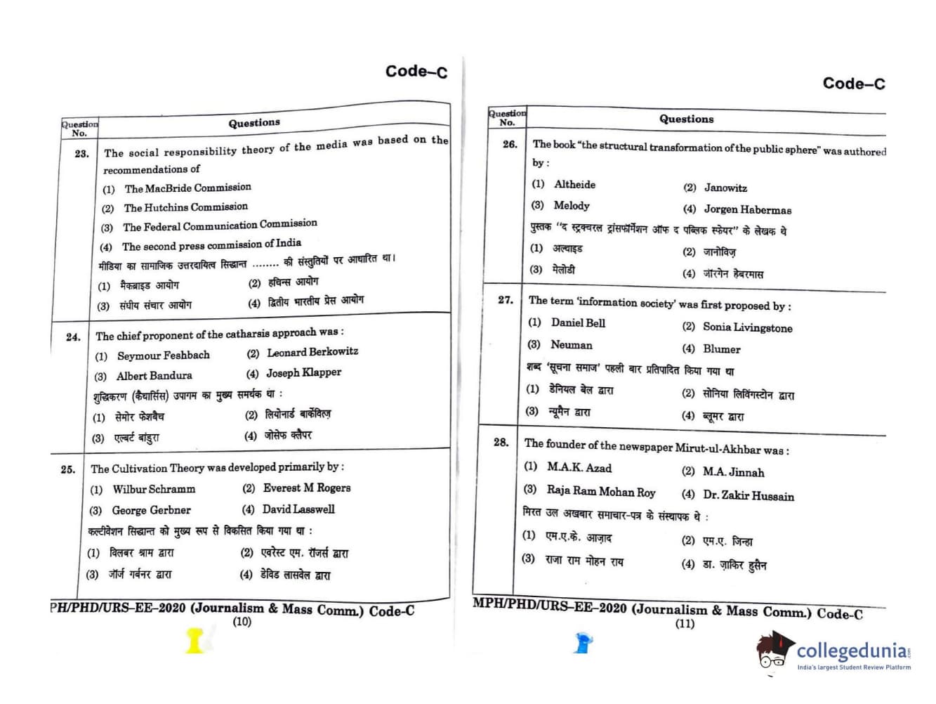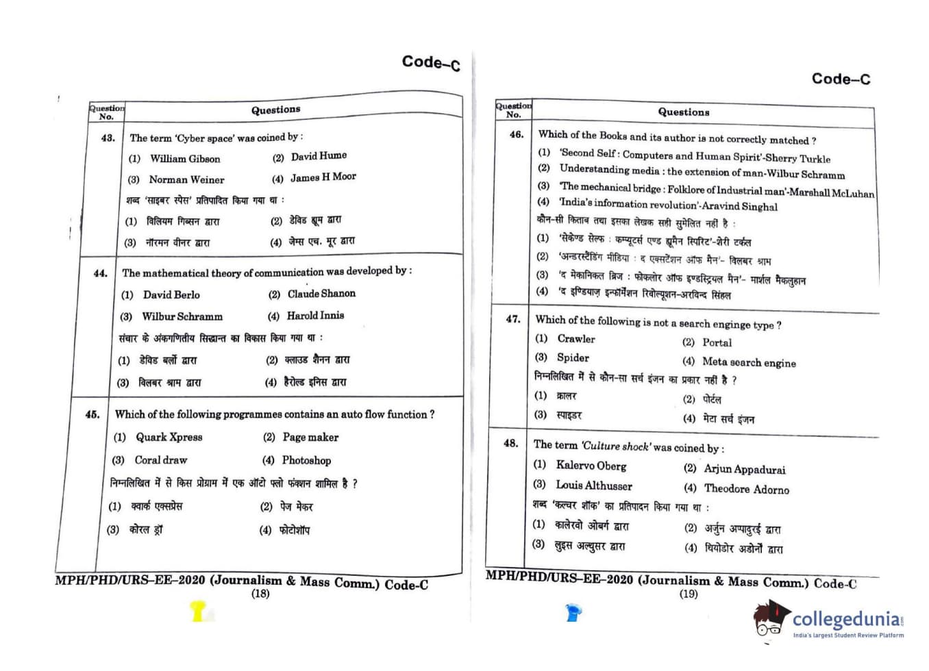 MDUCEE 2020 Ph.D/URS - Journalism and Mass Communication Set C Question Paper with Answer Key PDFs