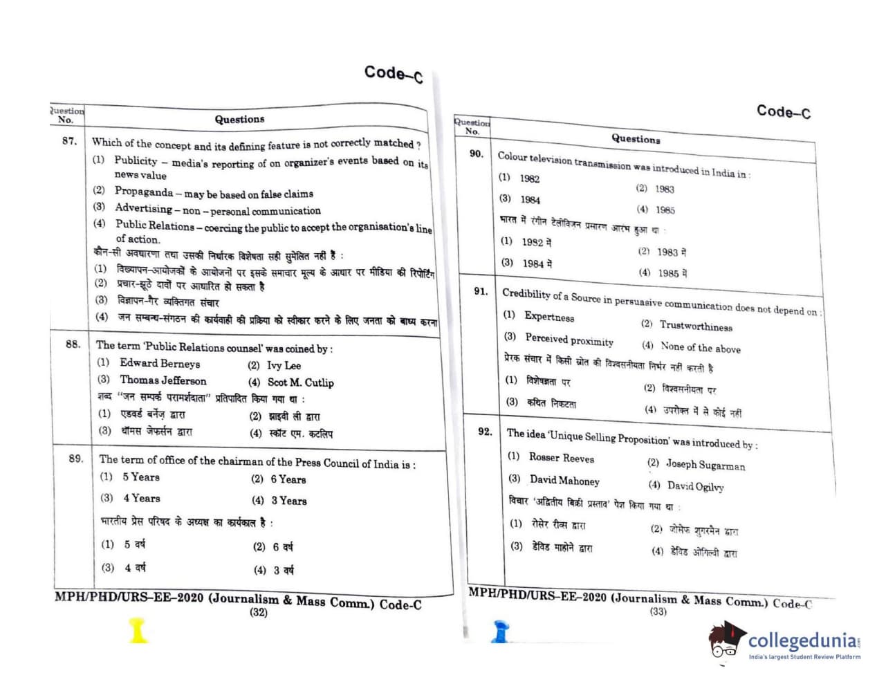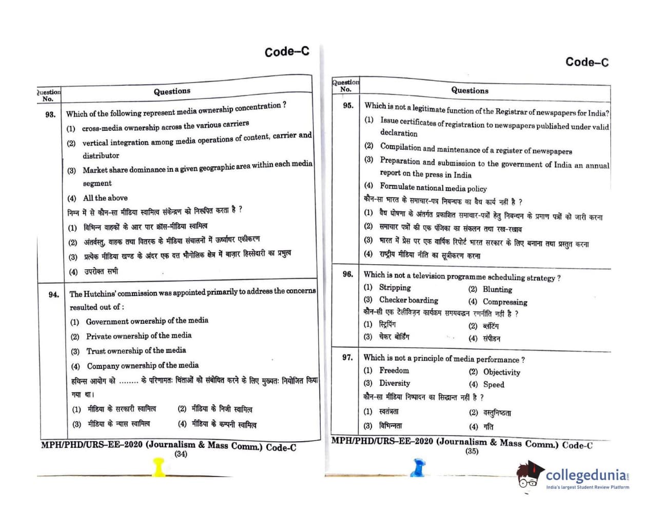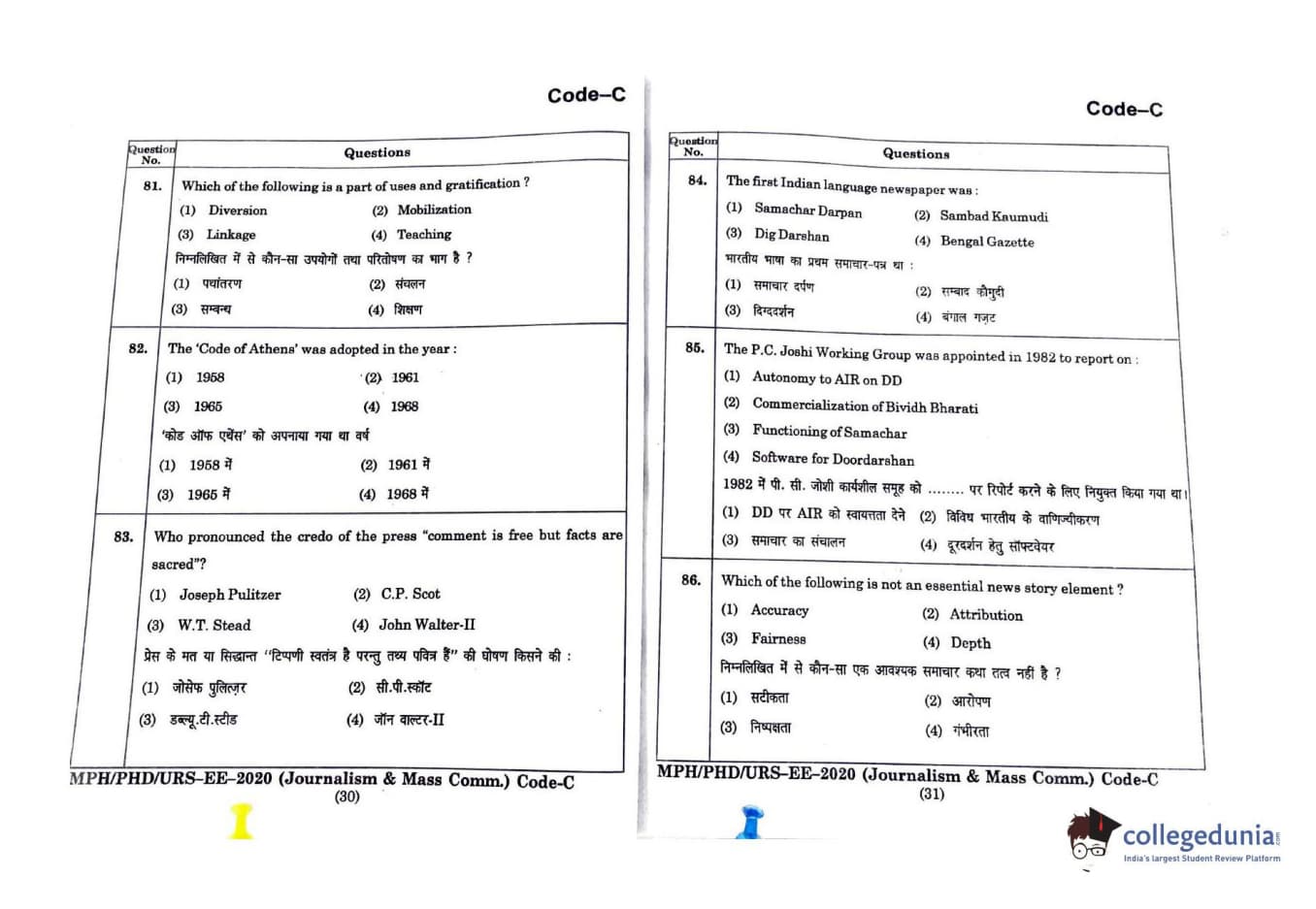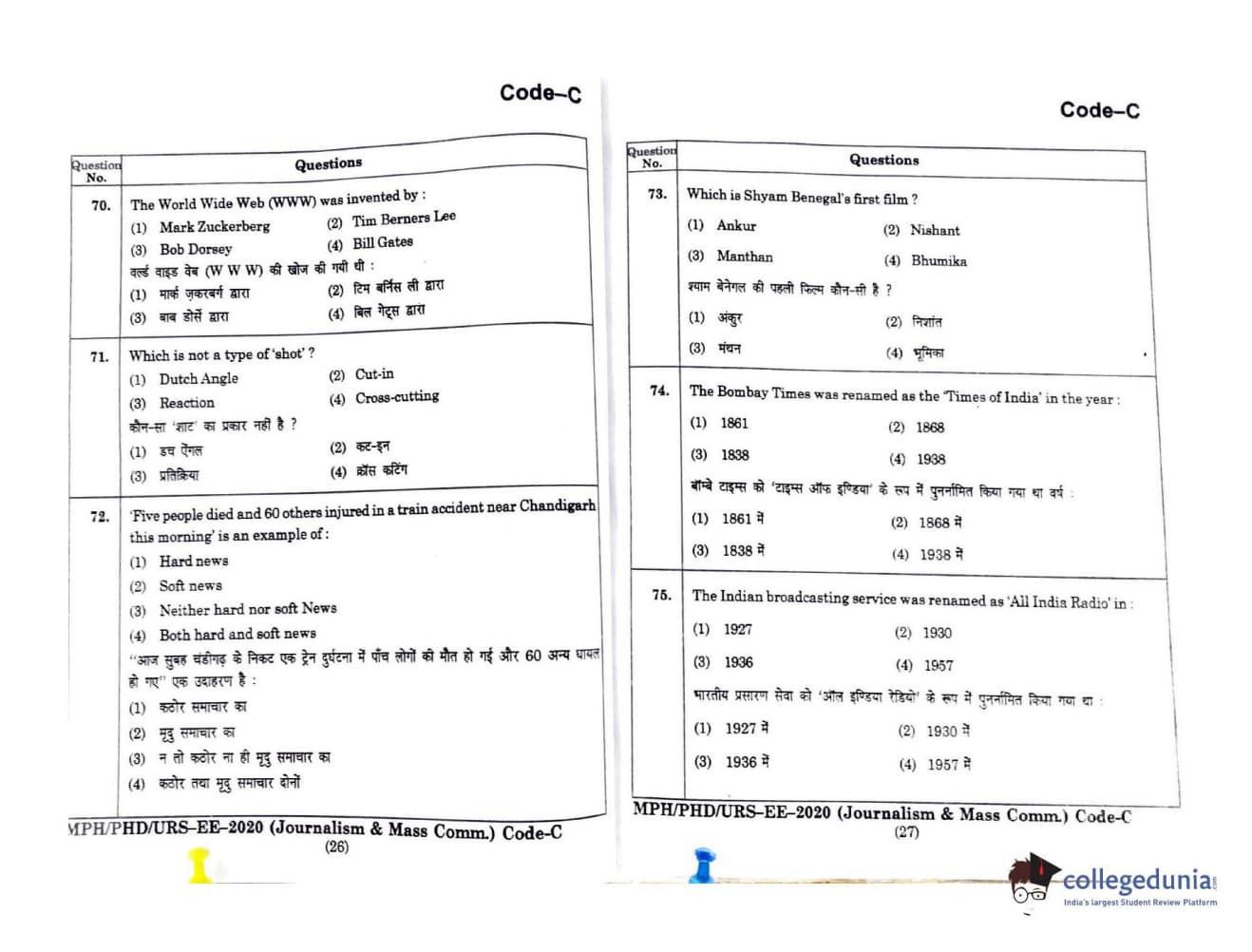 MDUCEE 2020 Ph.D/URS - Journalism and Mass Communication Set C Question Paper with Answer Key PDFs