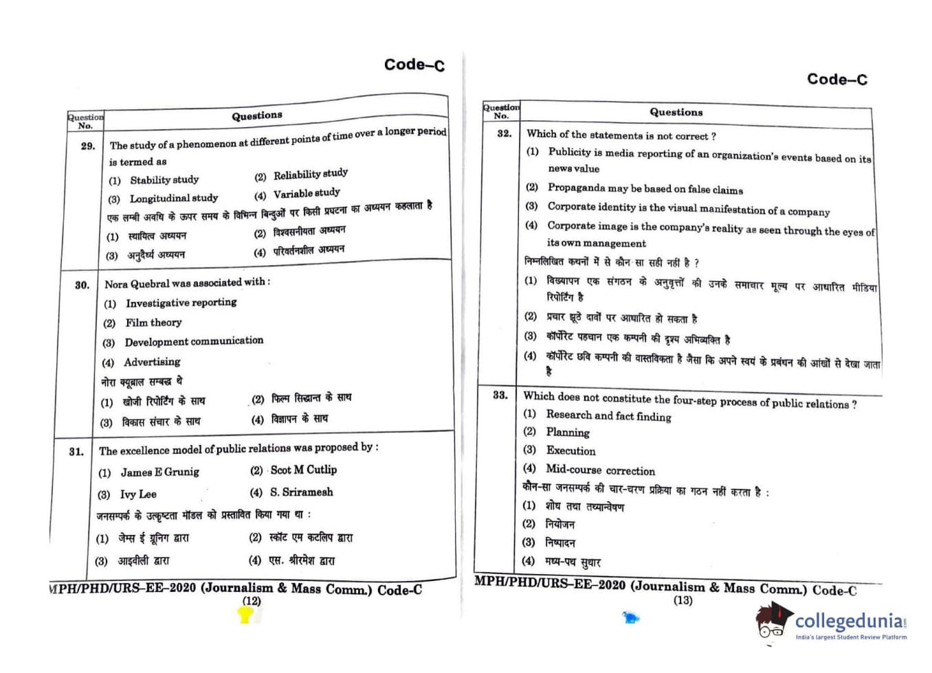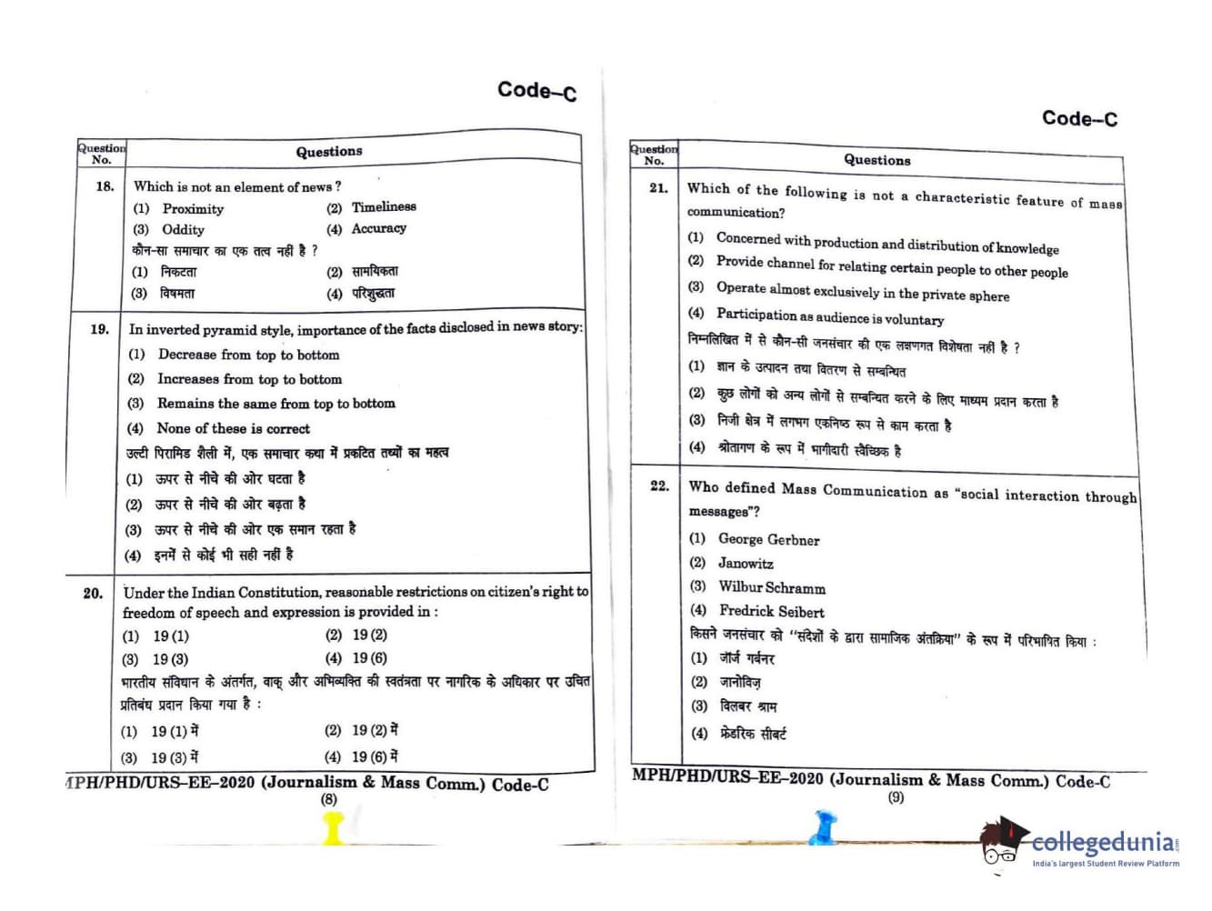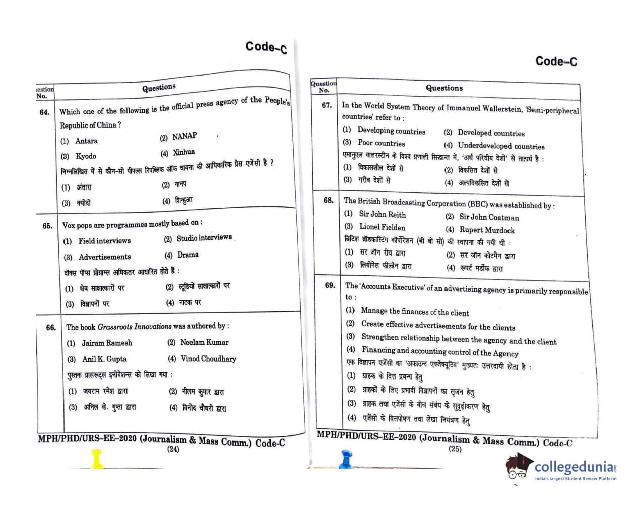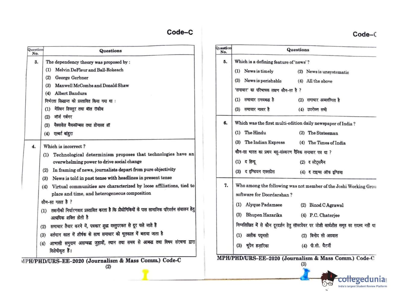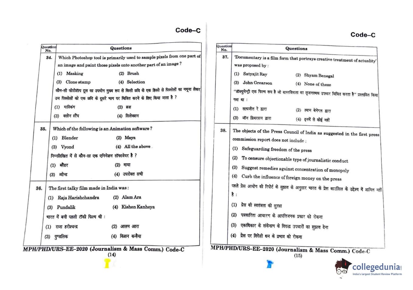 MDUCEE 2020 Ph.D/URS - Journalism and Mass Communication Set C Question Paper with Answer Key PDFs