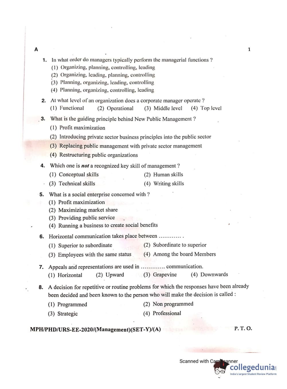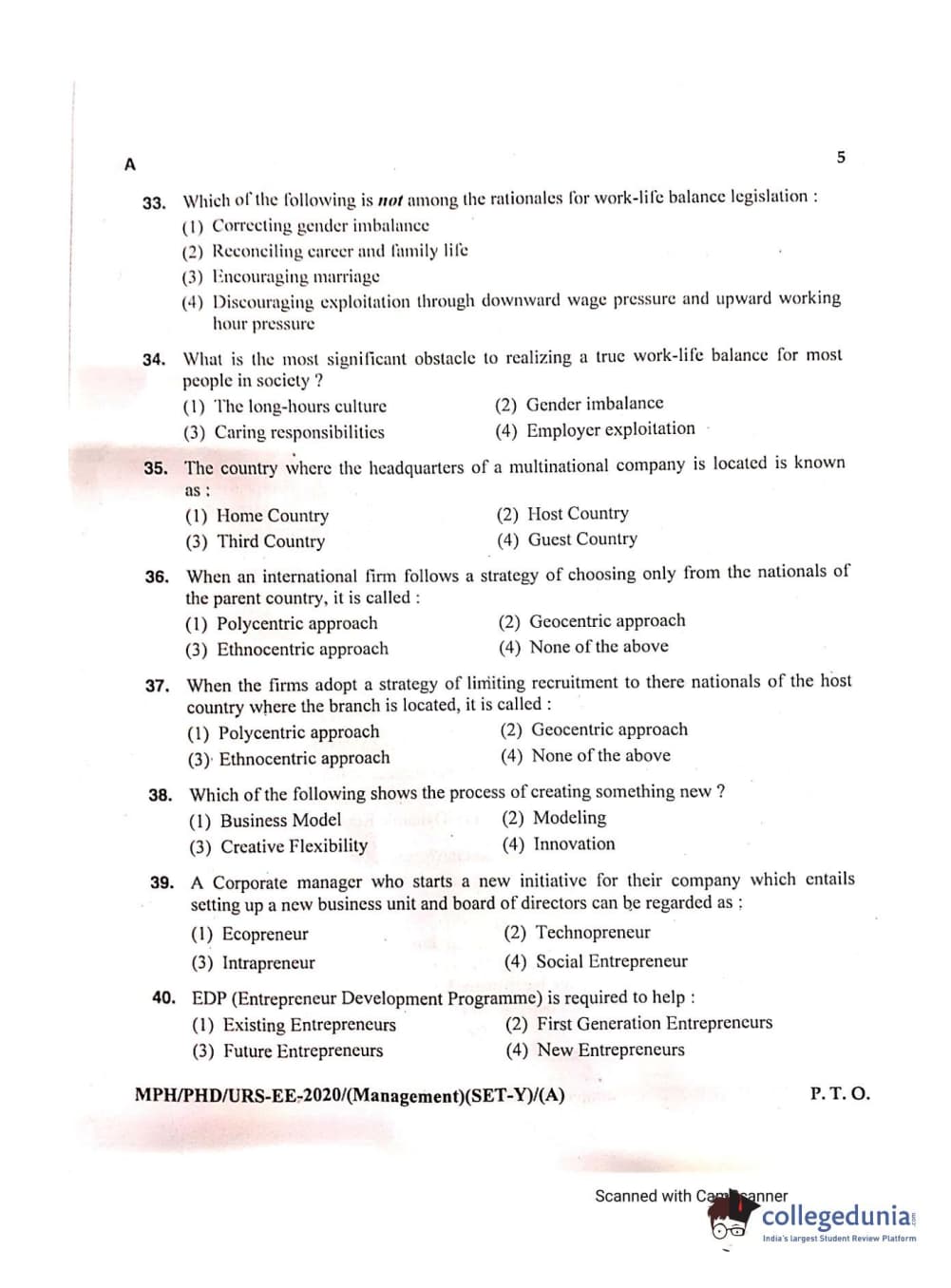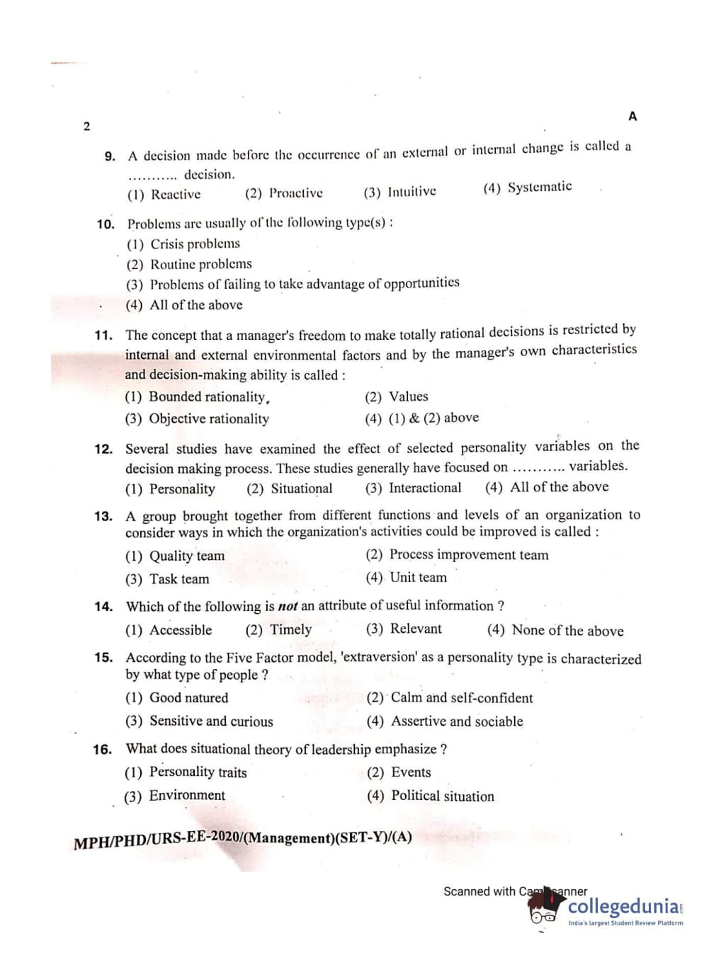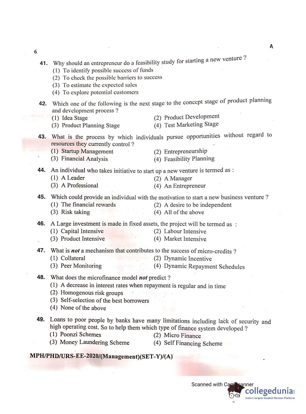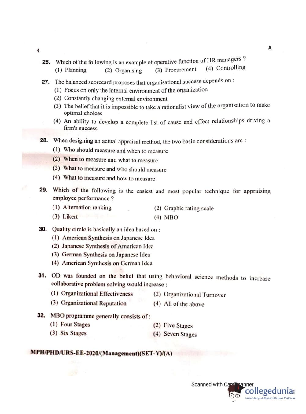 MDUCEE 2020 Ph.D./M.Phil./URS Management Set A Question Paper with Answer Key PDFs