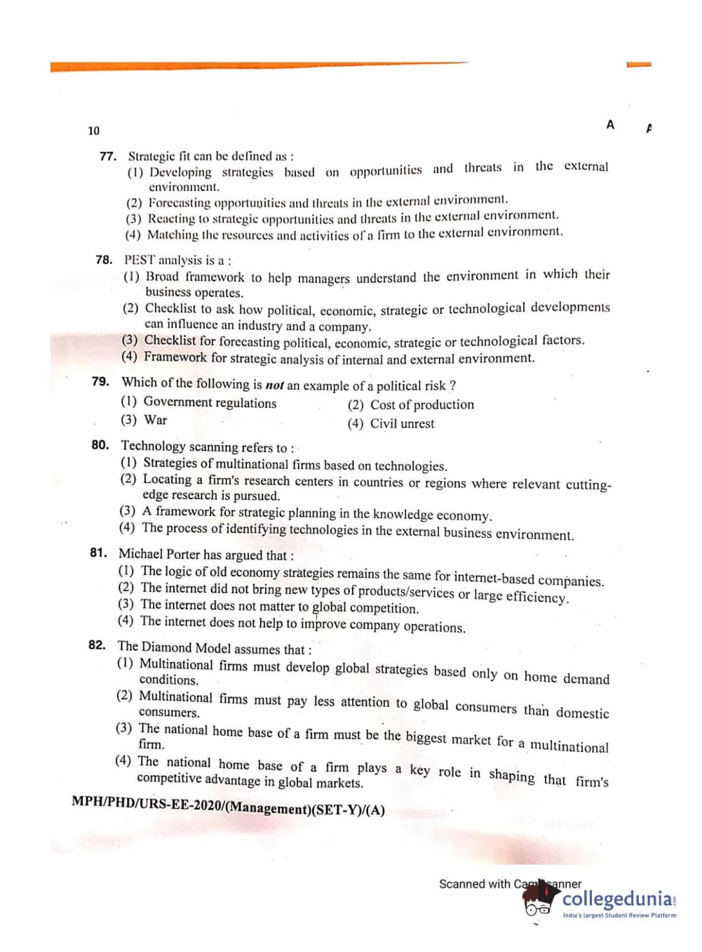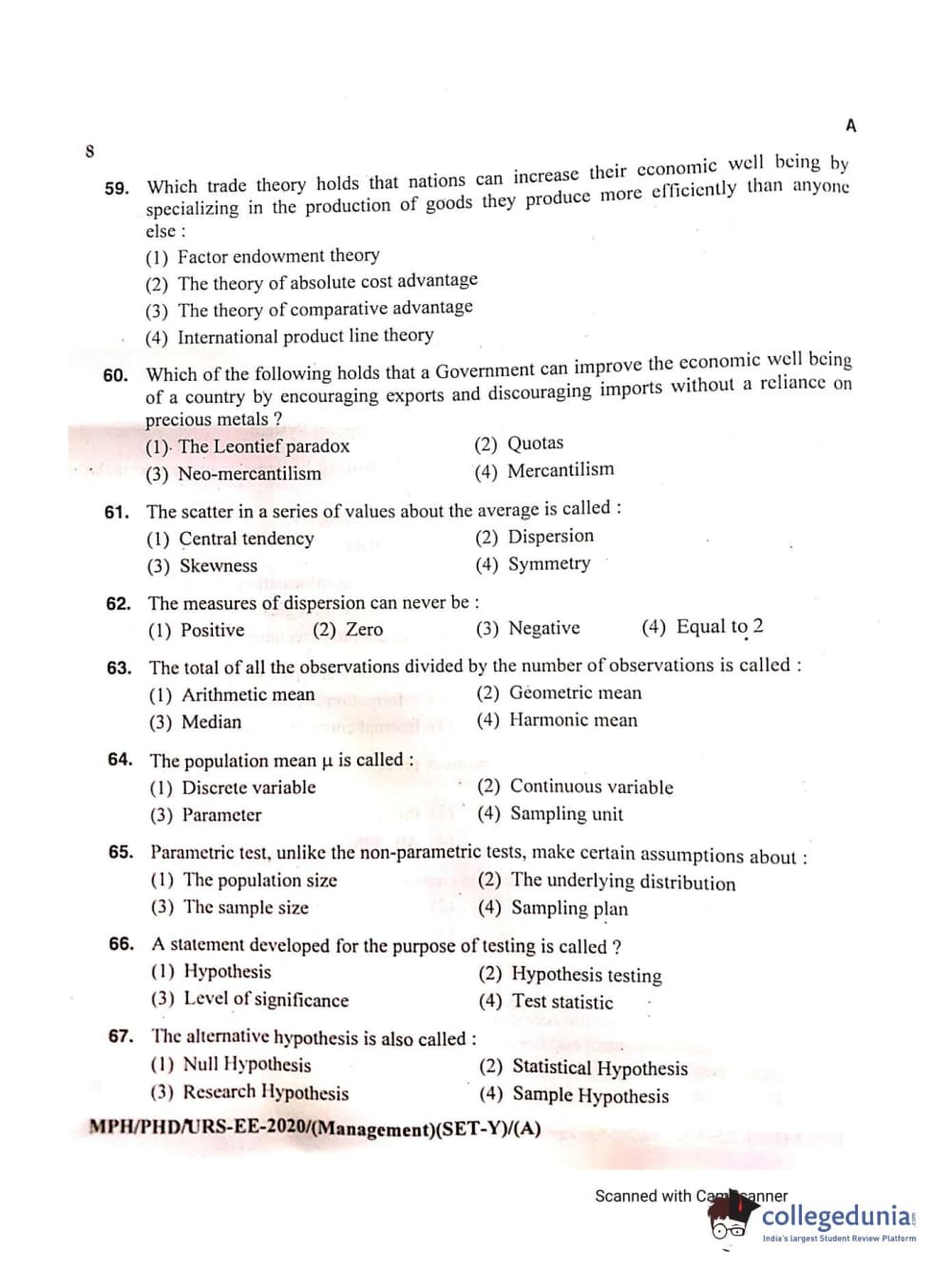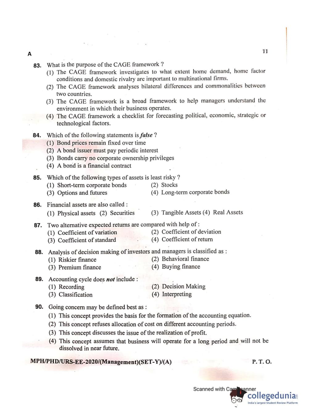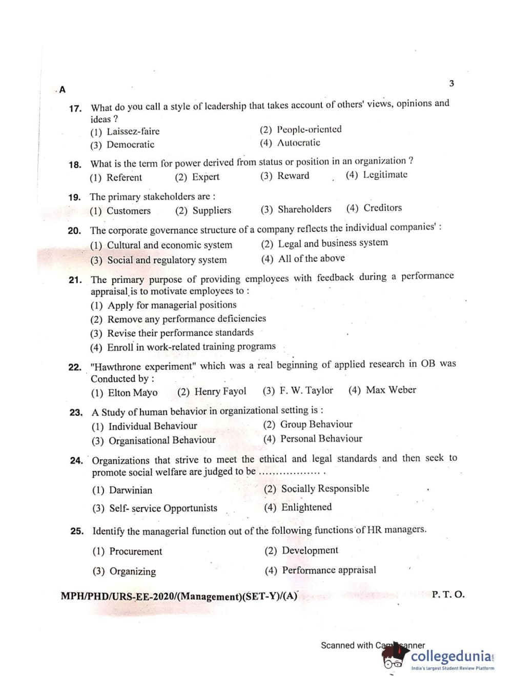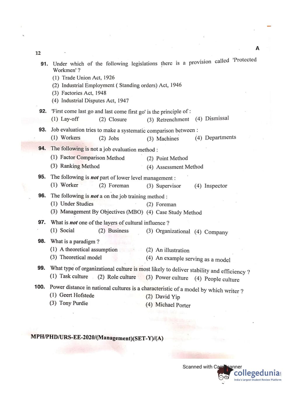 MDUCEE 2020 Ph.D./M.Phil./URS Management Set A Question Paper with Answer Key PDFs