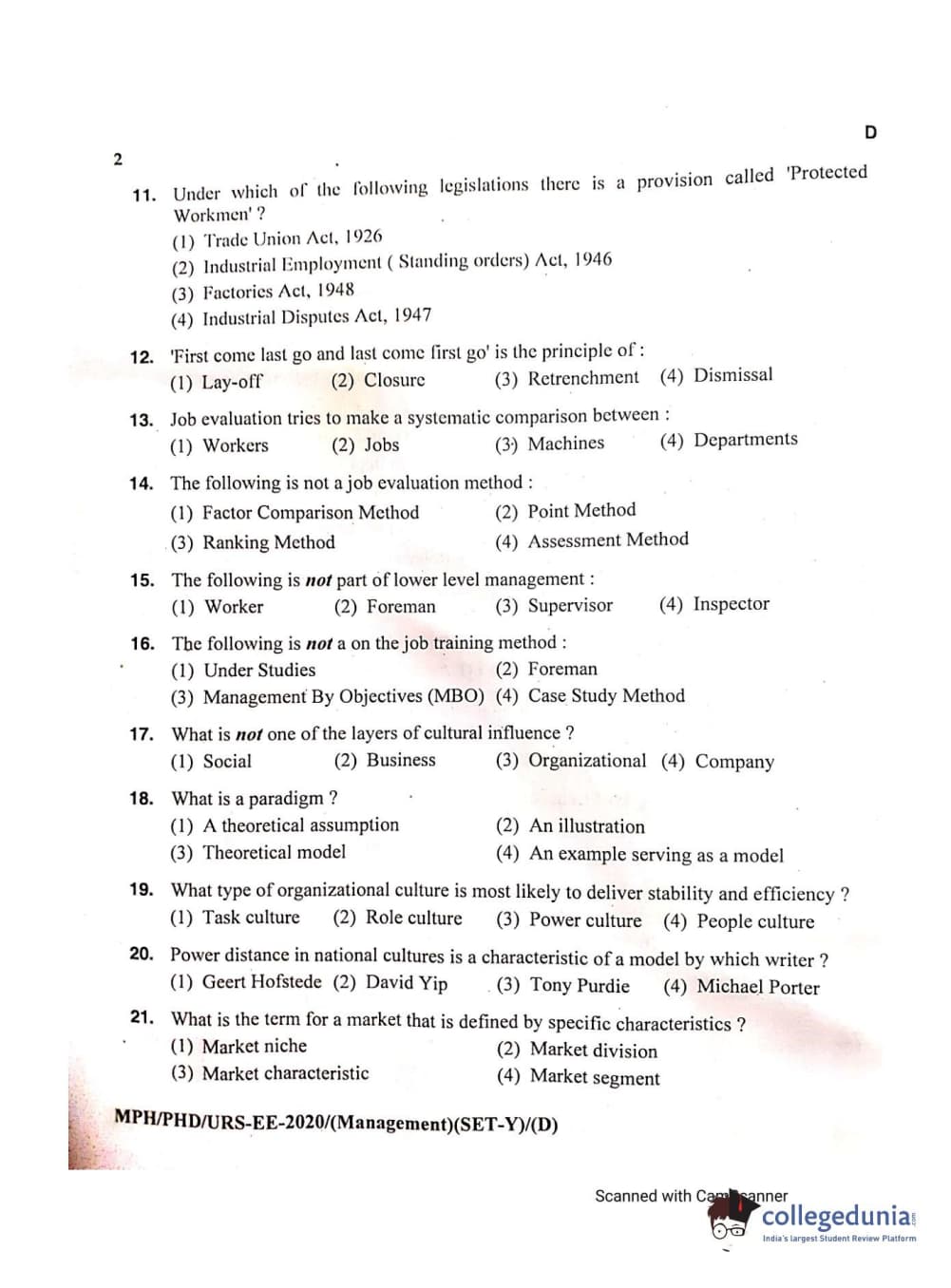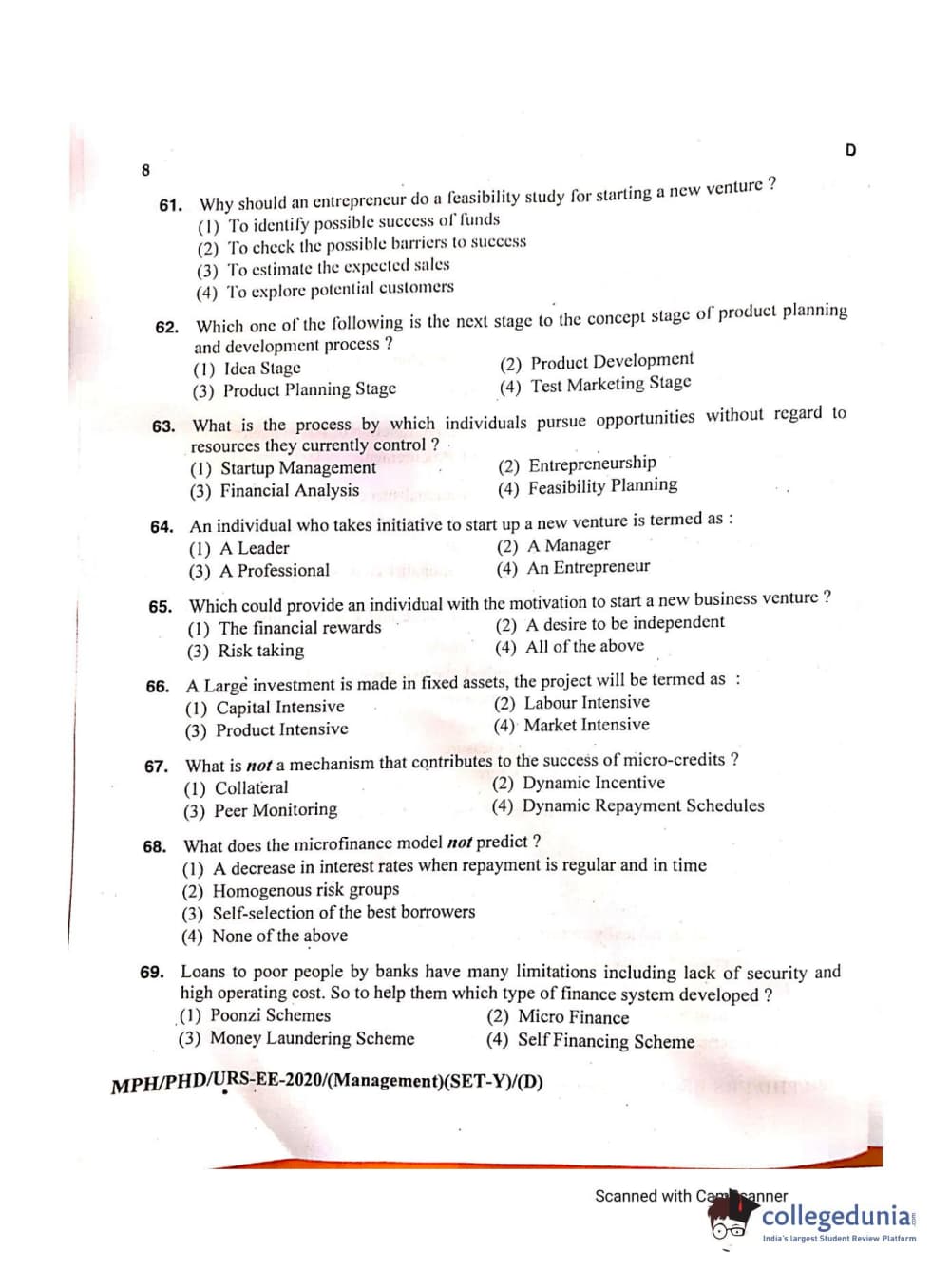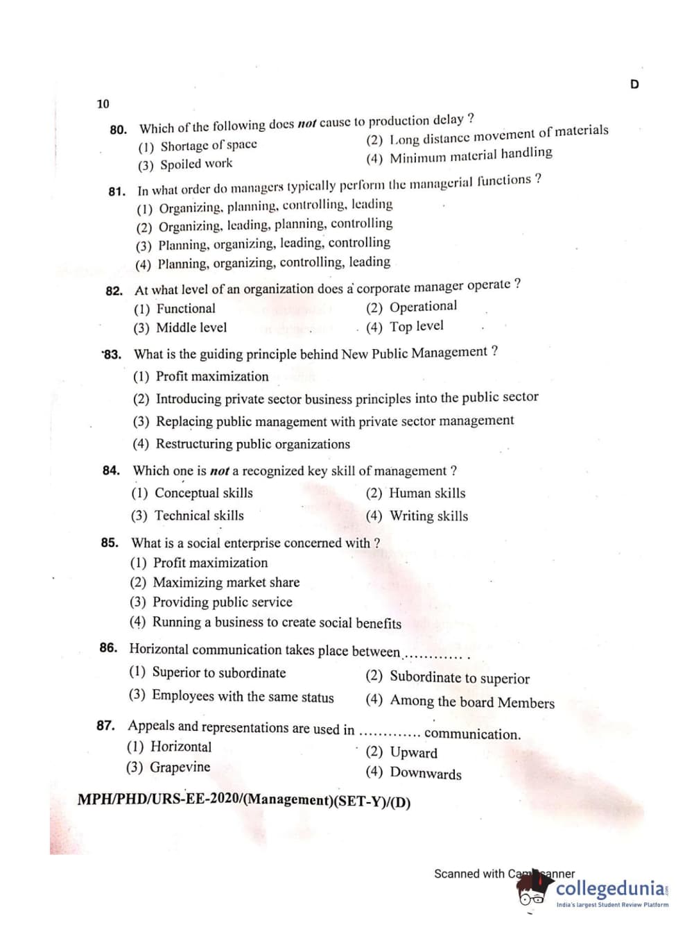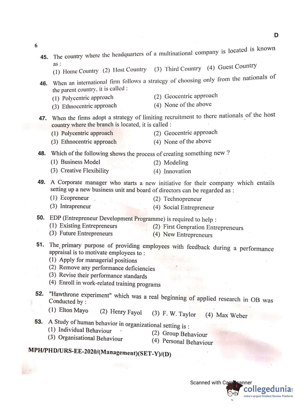 MDUCEE 2020 Ph.D./M.Phil./URS Management Set D Question Paper with Answer Key PDFs