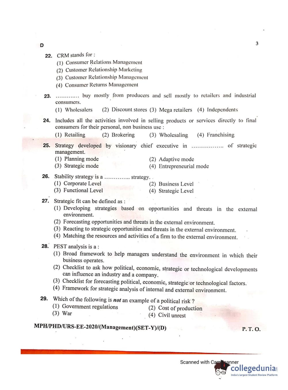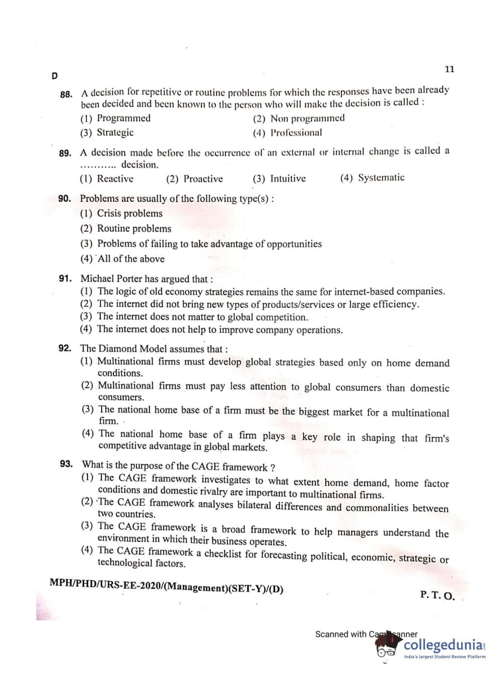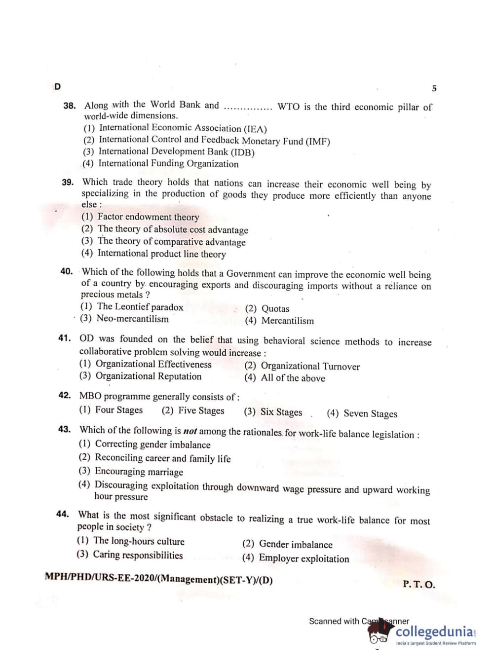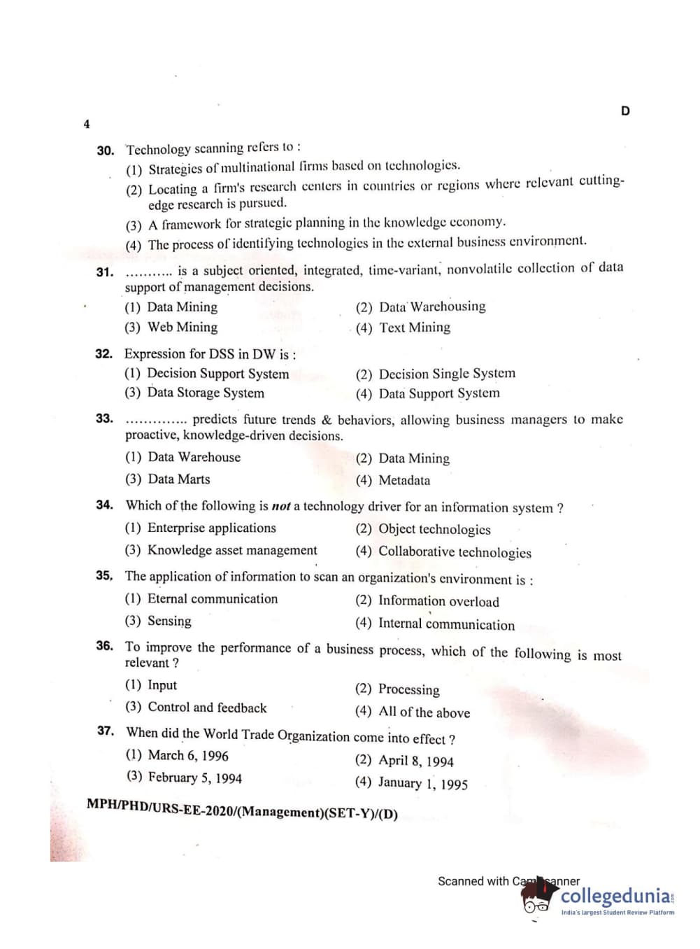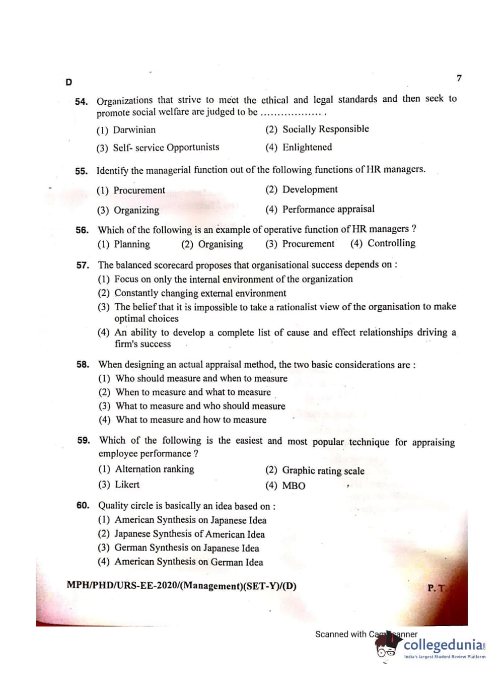 MDUCEE 2020 Ph.D./M.Phil./URS Management Set D Question Paper with Answer Key PDFs