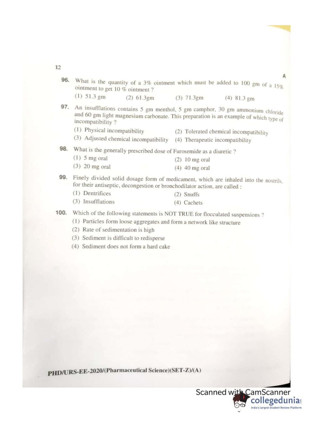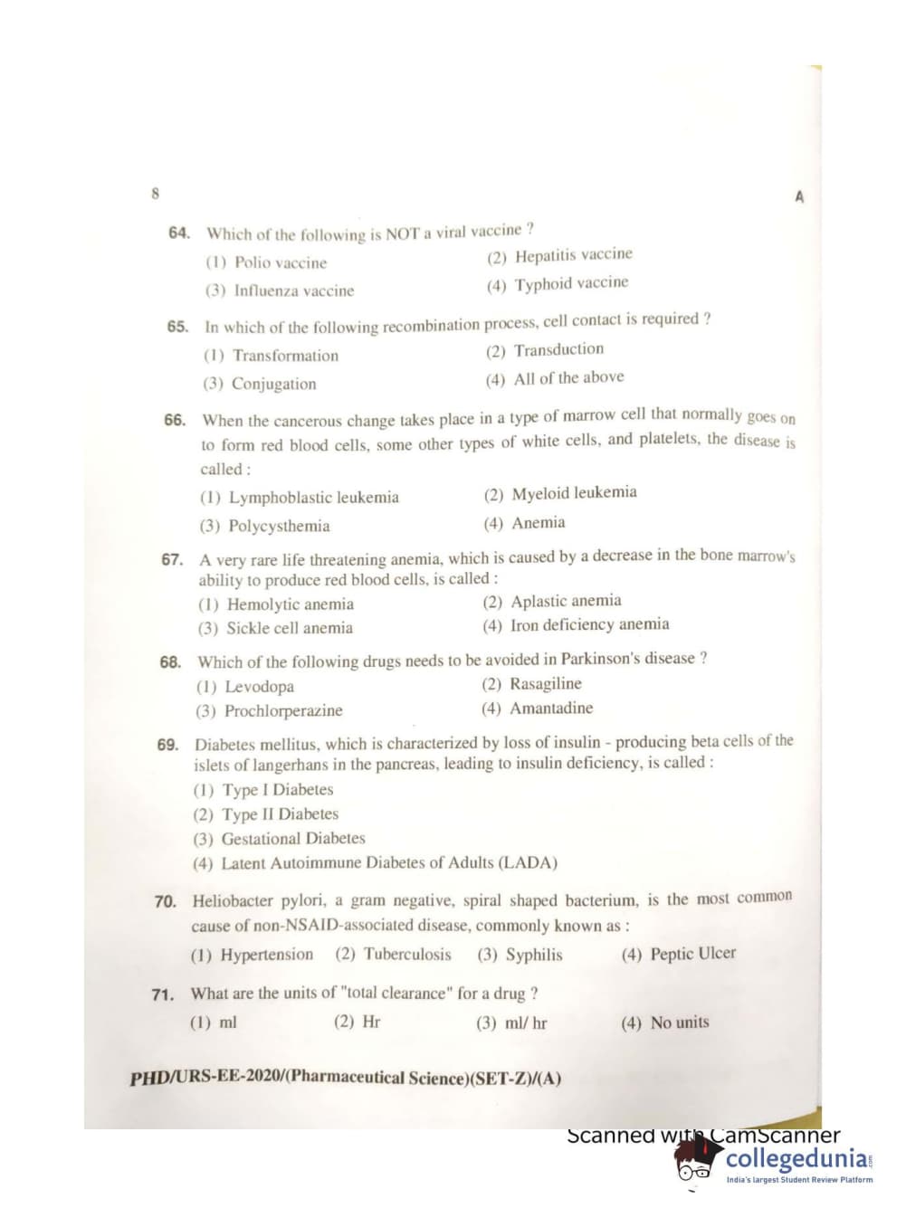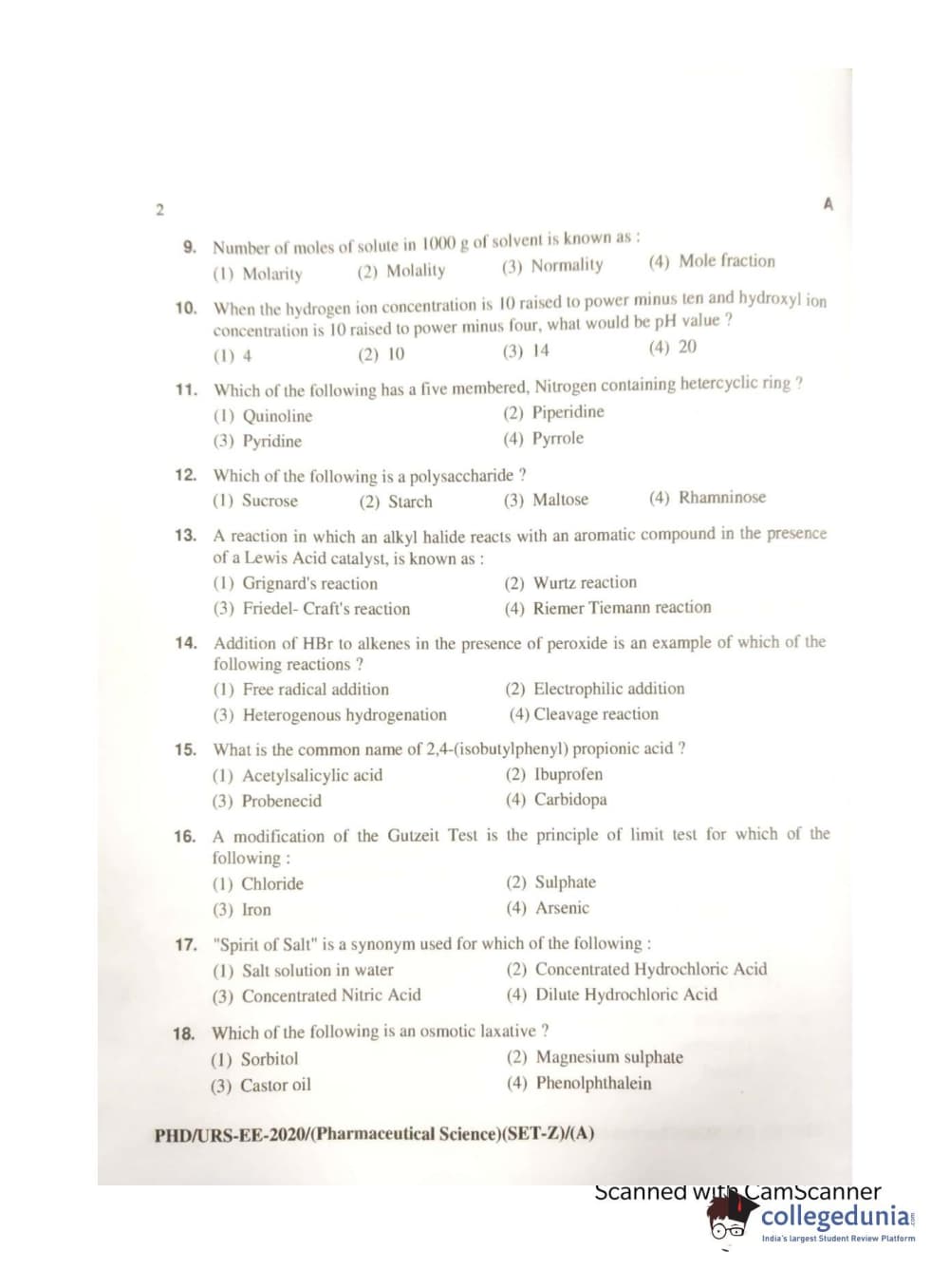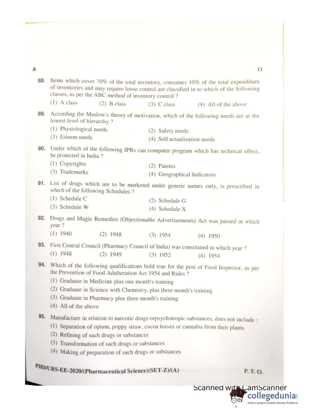 MDUCEE 2020 Ph.d. Pharmaceutical Sciences Set A Question Paper with Answer Key PDFs