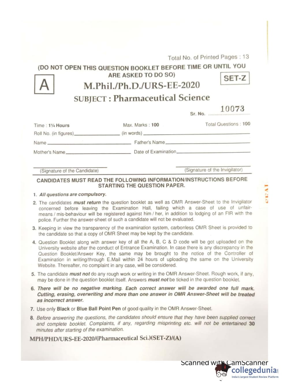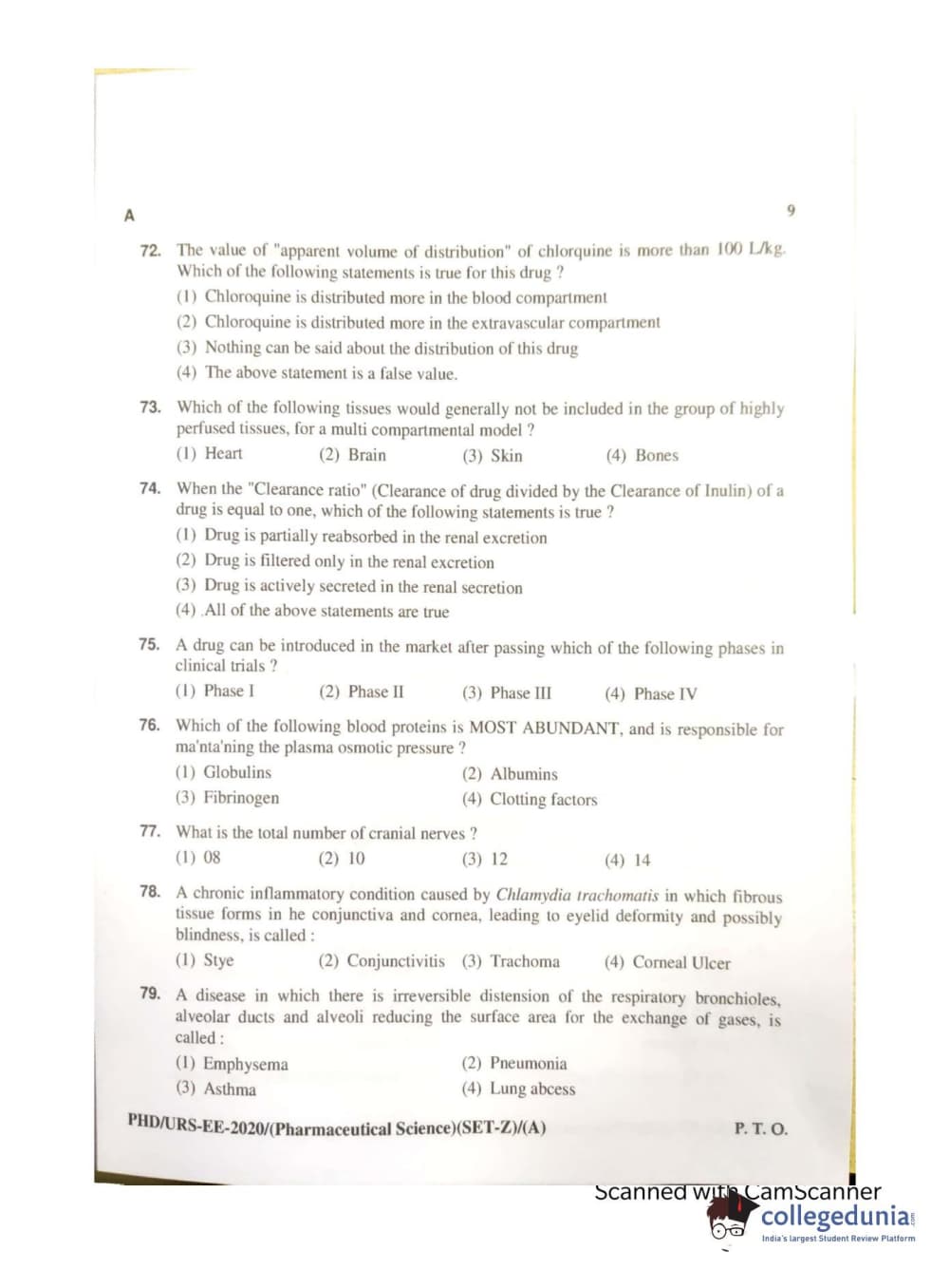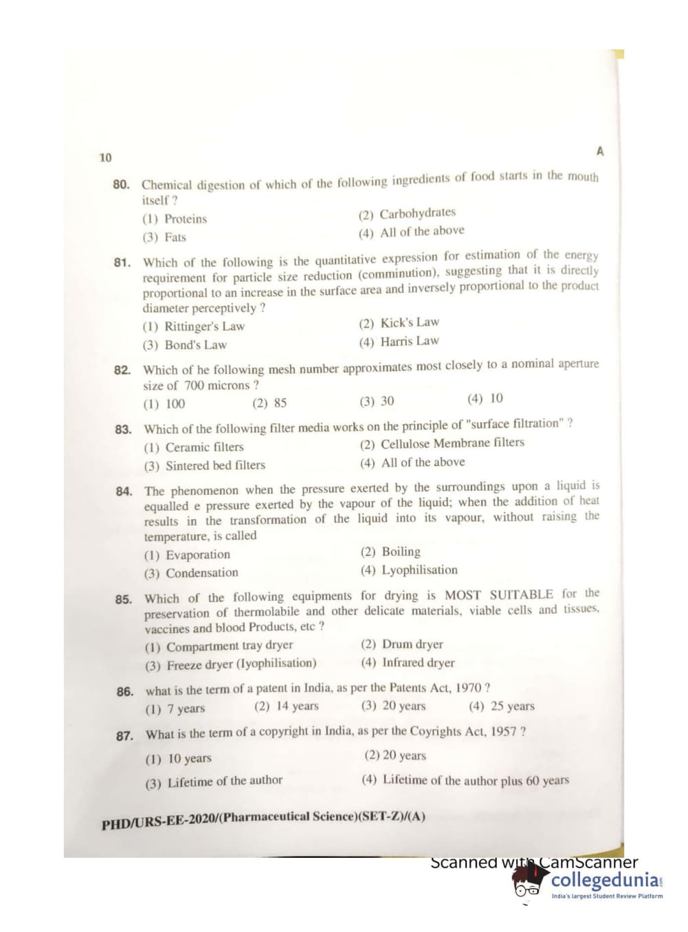 MDUCEE 2020 Ph.d. Pharmaceutical Sciences Set A Question Paper with Answer Key PDFs