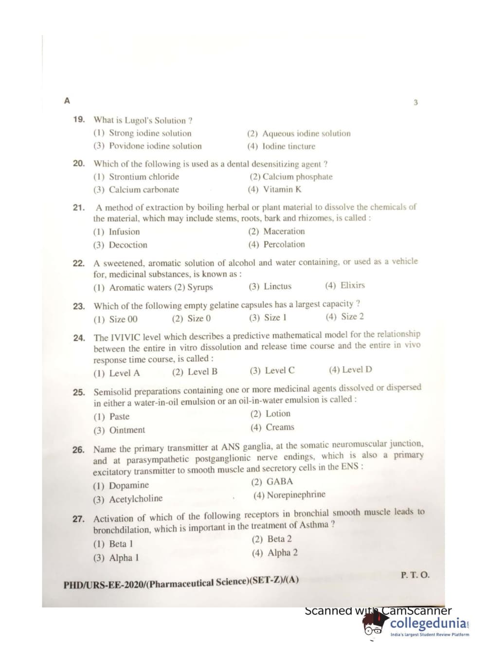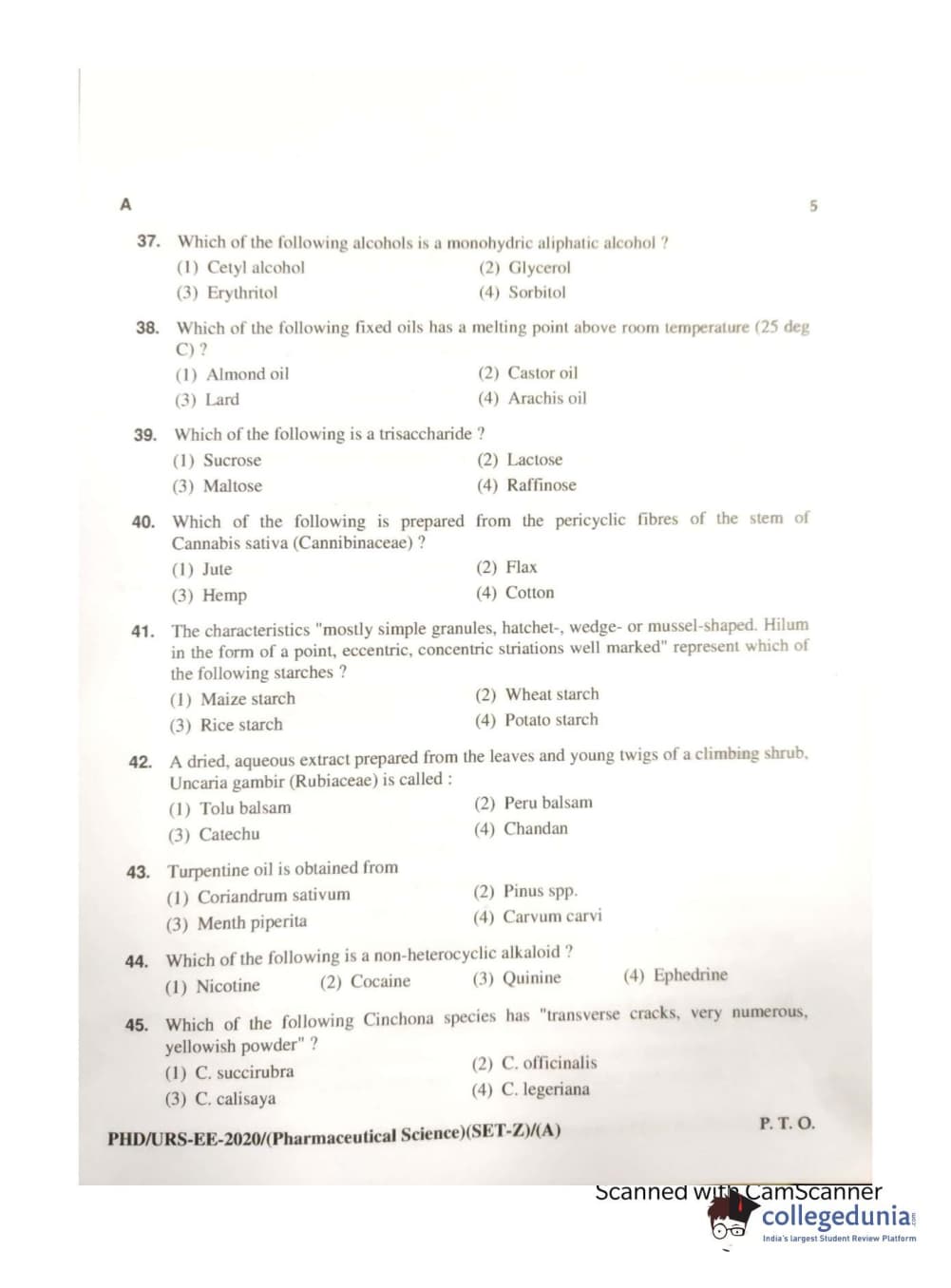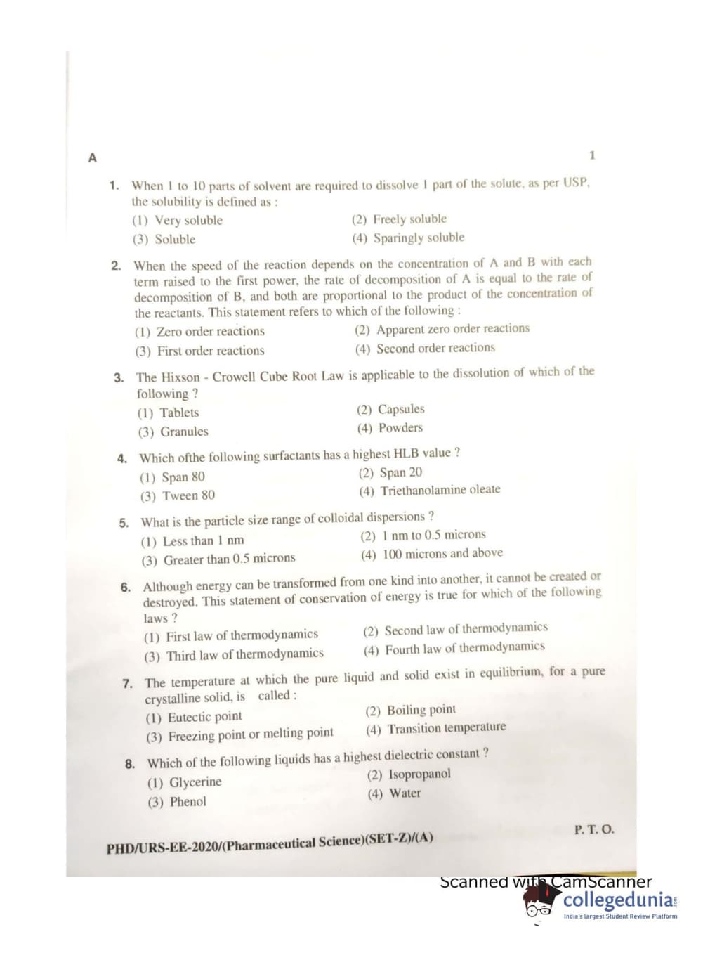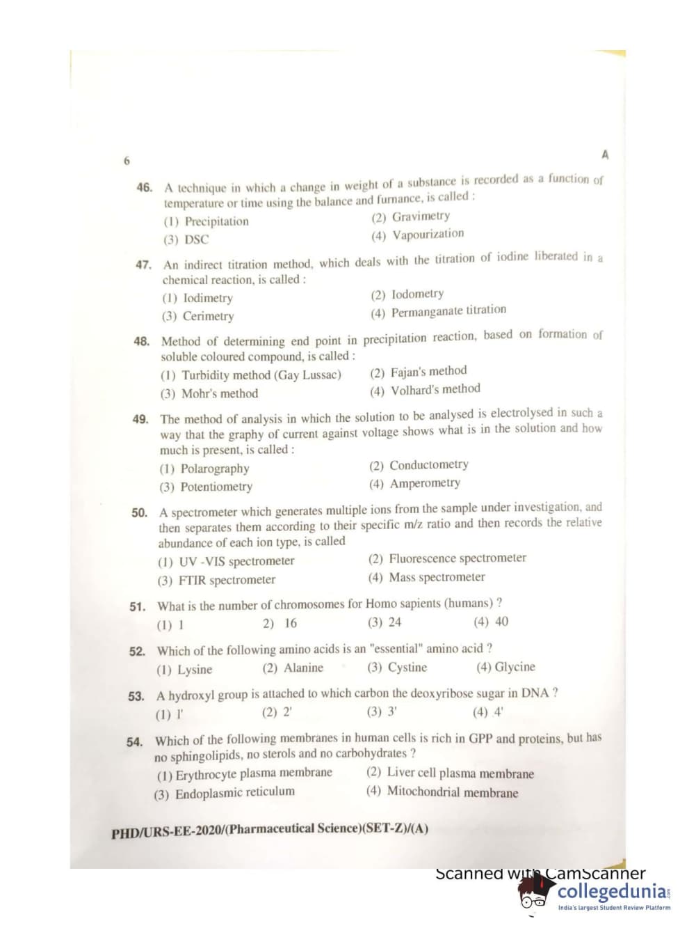 MDUCEE 2020 Ph.d. Pharmaceutical Sciences Set A Question Paper with Answer Key PDFs