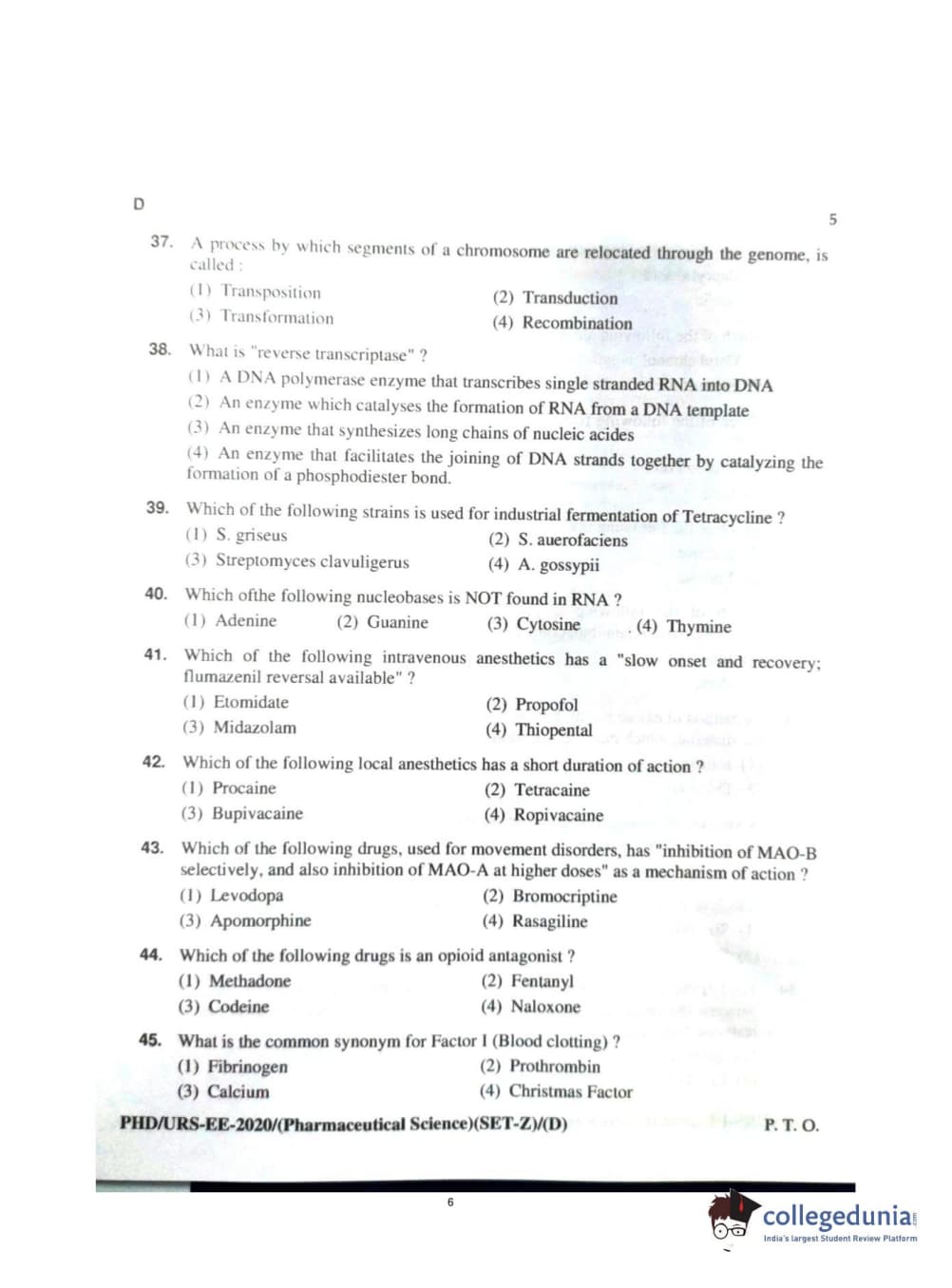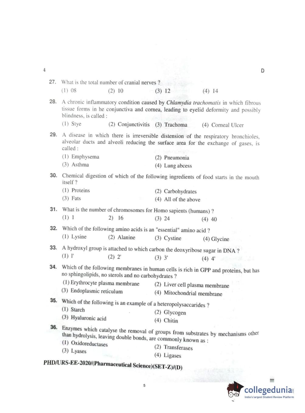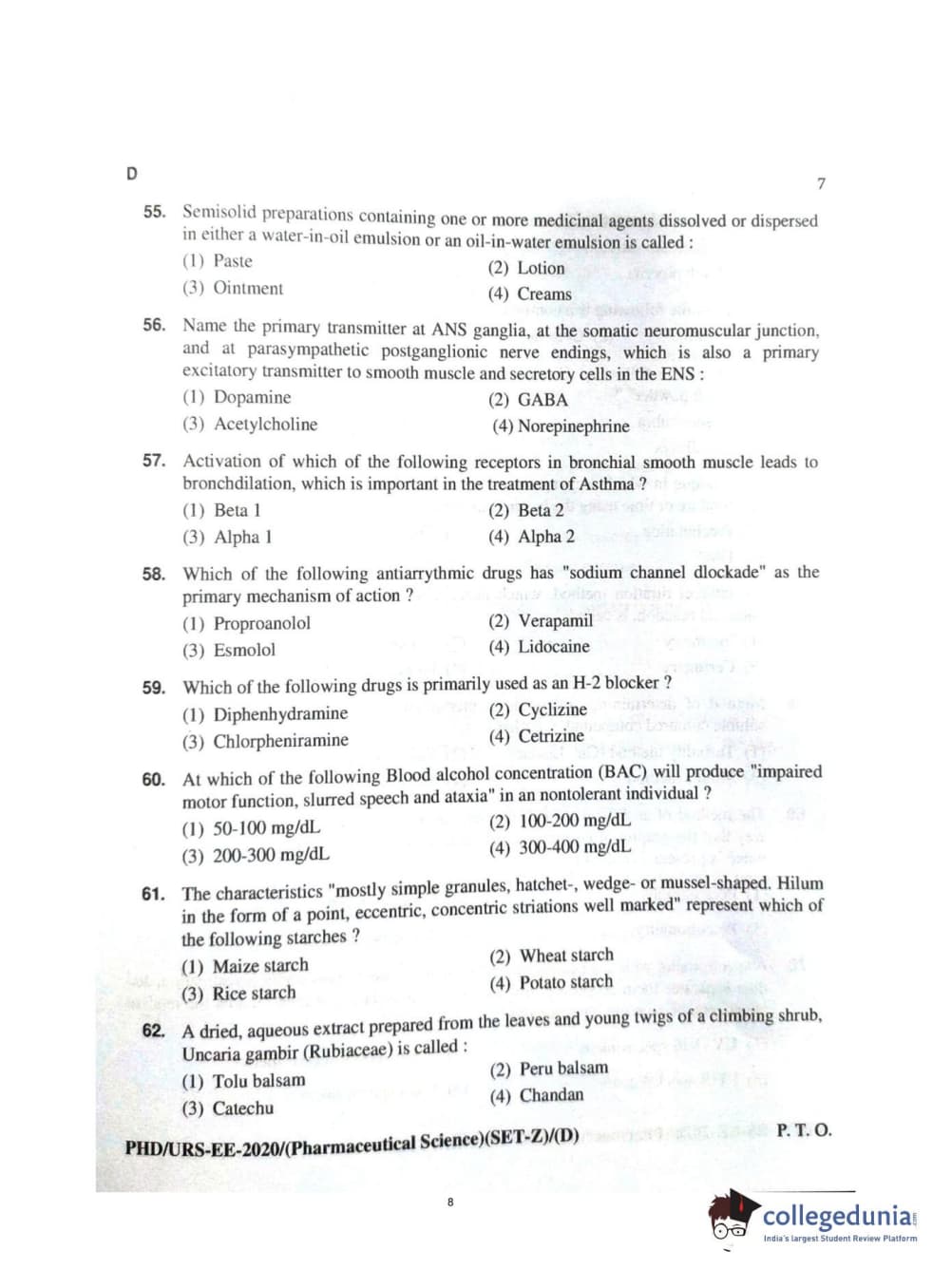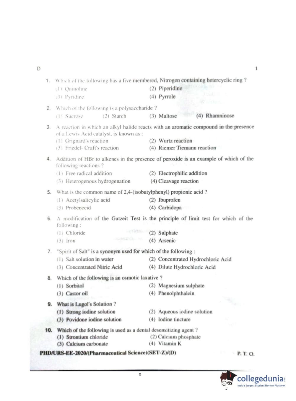 MDUCEE 2020 Ph.d. Pharmaceutical Sciences Set D Question Paper with Answer Key PDFs