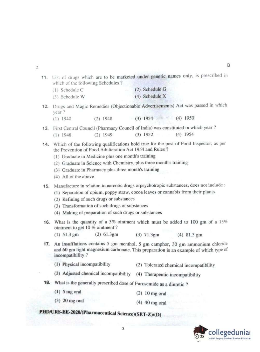 | MDUCEE 2020 Ph.d. Pharmaceutical Sciences Set D Question Paper PDF | MDUCEE 2020 Ph.d. Pharmaceutical Sciences Set D Answer Key PDF |