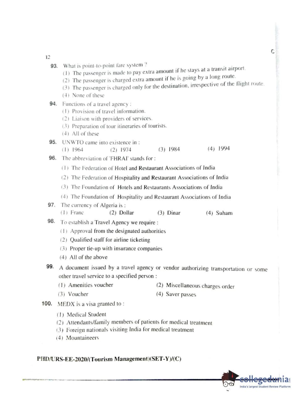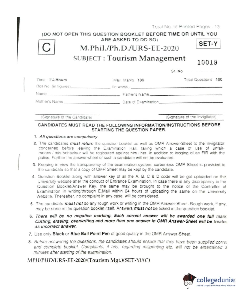 MDUCEE 2020 Ph.D./M.Phil./URS Tourism Management Set C Question paper with answer key pdf is available for download. The exam was successfully organized by Maharishi Dayanand University. The question paper comprised a total of 100 questions.