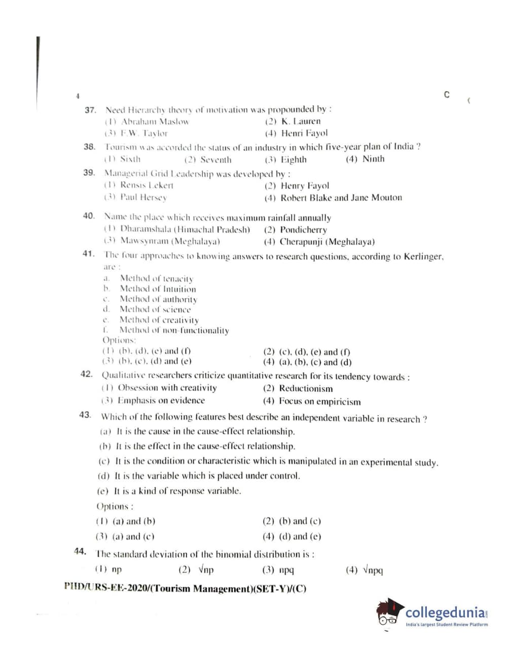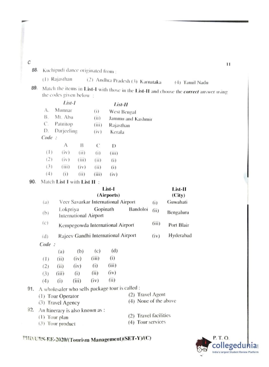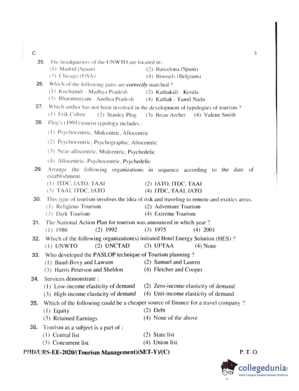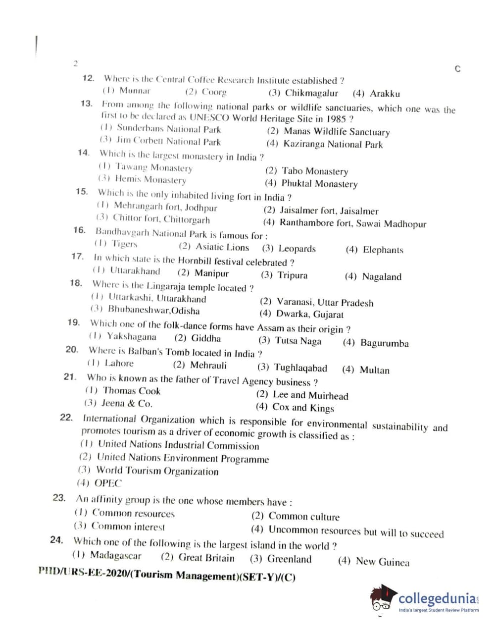 MDUCEE 2020 Ph.D./M.Phil./URS Tourism Management Set C Question Paper with Answer Key PDFs
