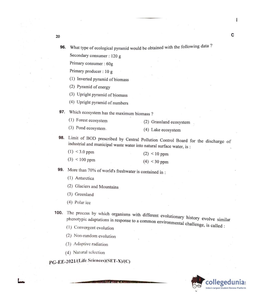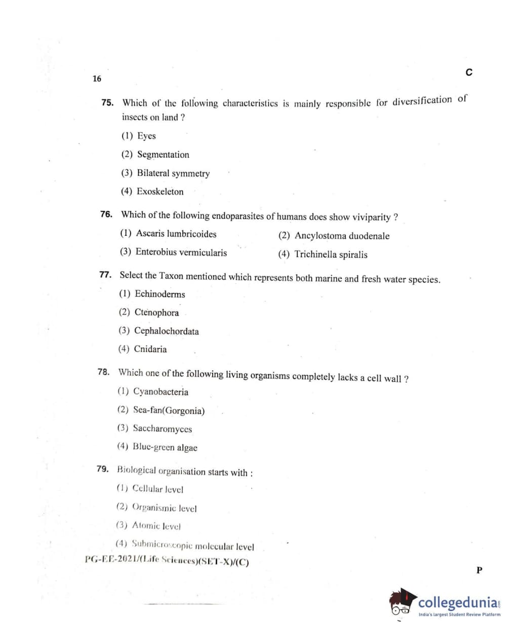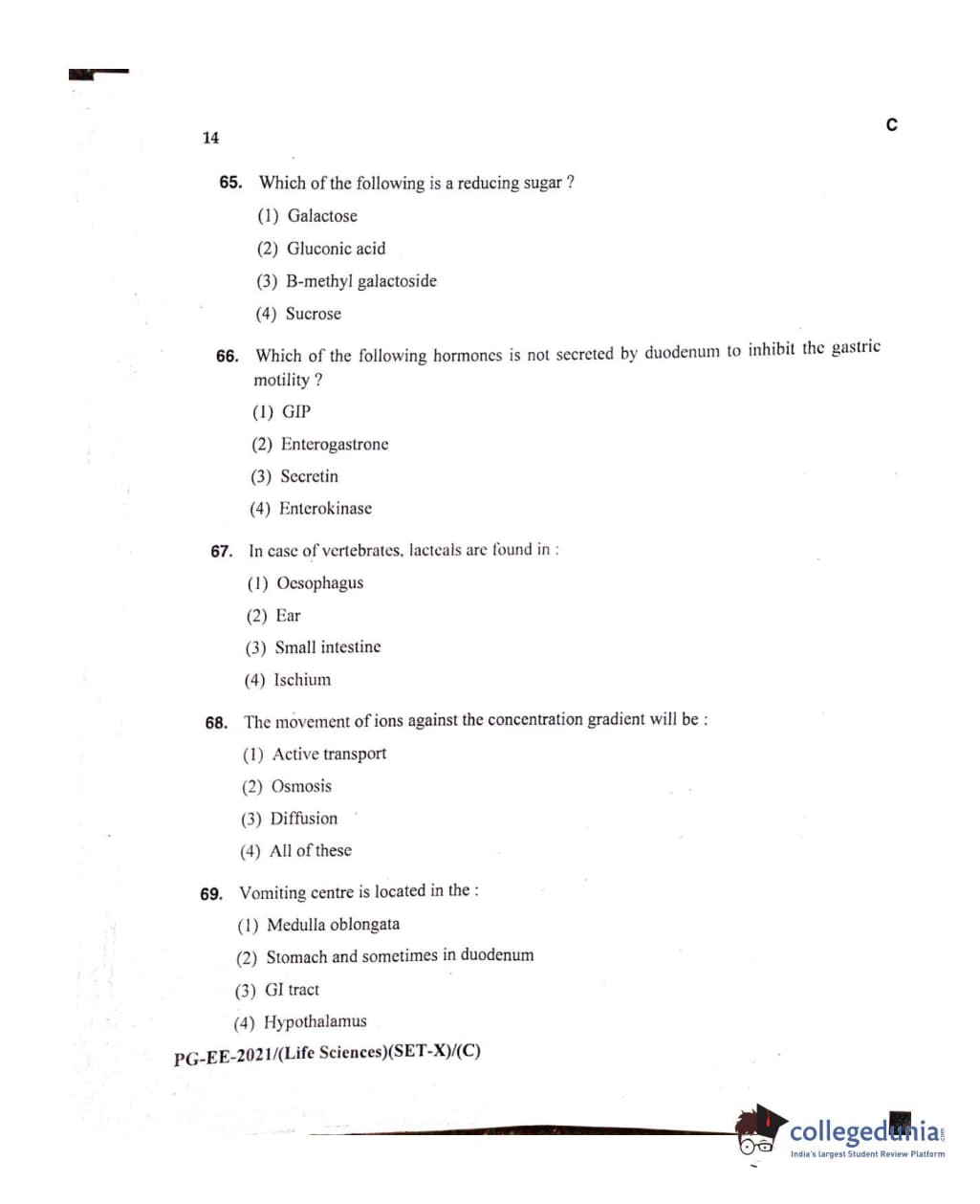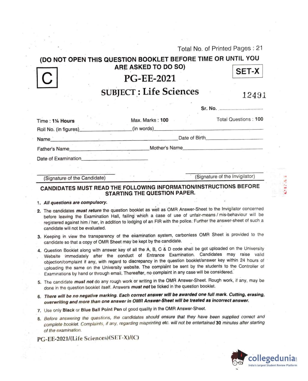 MDUCEE 2021 Life Sciences Set C Question Paper with Answer Key PDFs