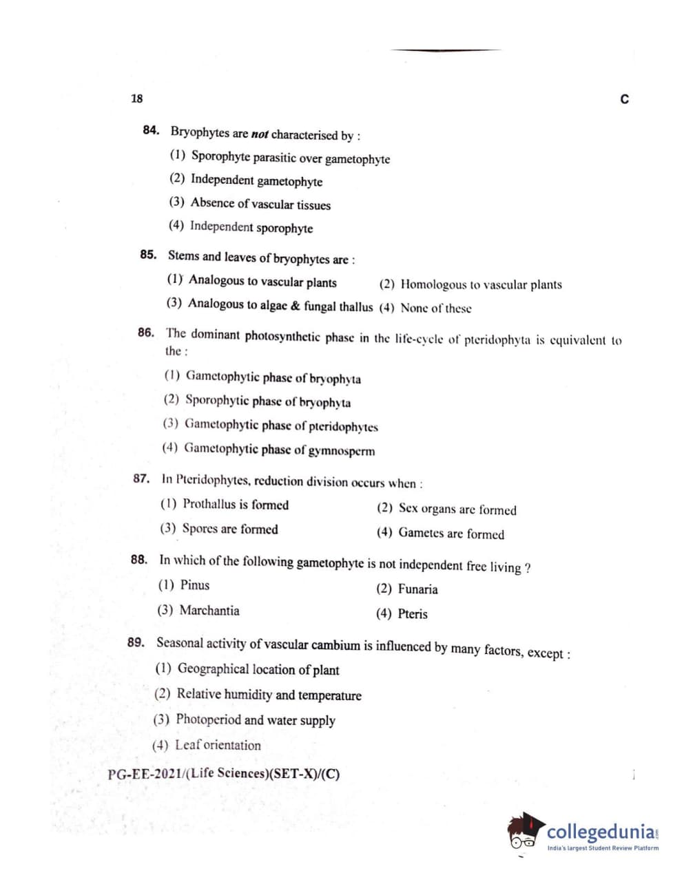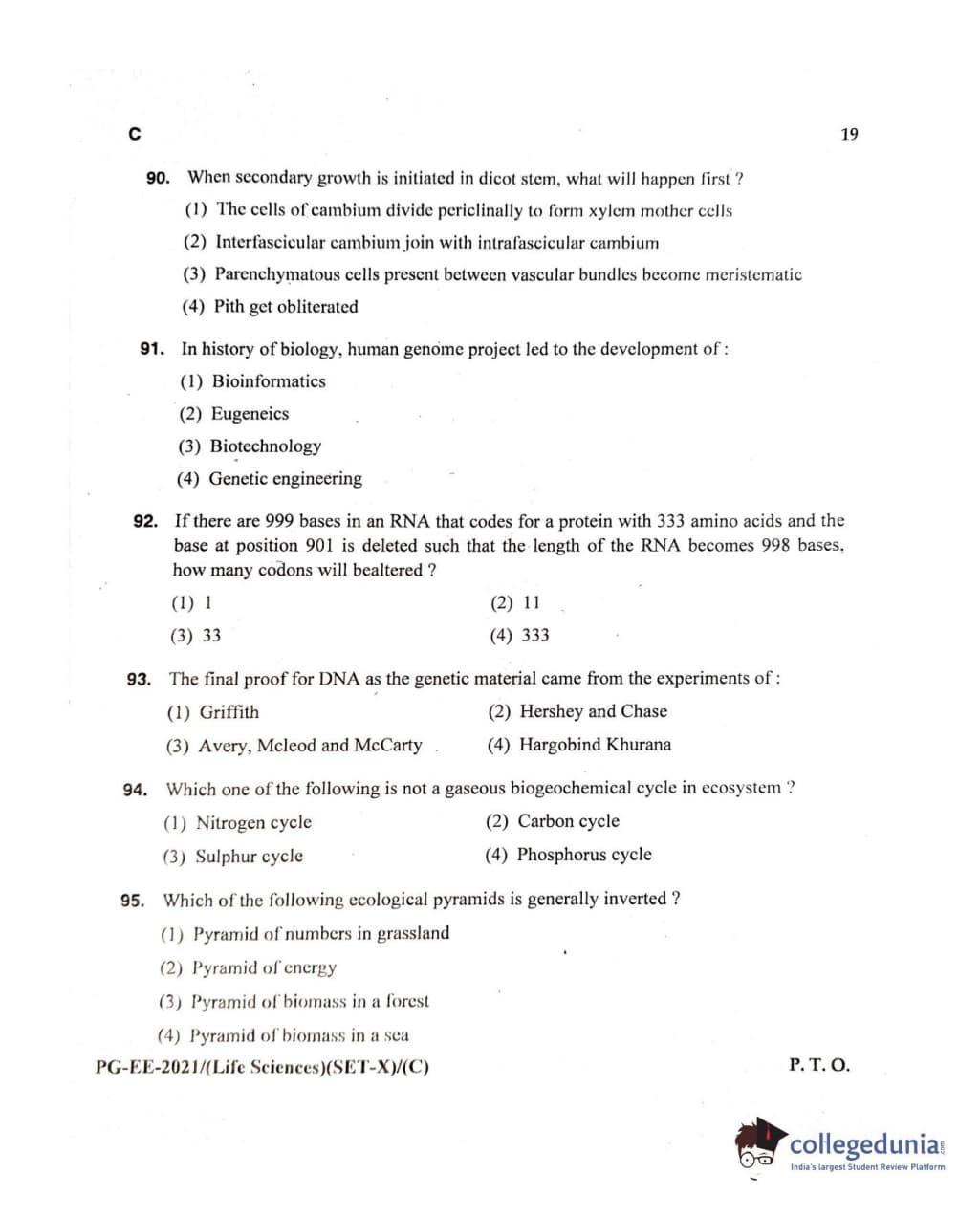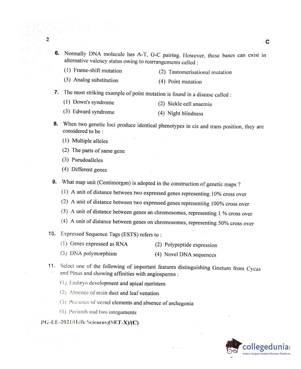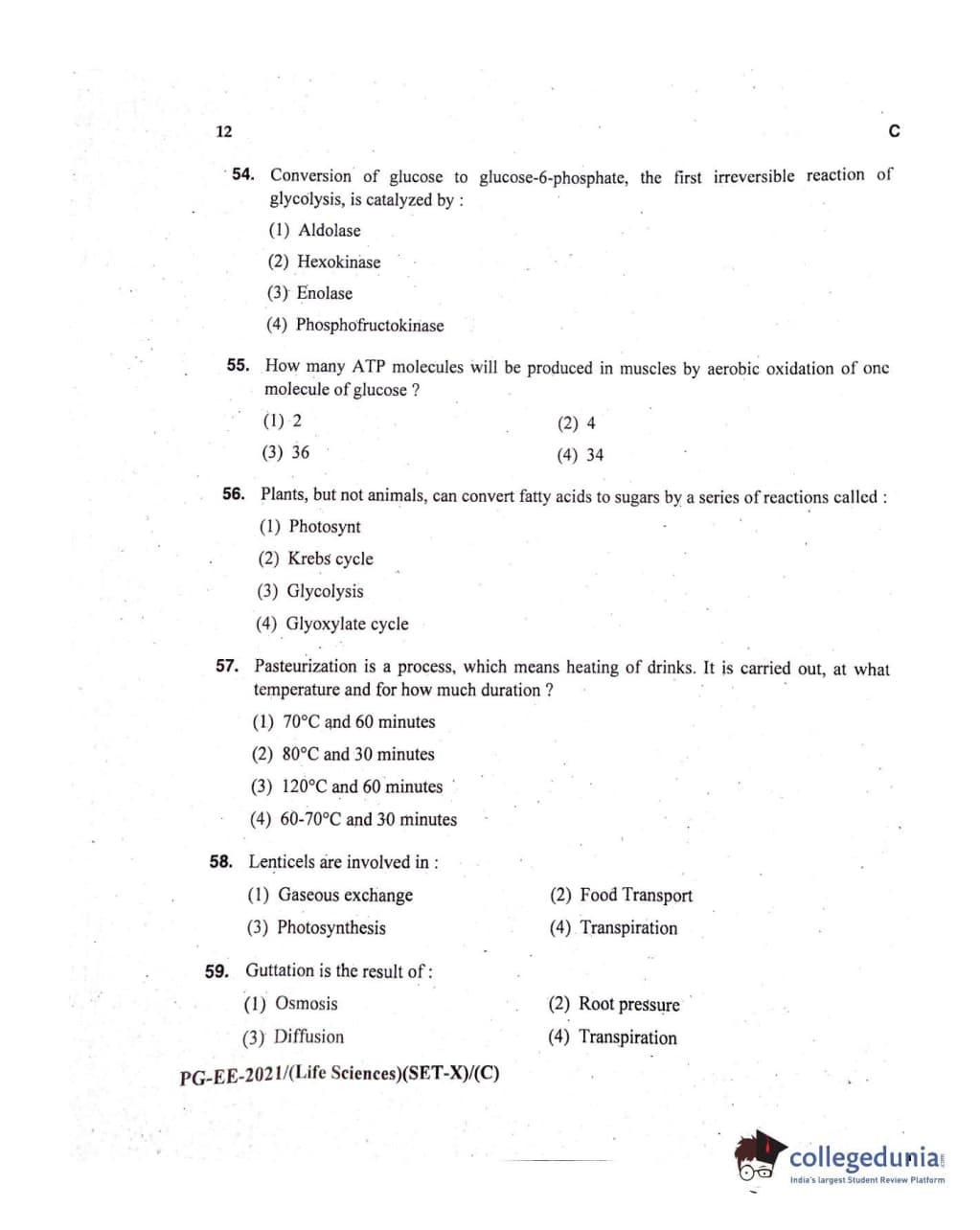 MDUCEE 2021 Life Sciences Set C Question Paper with Answer Key PDFs