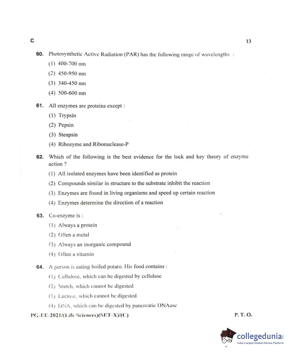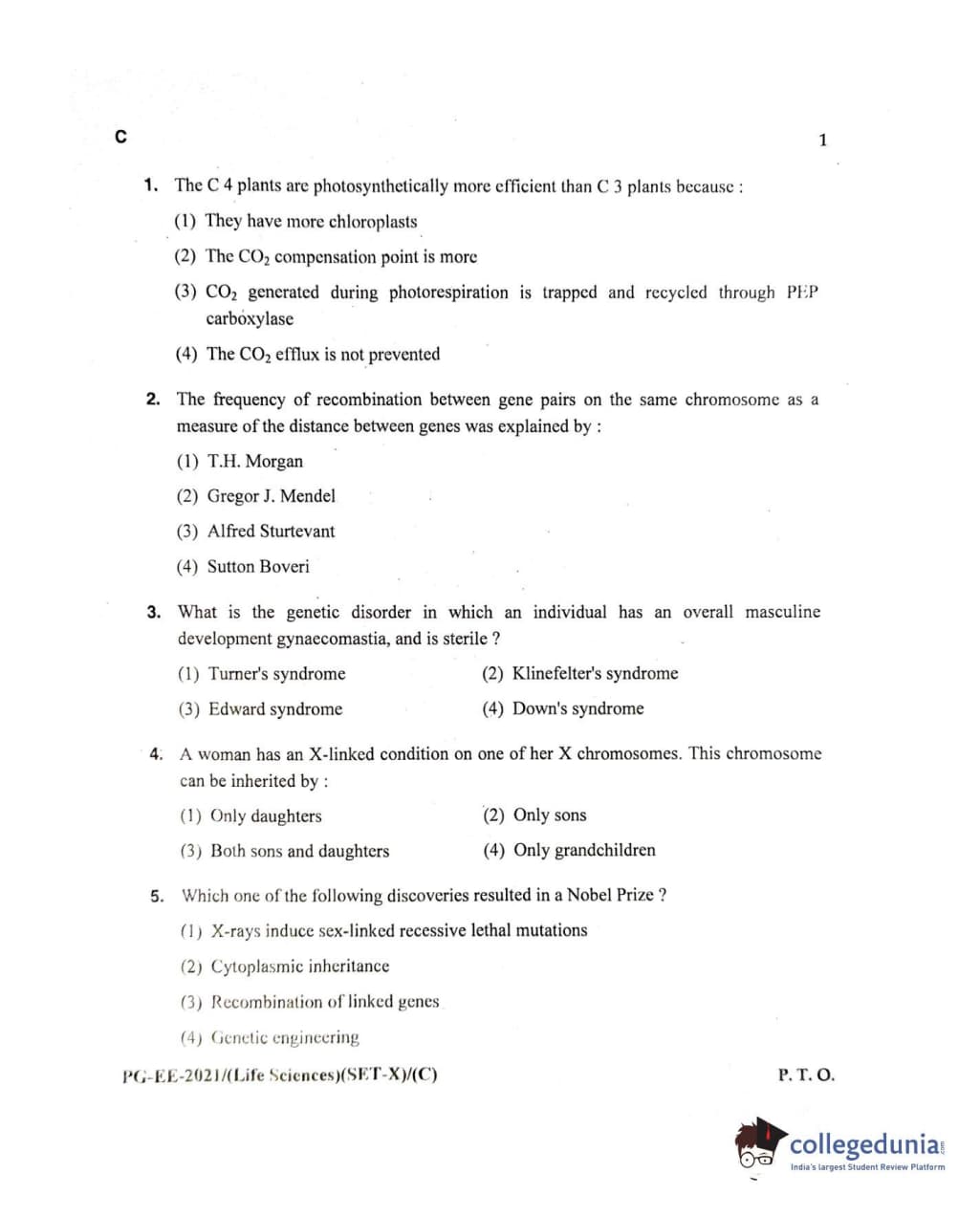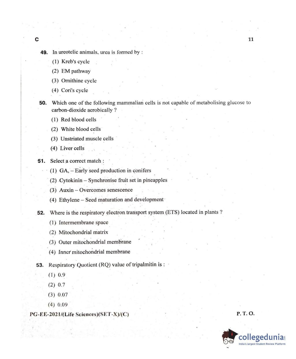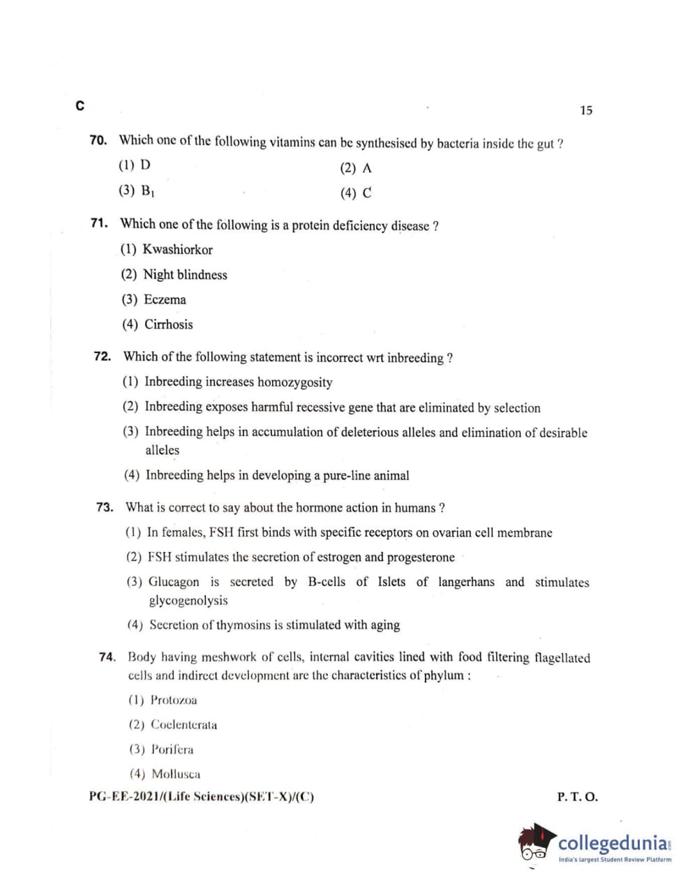 MDUCEE 2021 Life Sciences Set C Question Paper with Answer Key PDFs