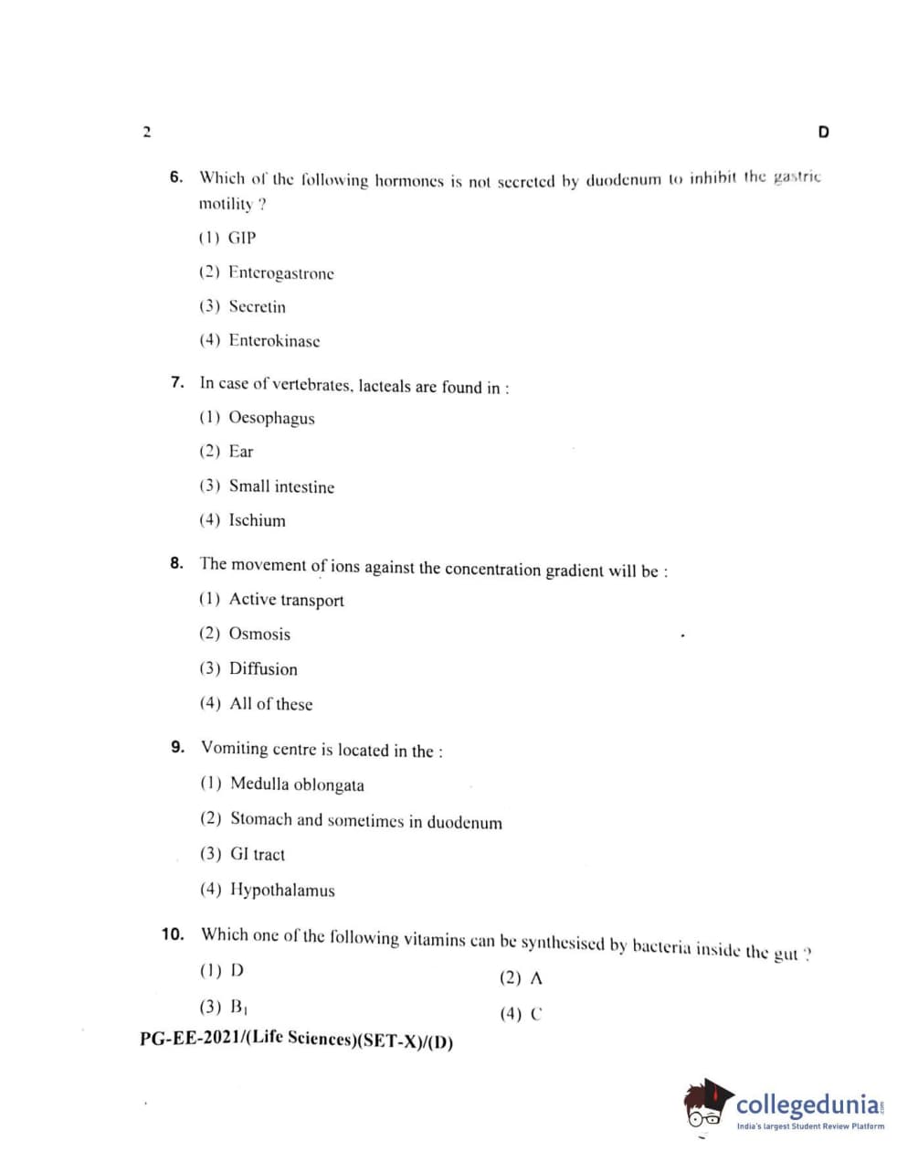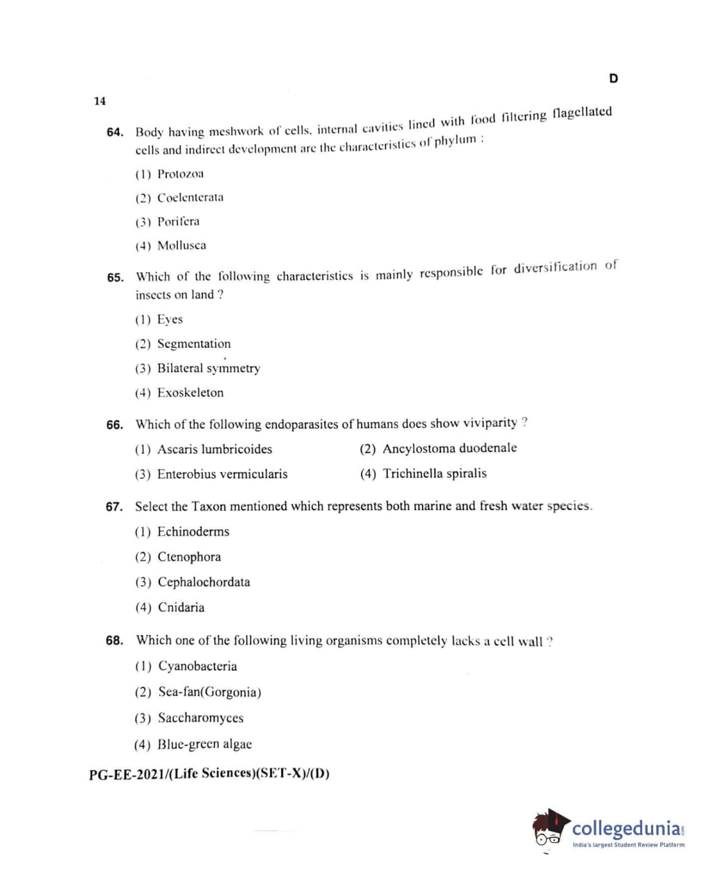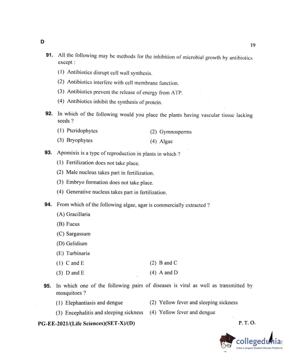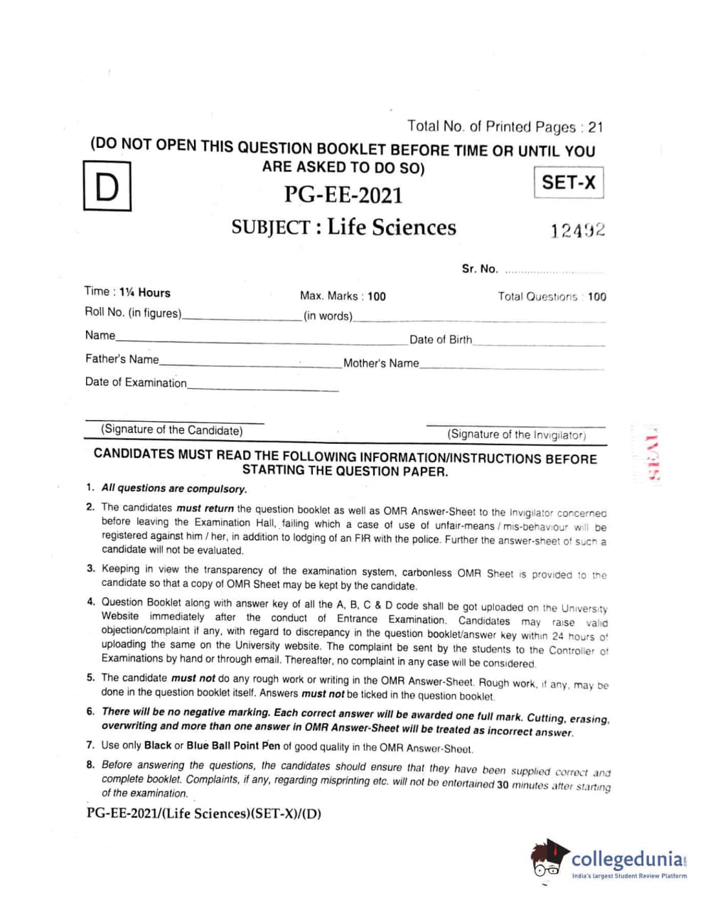 MDUCEE 2021 Life Sciences Set D Question Paper with Answer Key PDFs