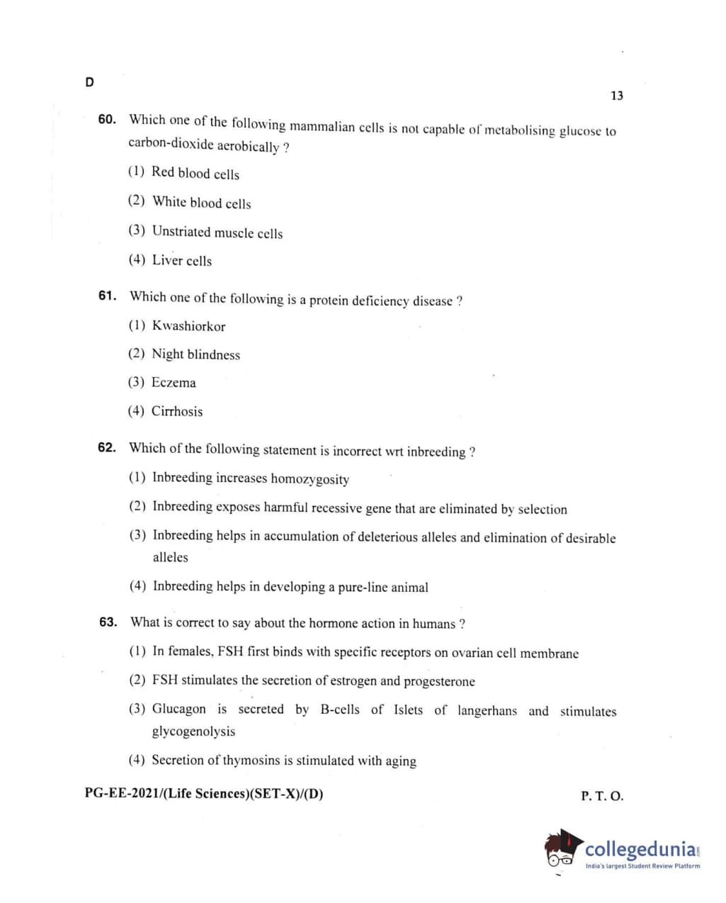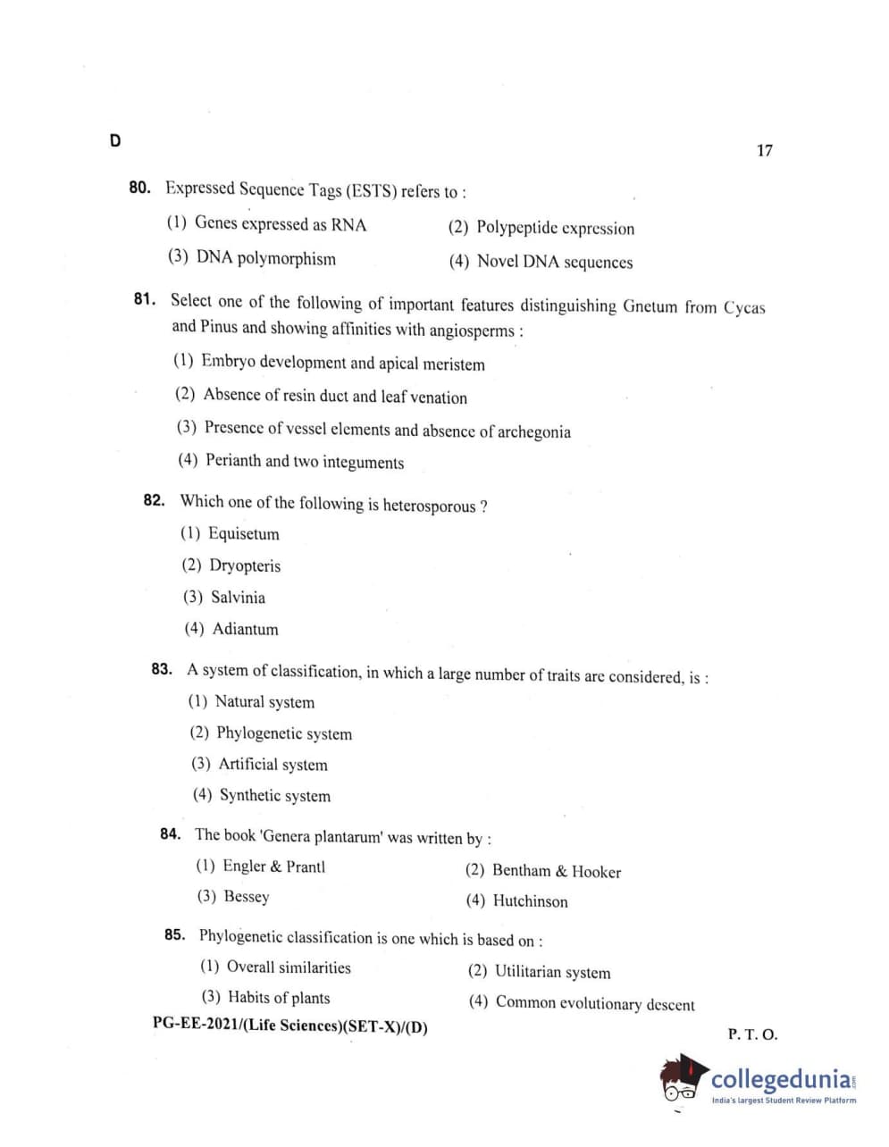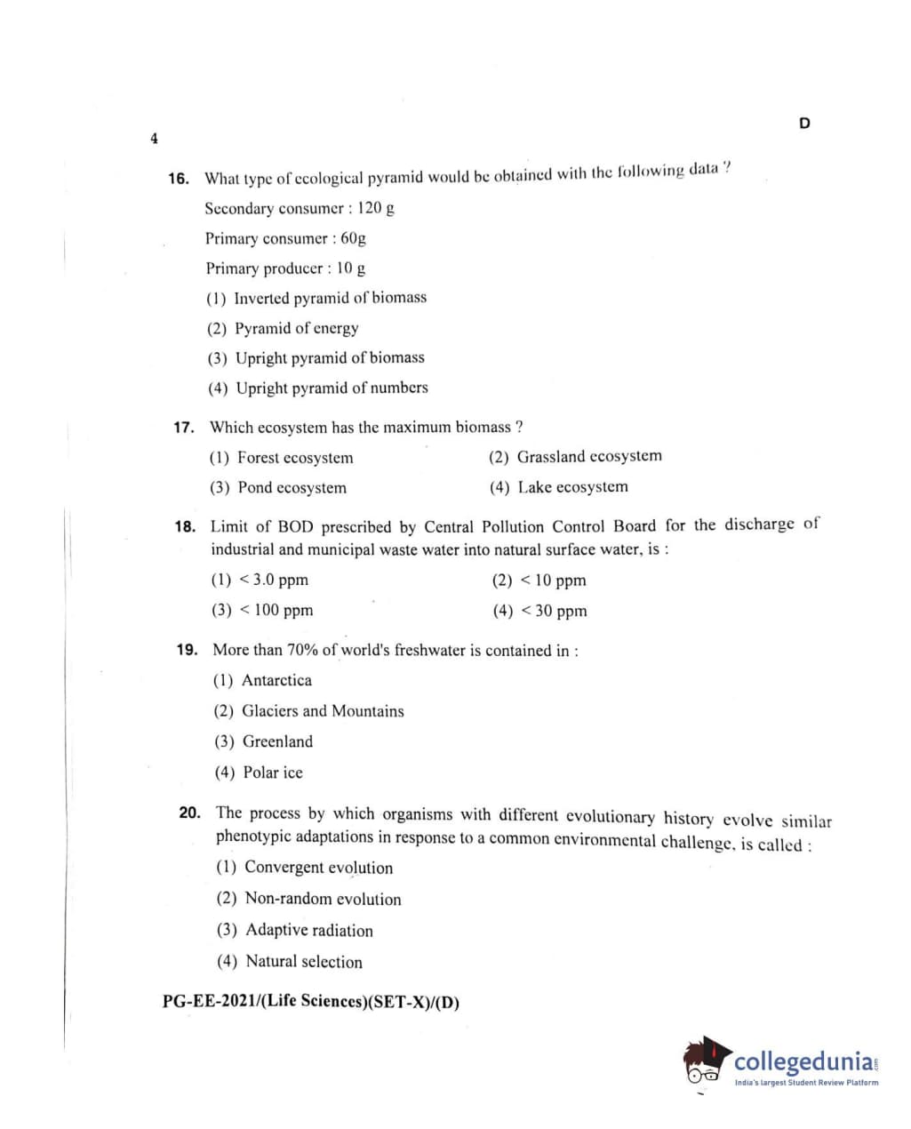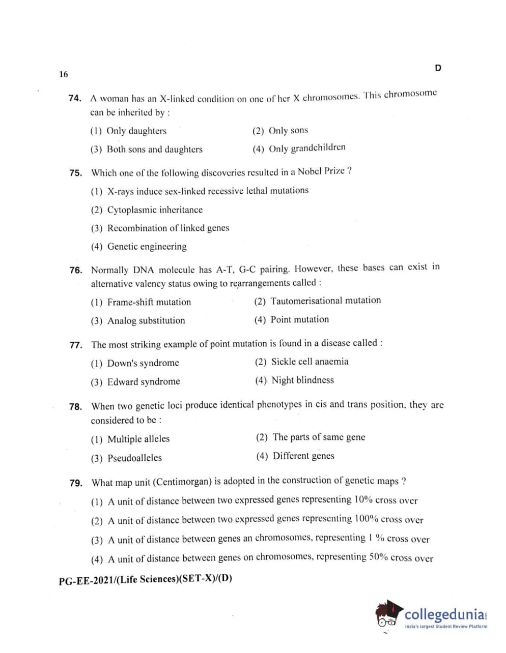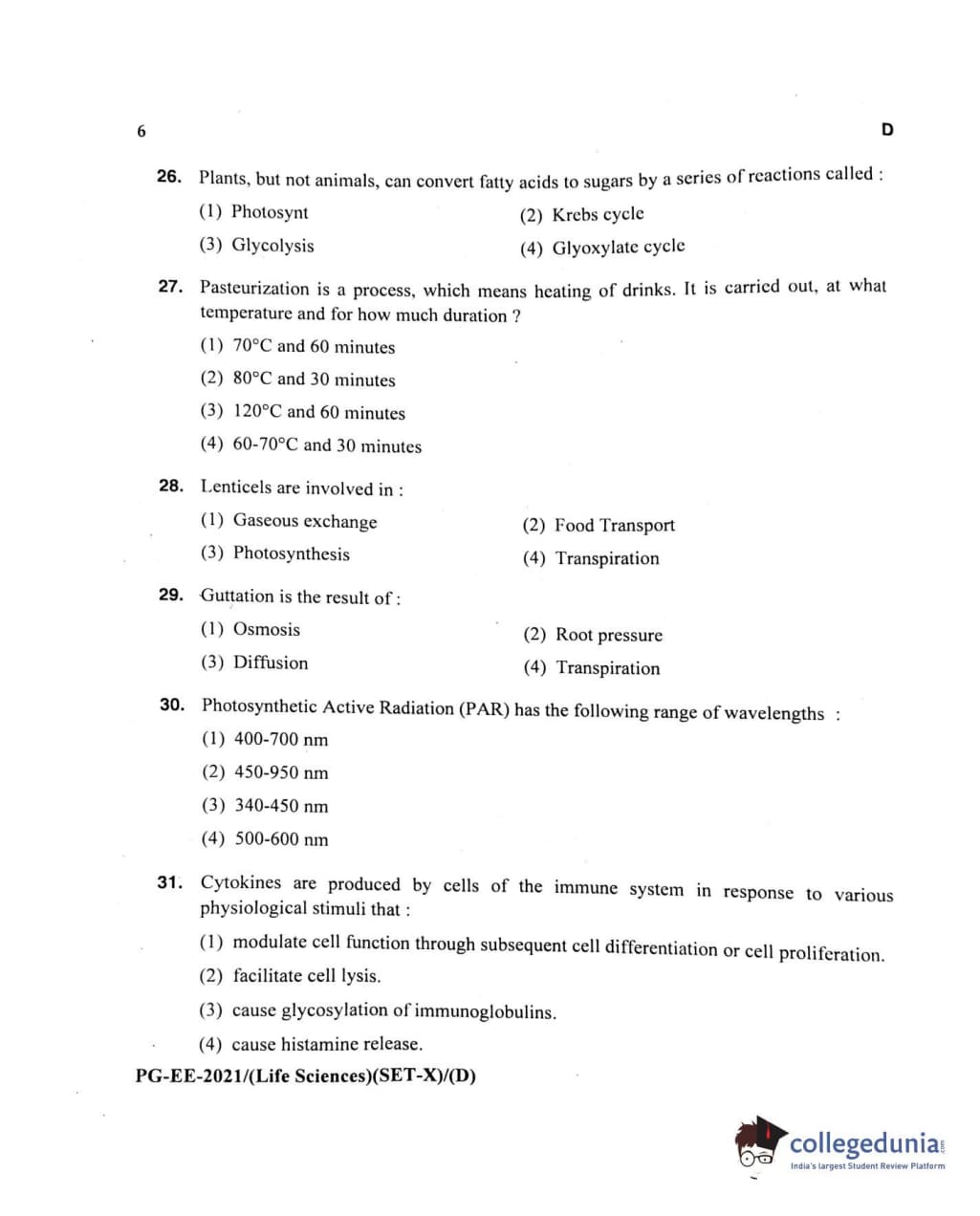 MDUCEE 2021 Life Sciences Set D Question Paper with Answer Key PDFs