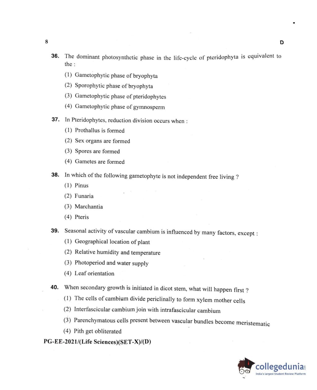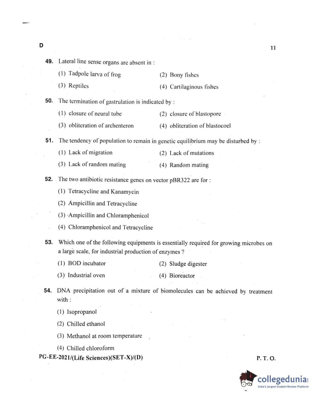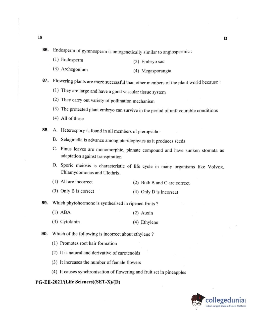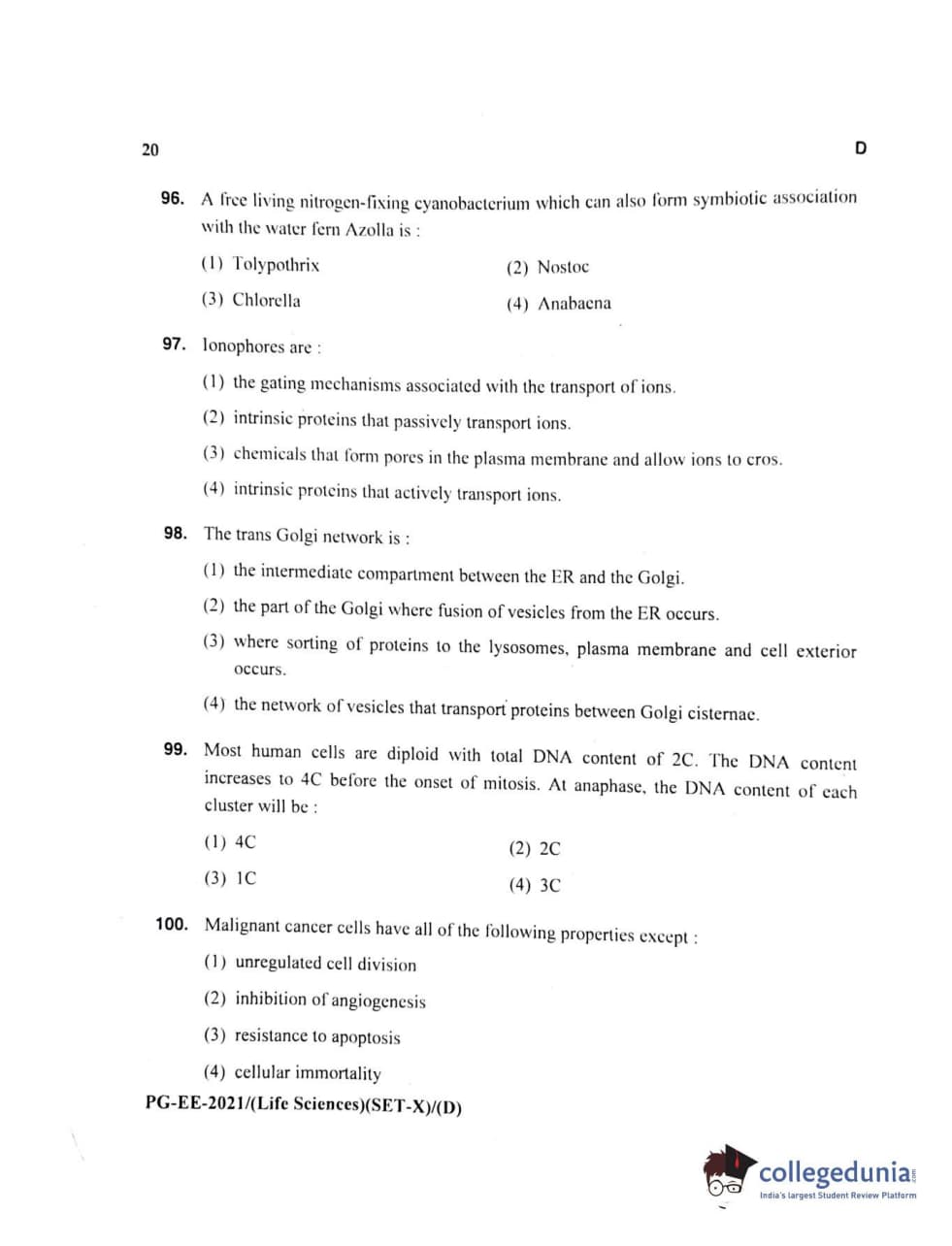 MDUCEE 2021 Life Sciences Set D Question Paper with Answer Key PDFs