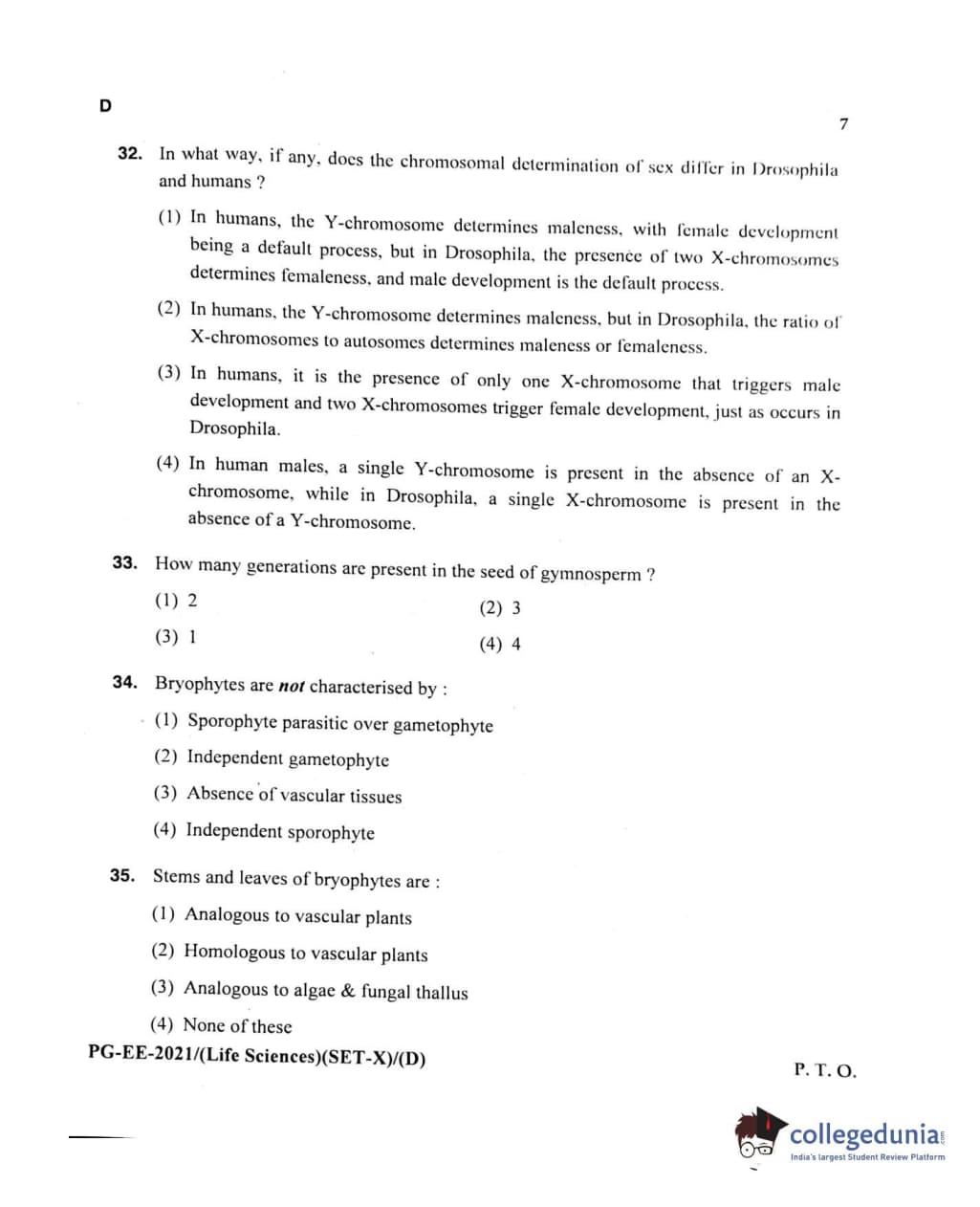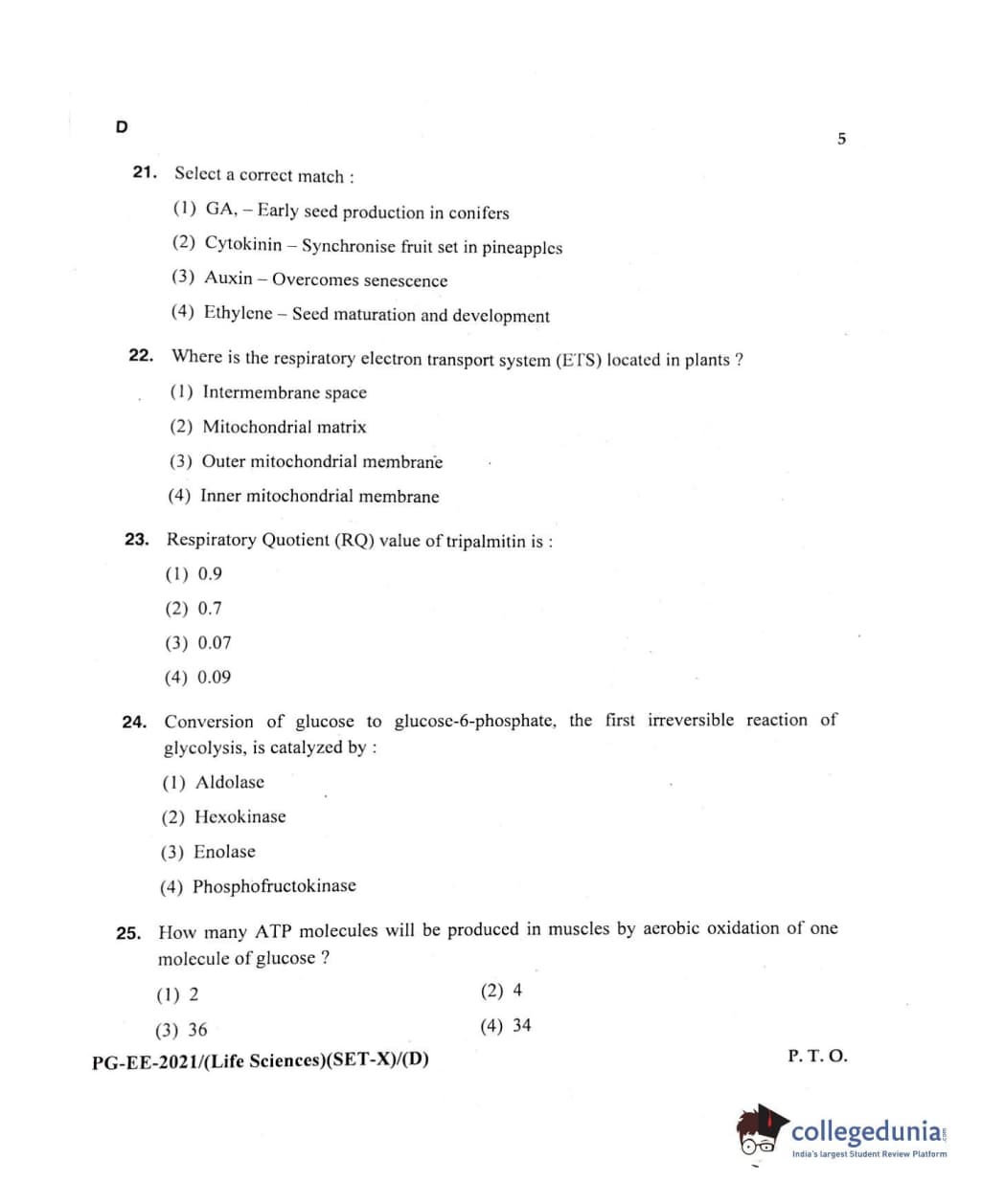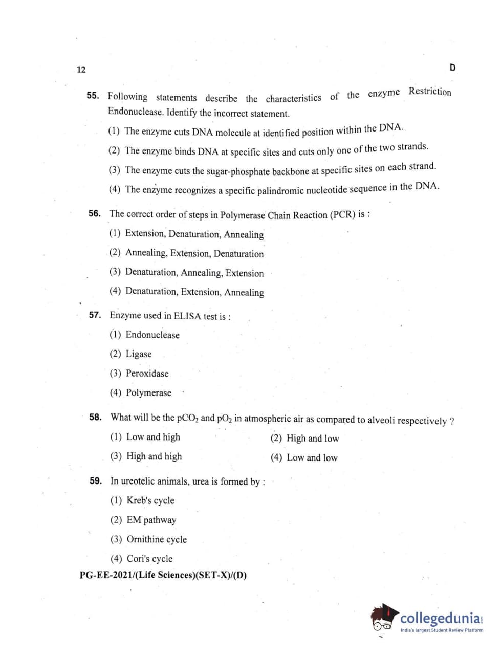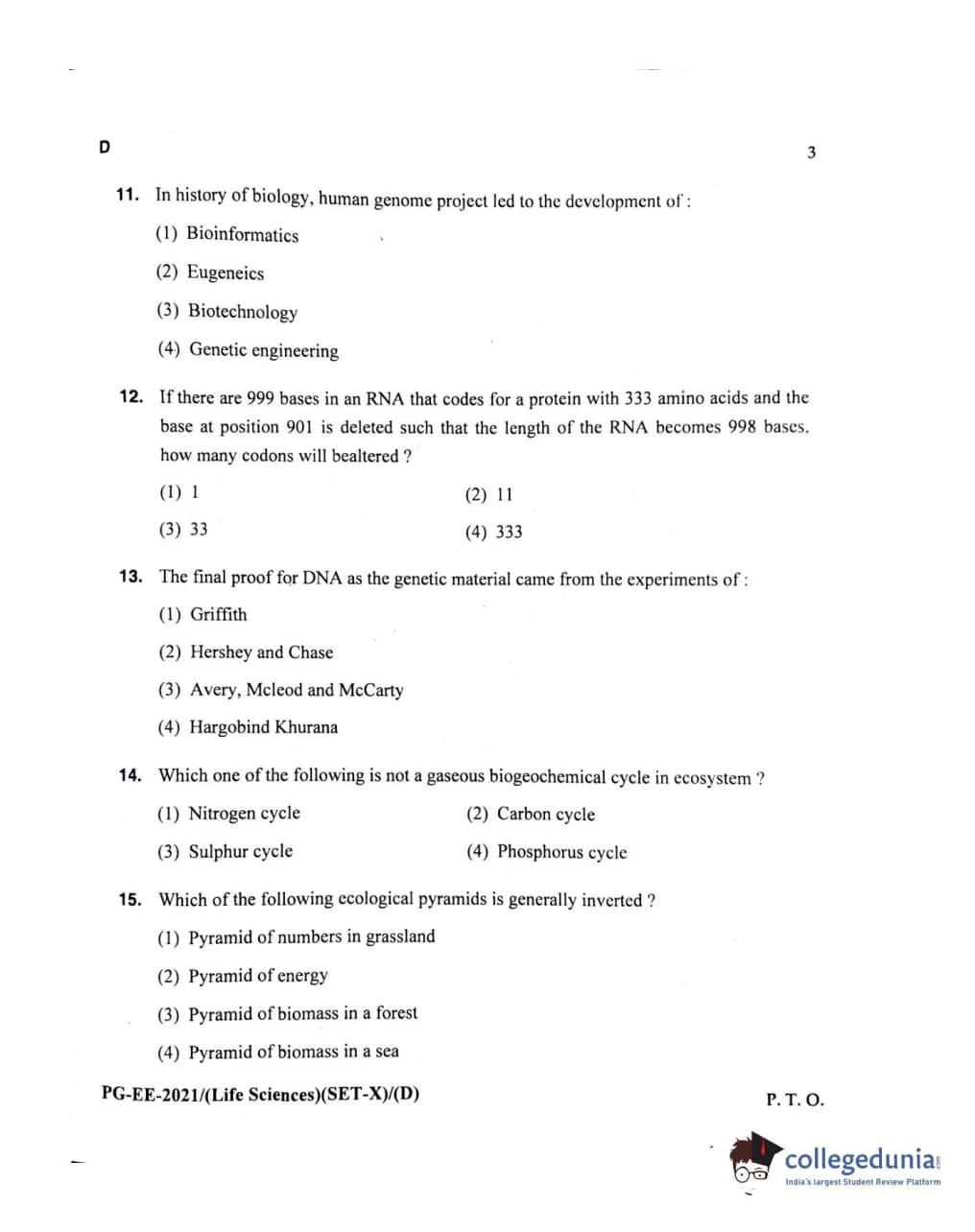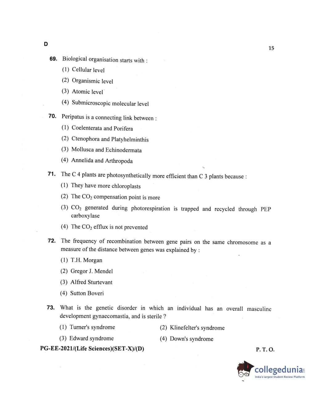 MDUCEE 2021 Life Sciences Set D Question Paper with Answer Key PDFs