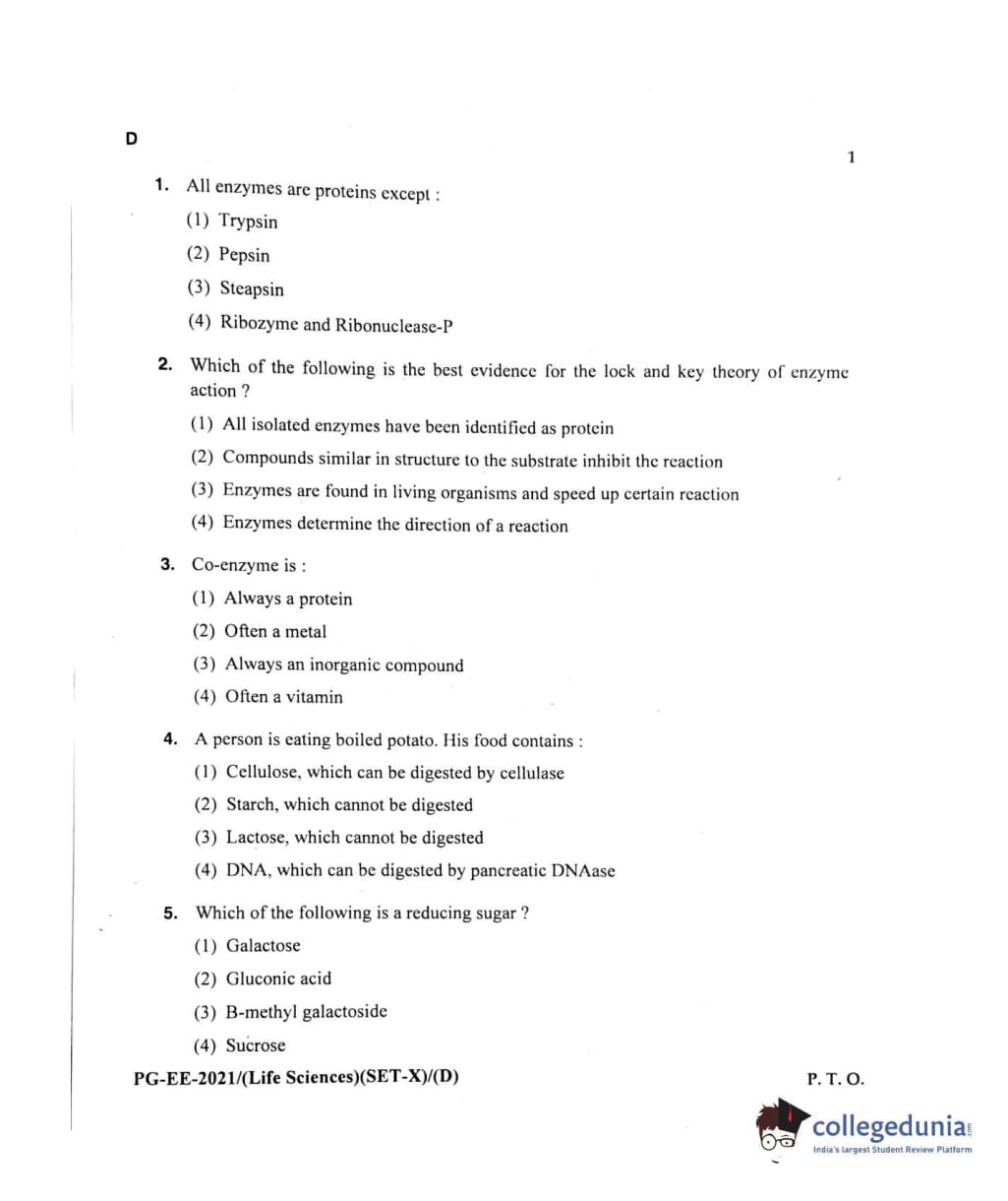 | MDUCEE 2021 Life Sciences Set D Question Paper PDF | MDUCEE 2021 Life Sciences Set D Answer Key PDF |