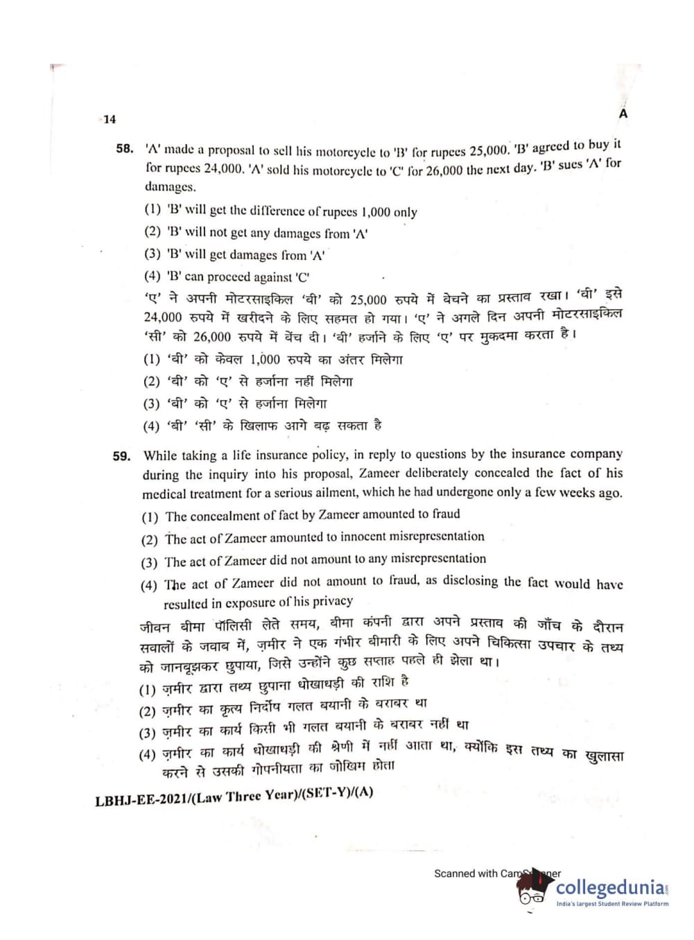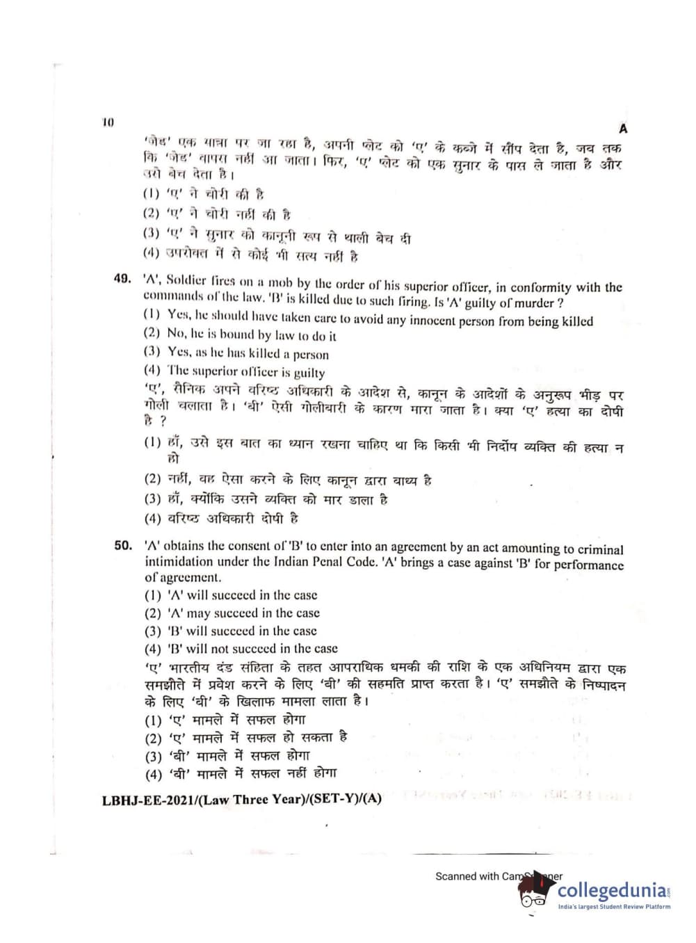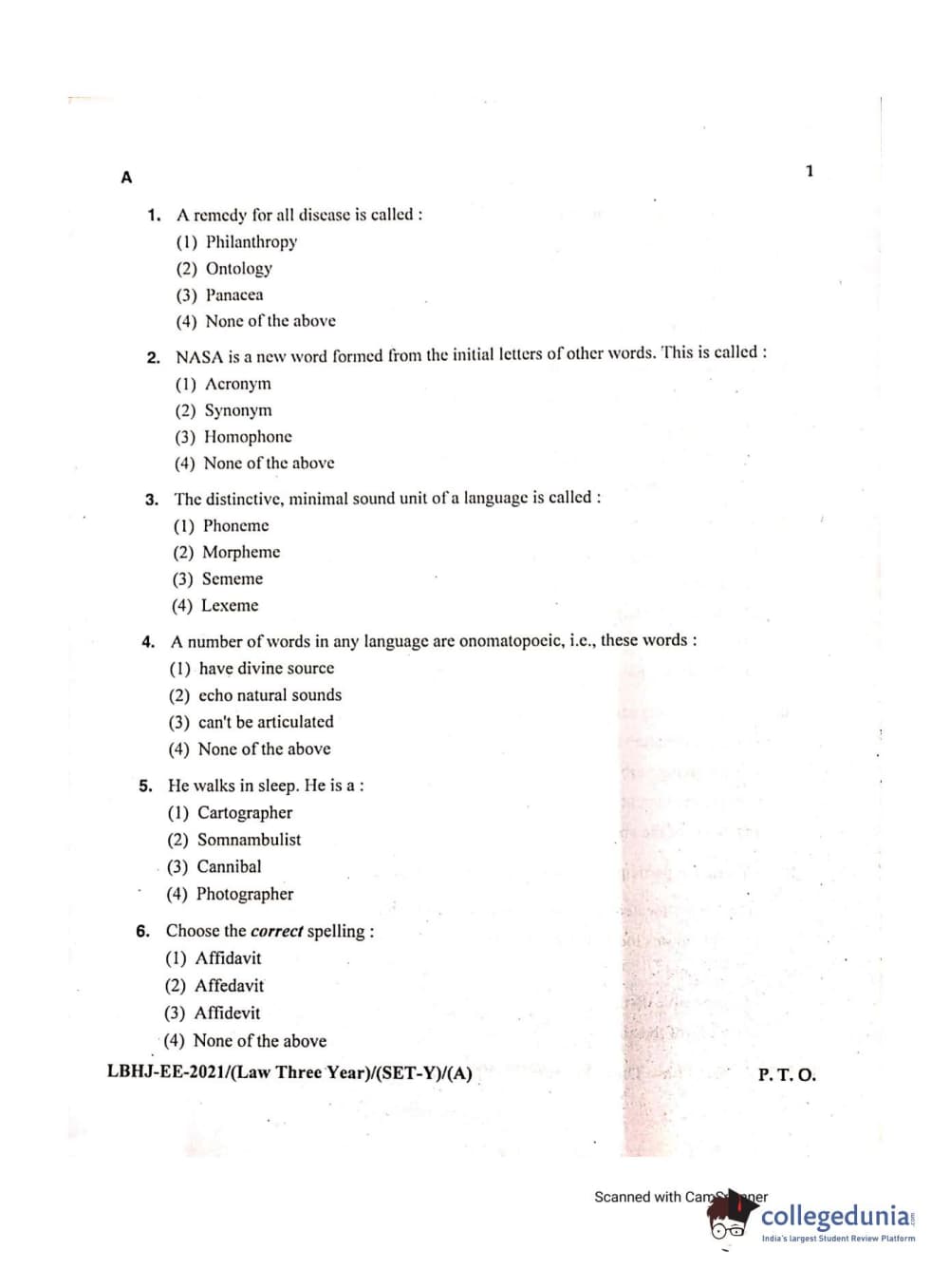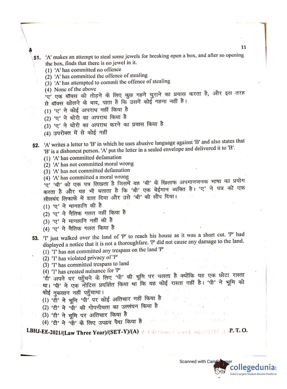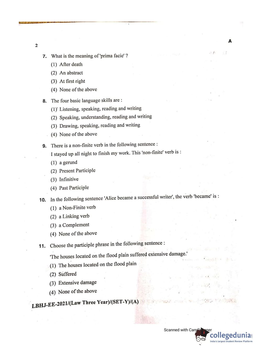 MDUCEE 2021 LL.B (Hons.)-3 Year course Set A Question Paper with Answer Key PDFs