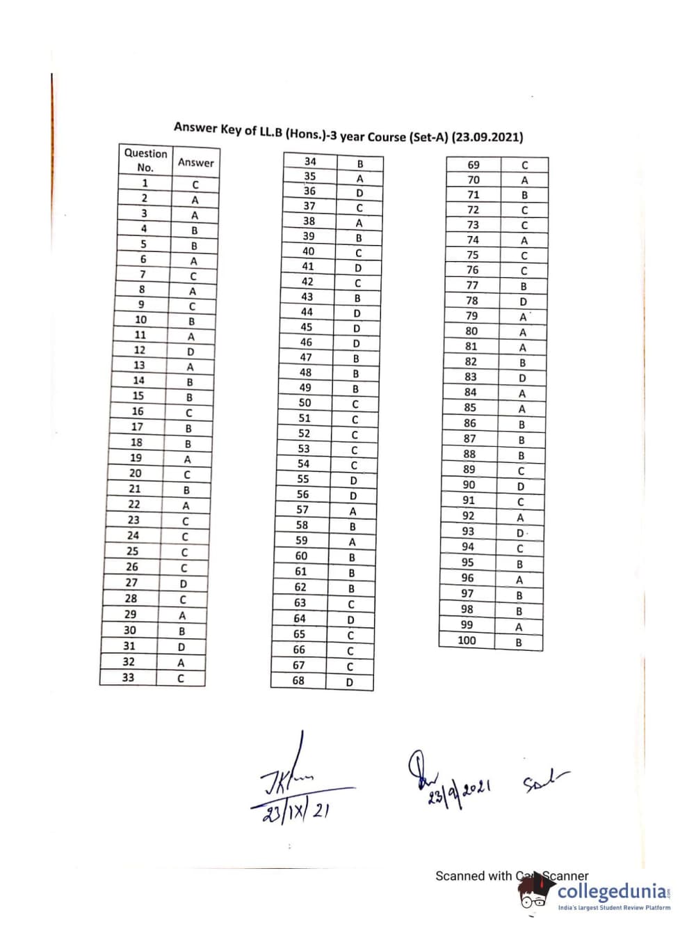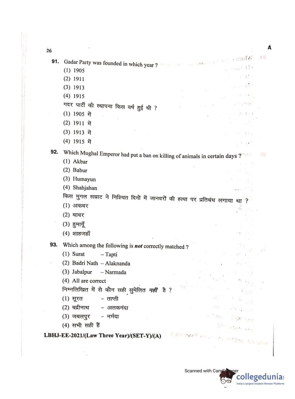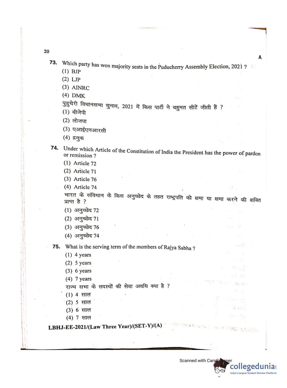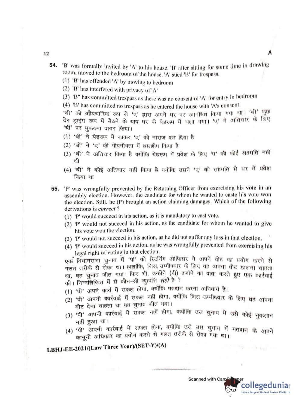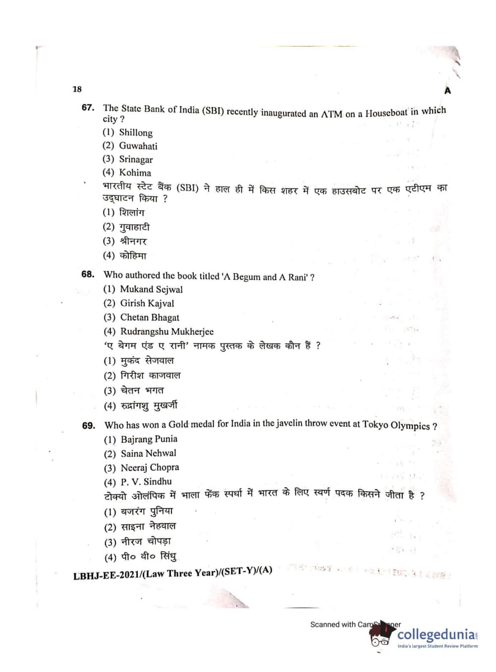 MDUCEE 2021 LL.B (Hons.)-3 Year course Set A Question Paper with Answer Key PDFs