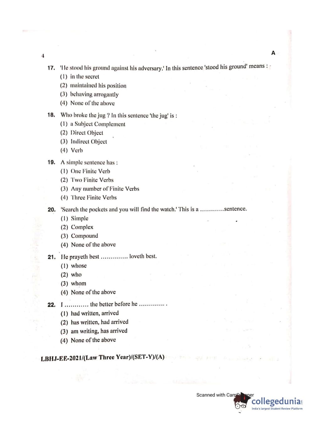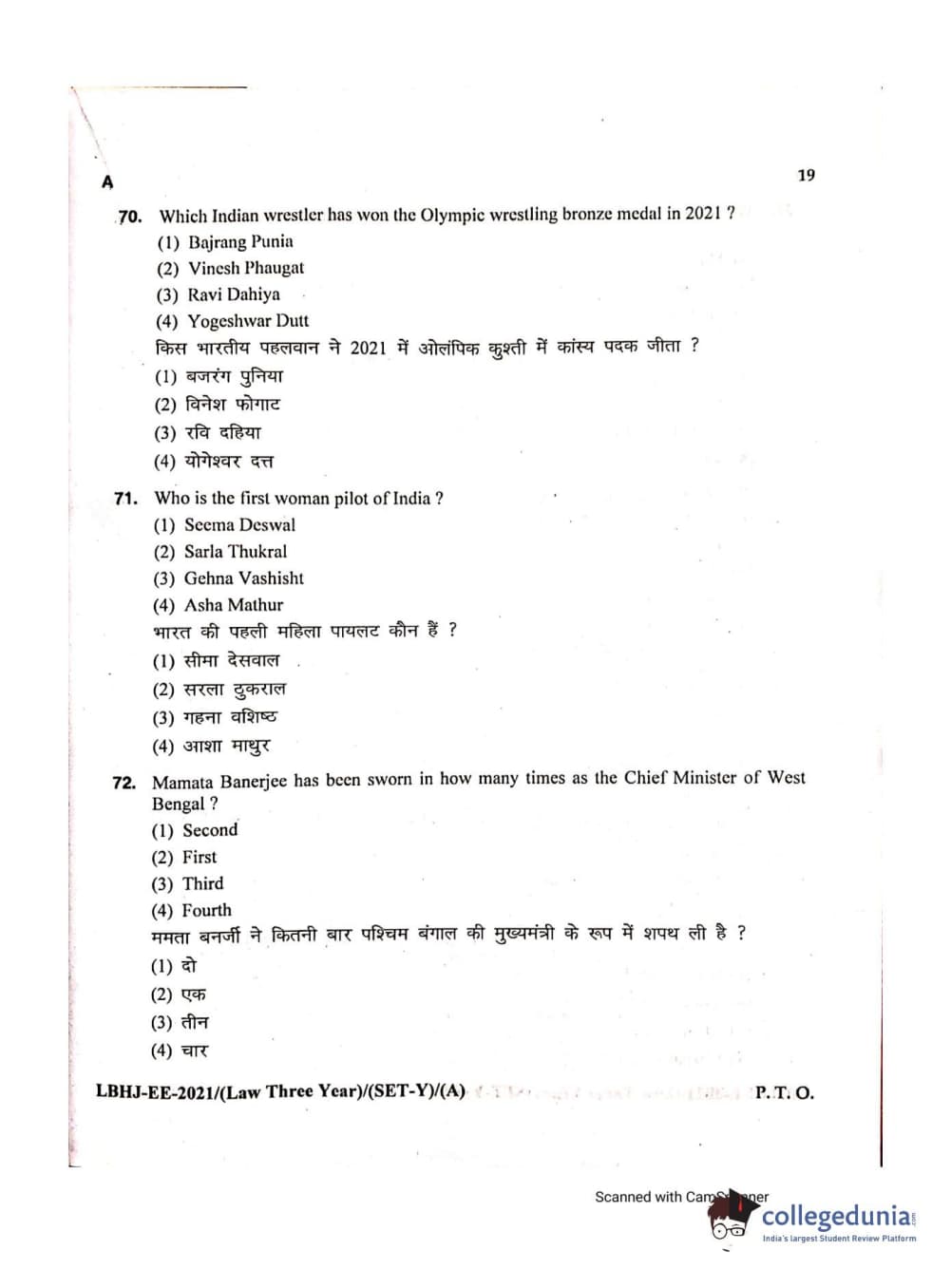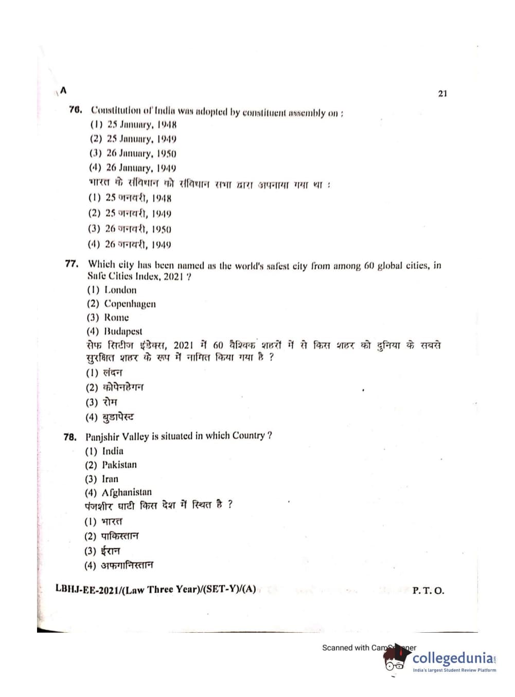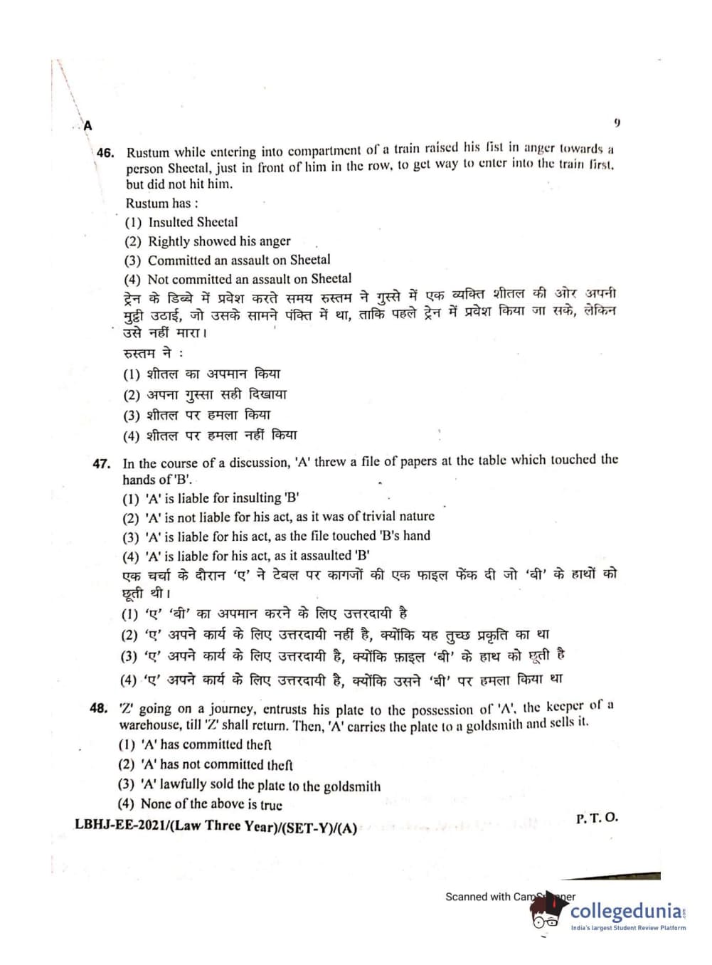 MDUCEE 2021 LL.B (Hons.)-3 Year course Set A Question Paper with Answer Key PDFs