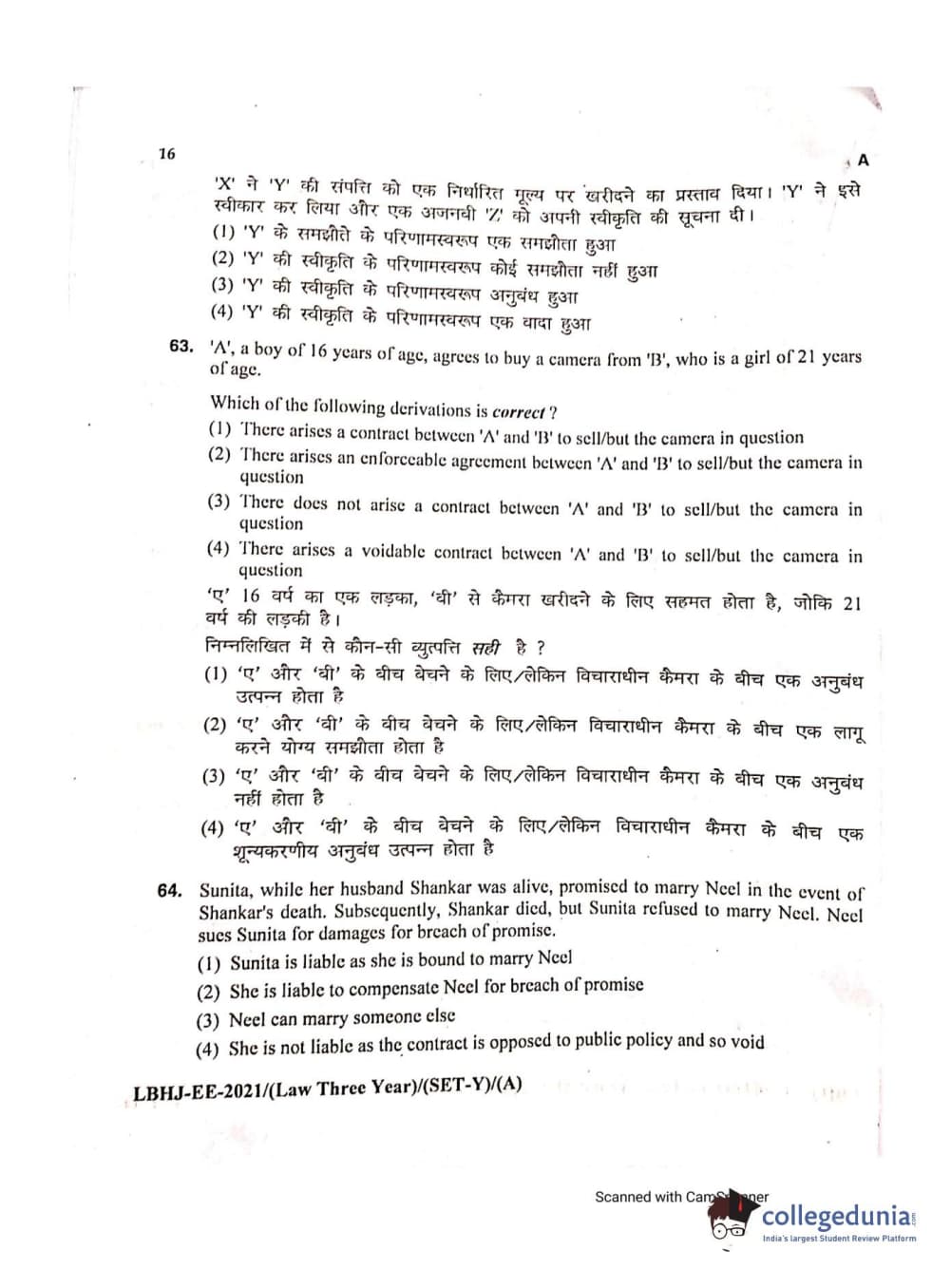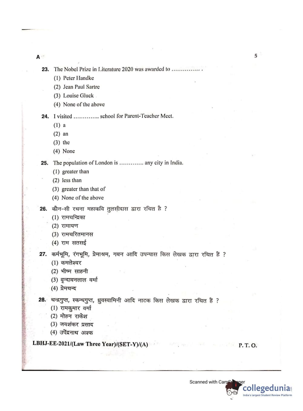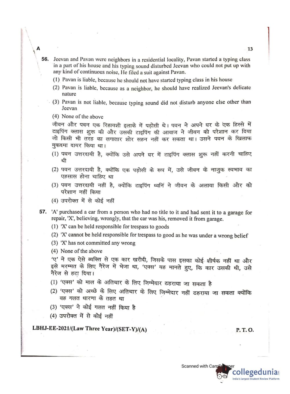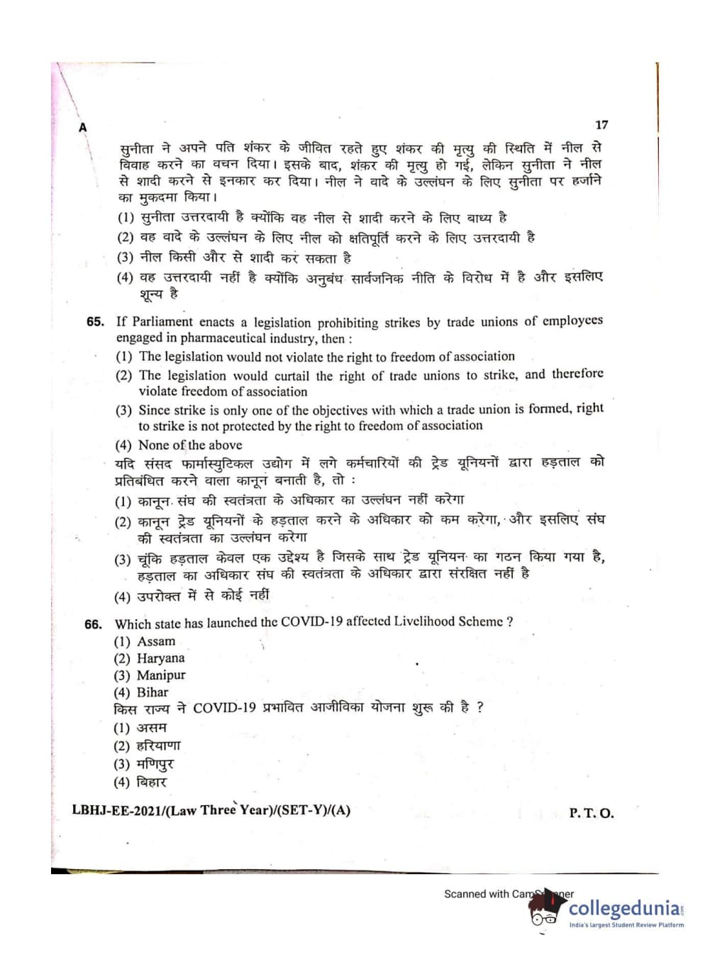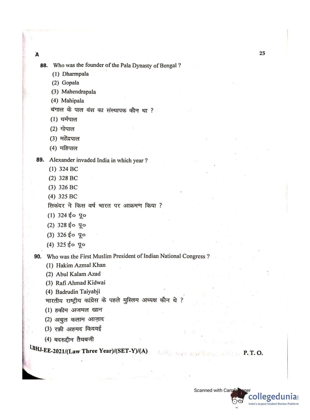 MDUCEE 2021 LL.B (Hons.)-3 Year course Set A Question Paper with Answer Key PDFs