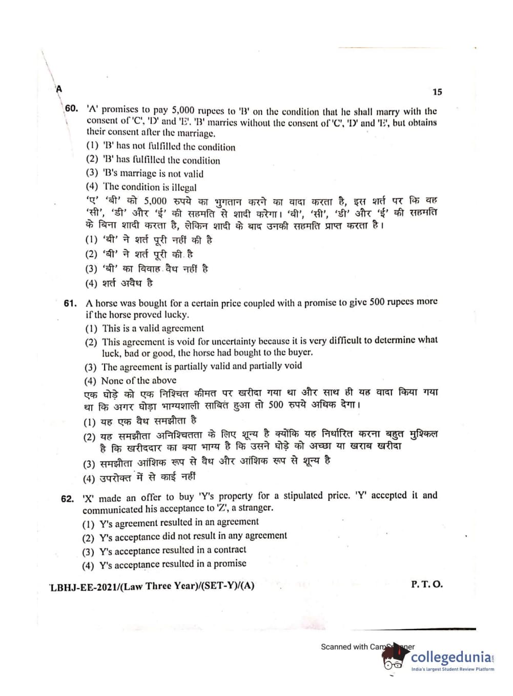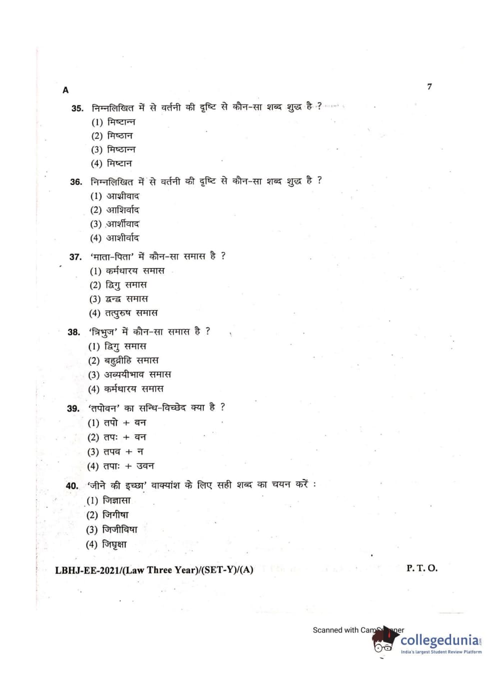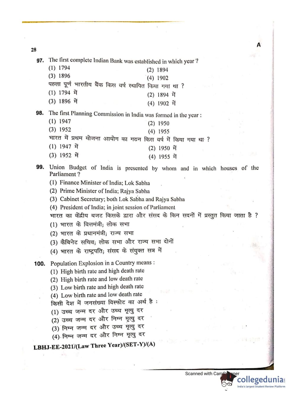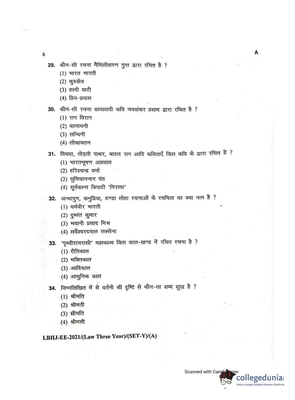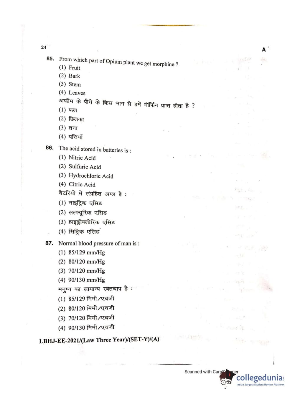 MDUCEE 2021 LL.B (Hons.)-3 Year course Set A Question Paper with Answer Key PDFs