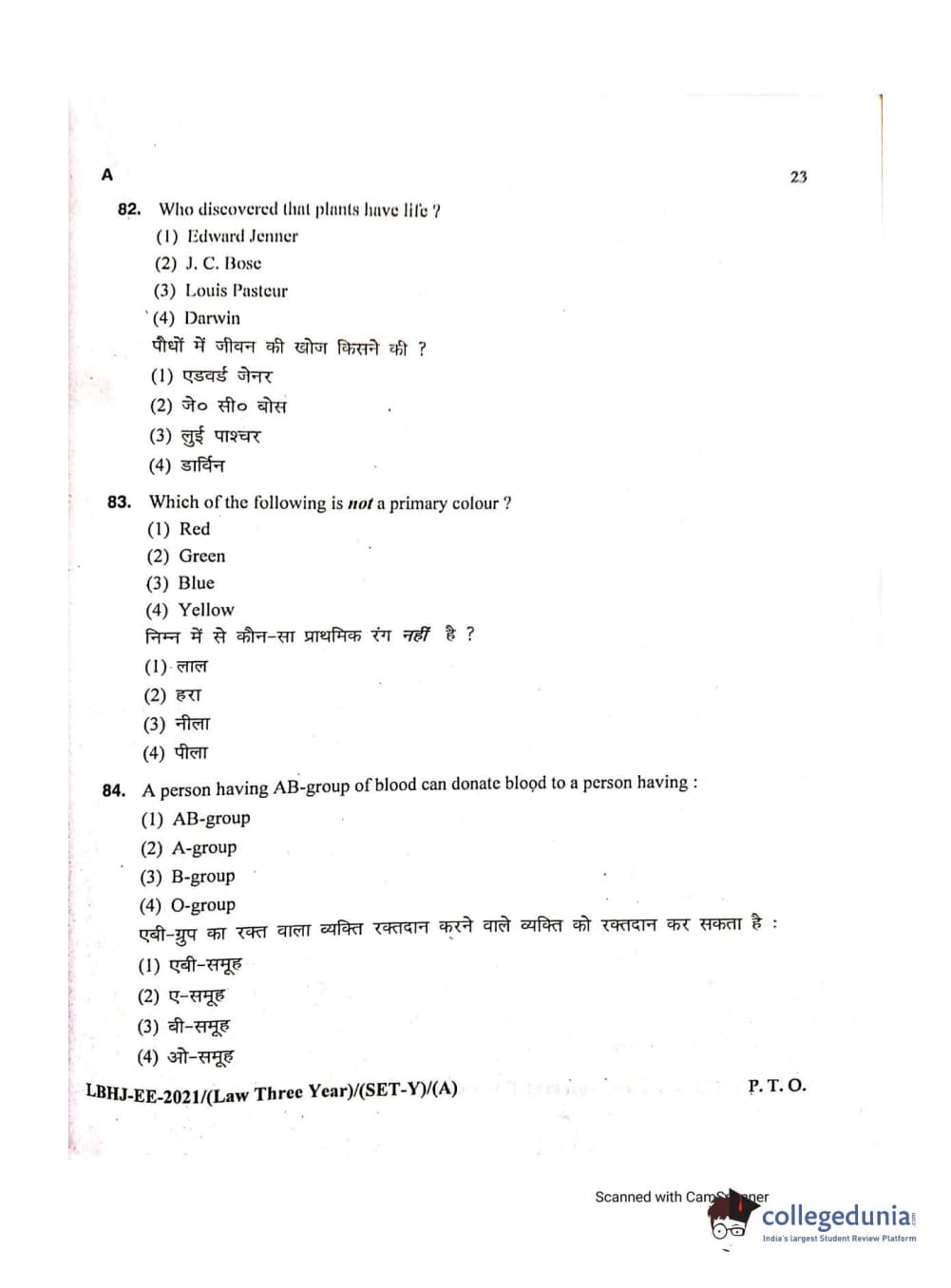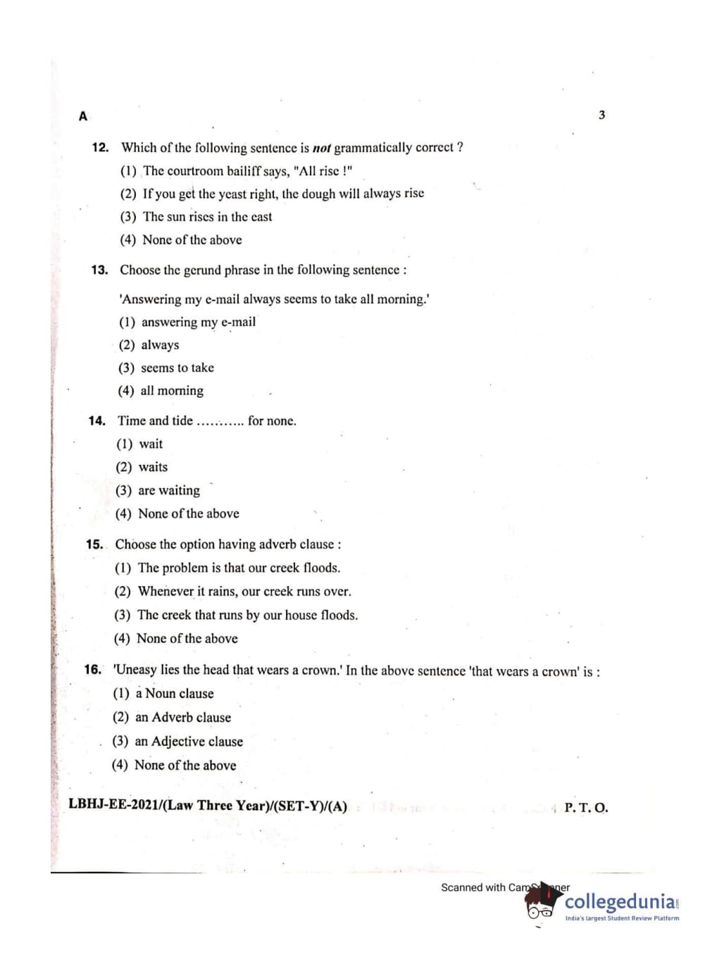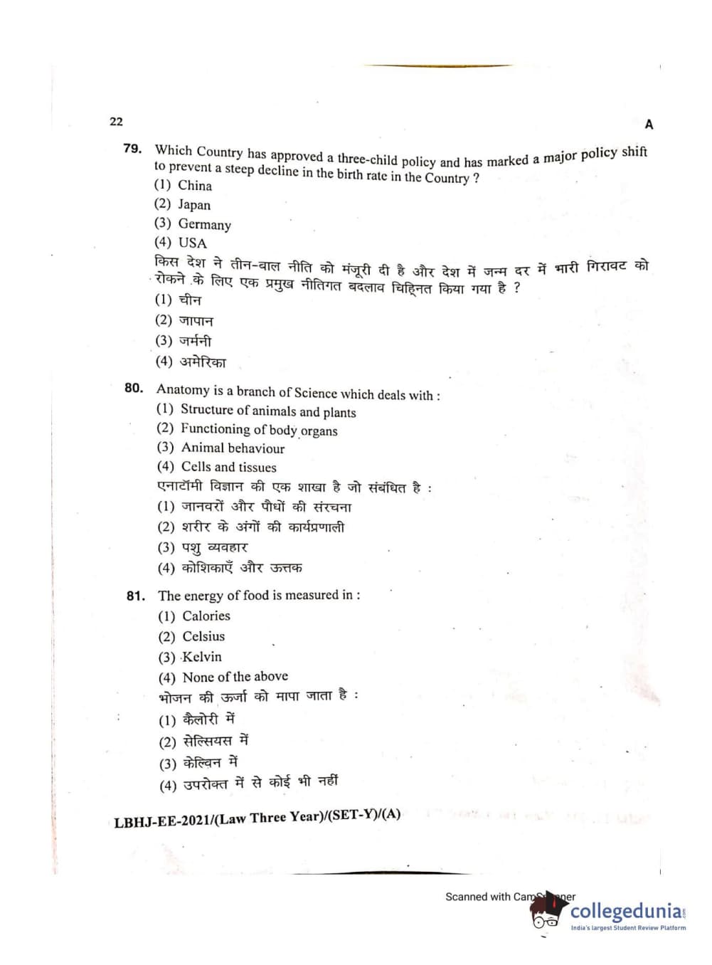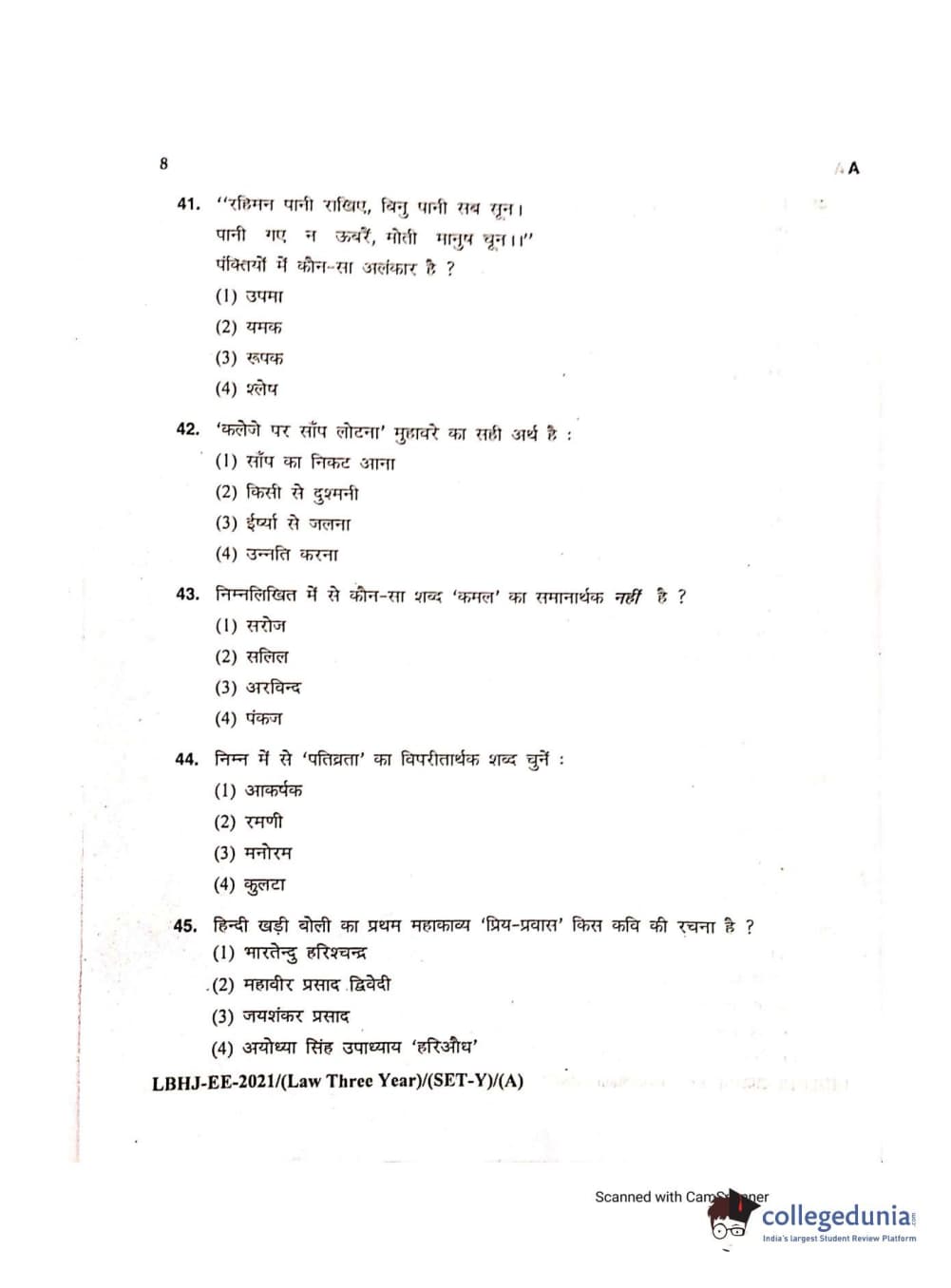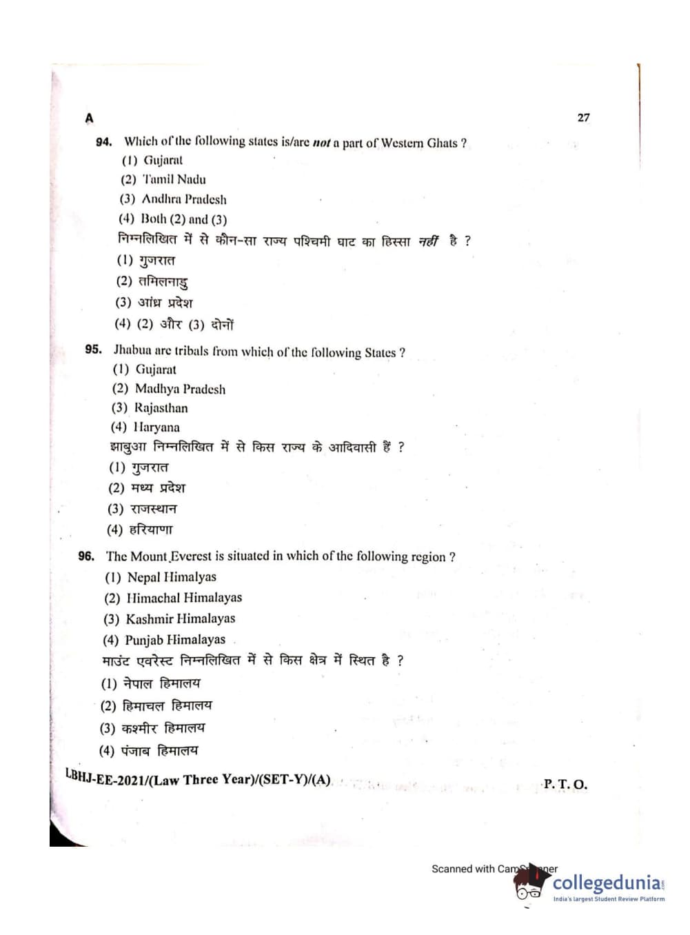 MDUCEE 2021 LL.B (Hons.)-3 Year course Set A Question Paper with Answer Key PDFs
