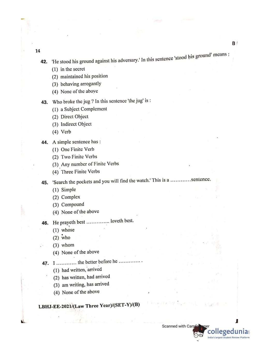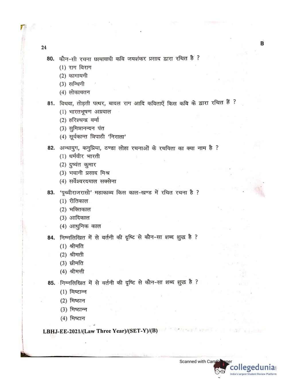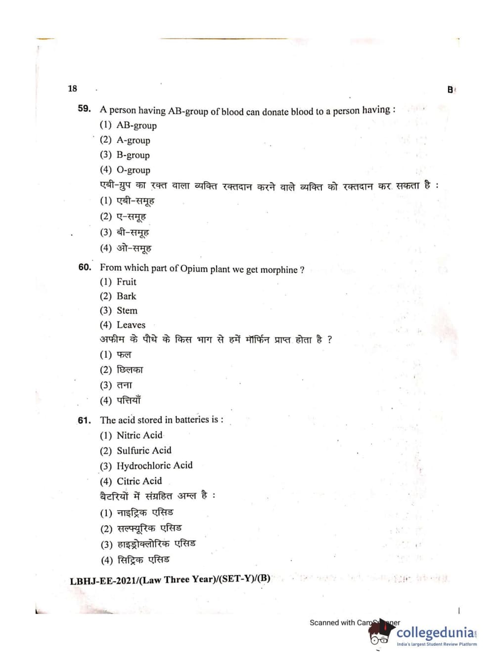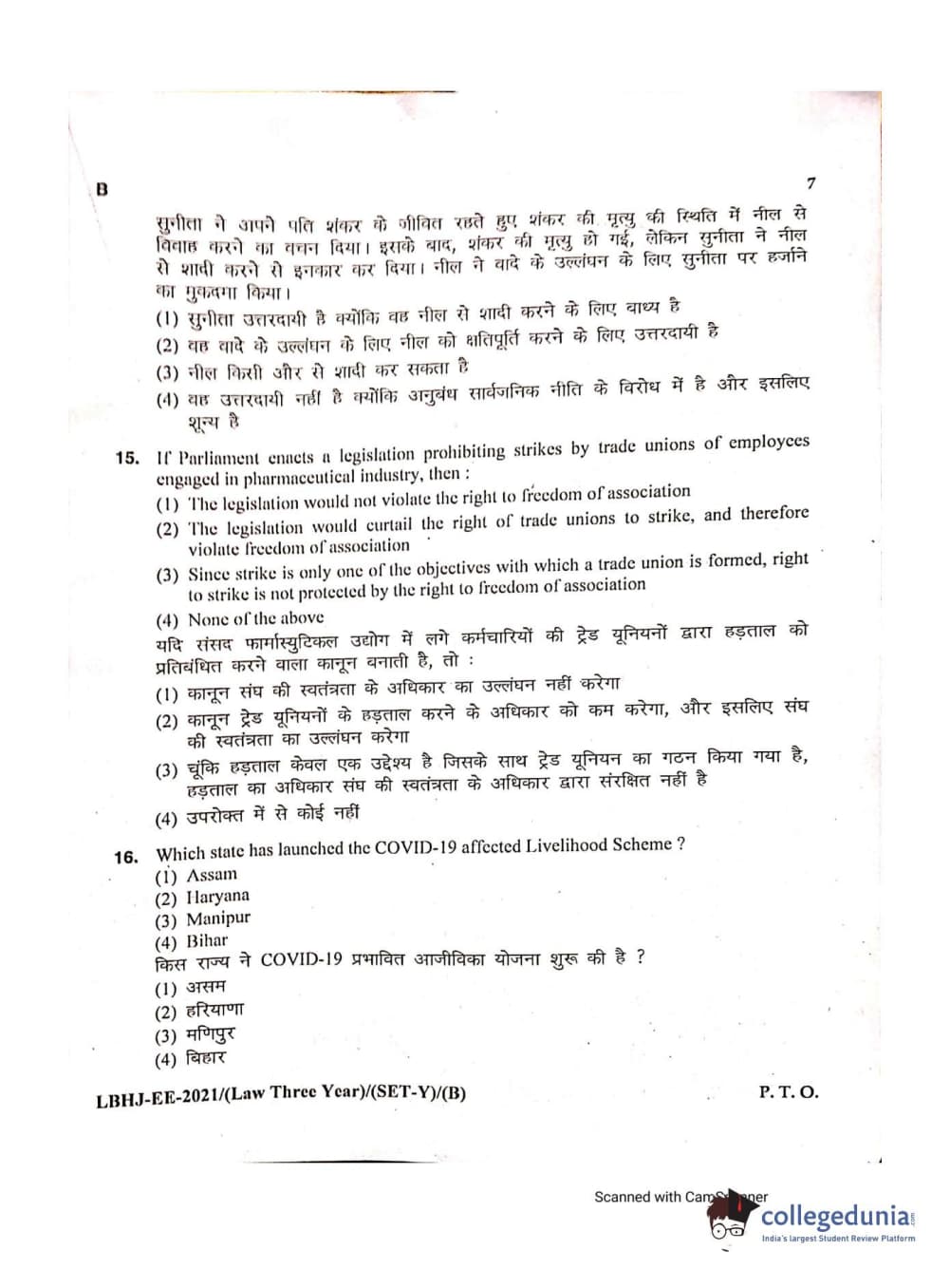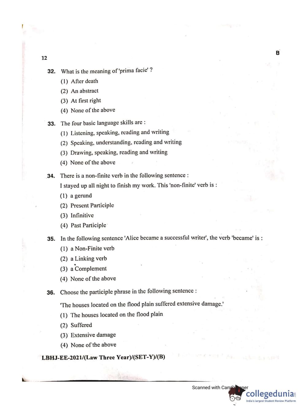 MDUCEE 2021 LL.B (Hons.)-3 Year course Set B Question Paper with Answer Key PDFs