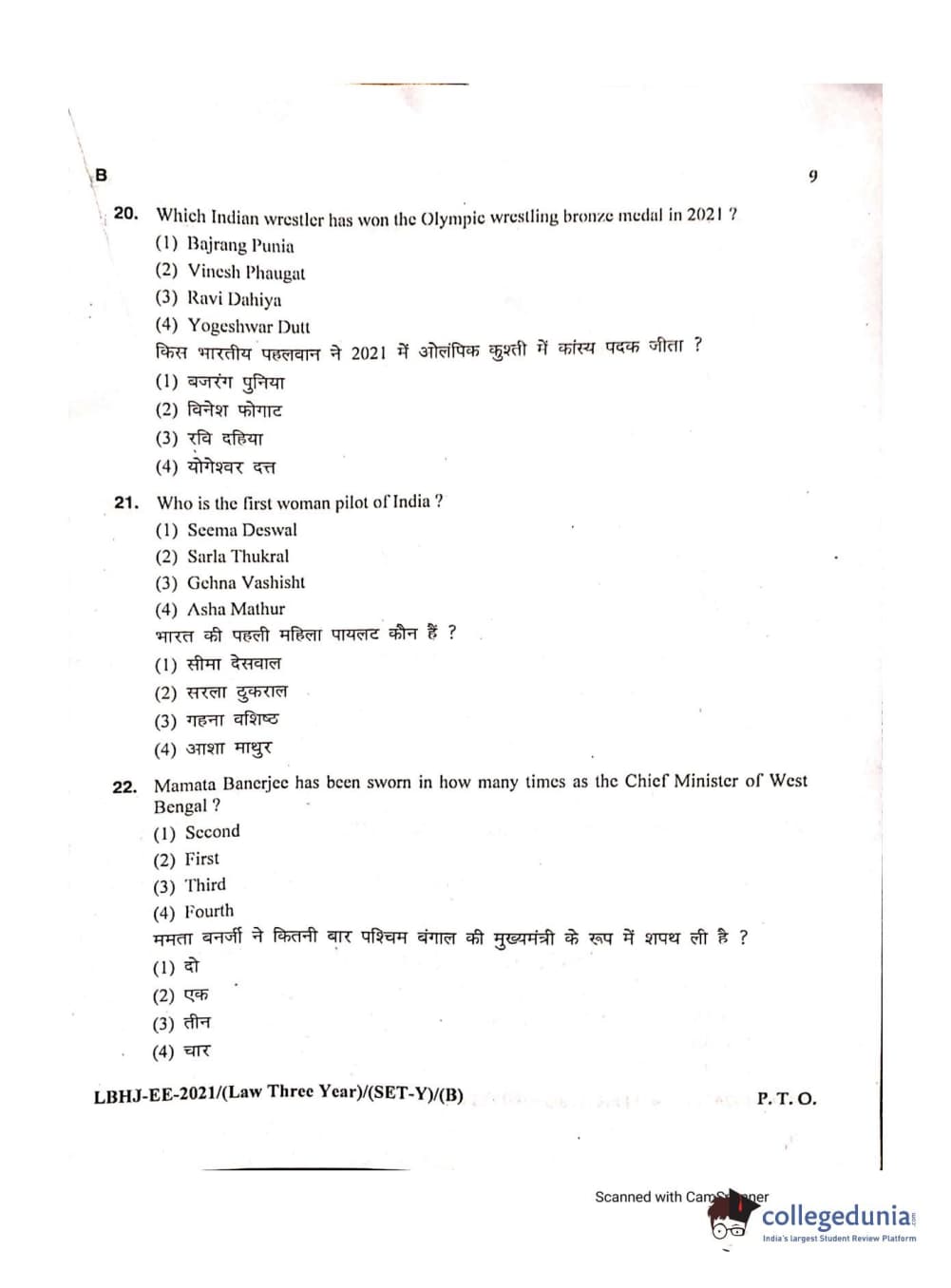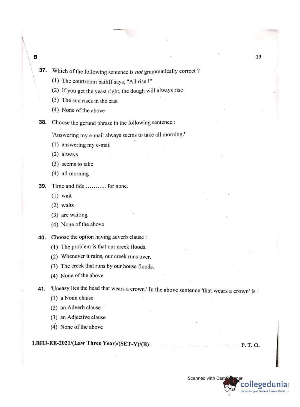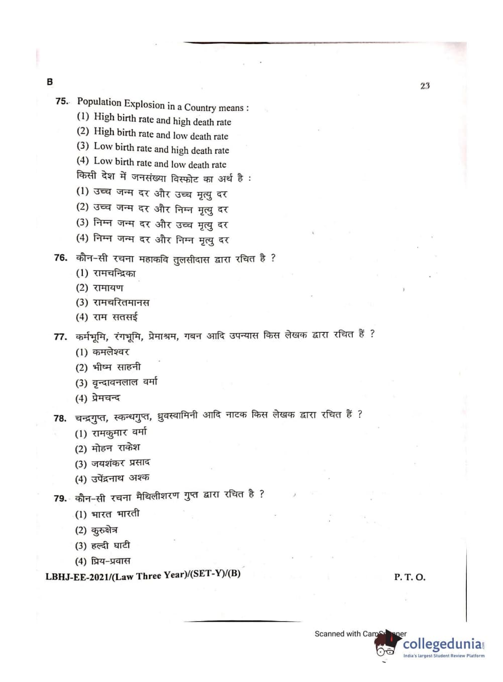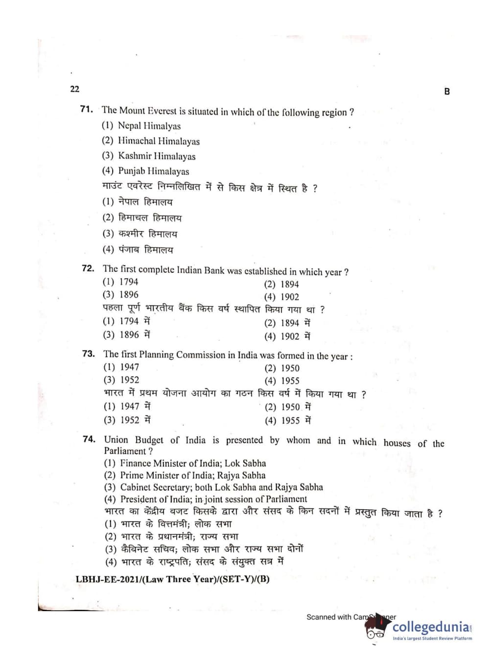 MDUCEE 2021 LL.B (Hons.)-3 Year course Set B Question Paper with Answer Key PDFs
