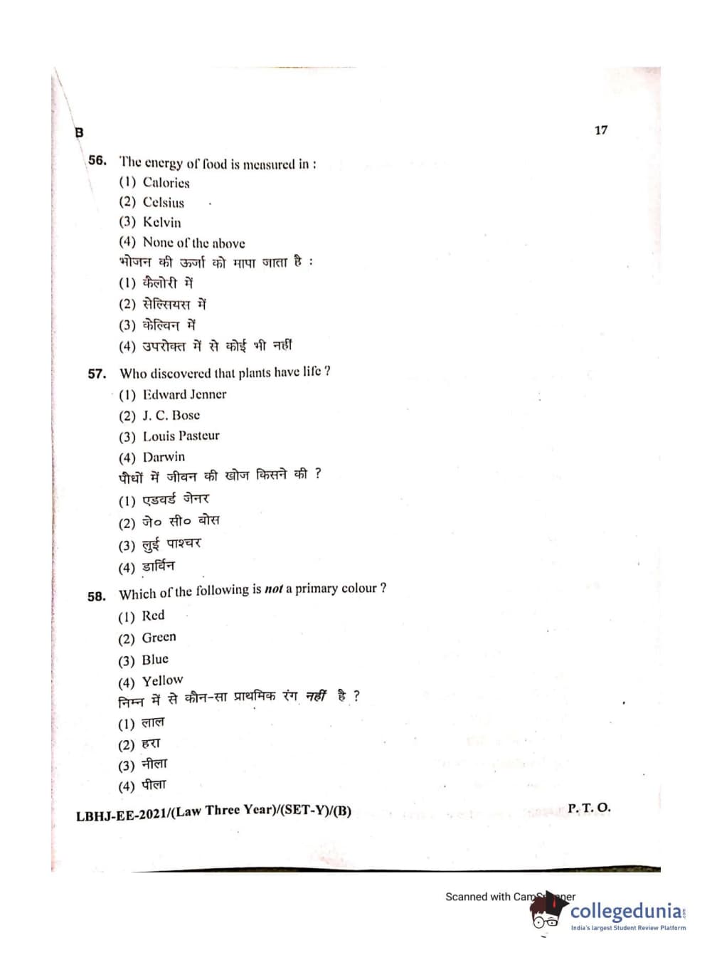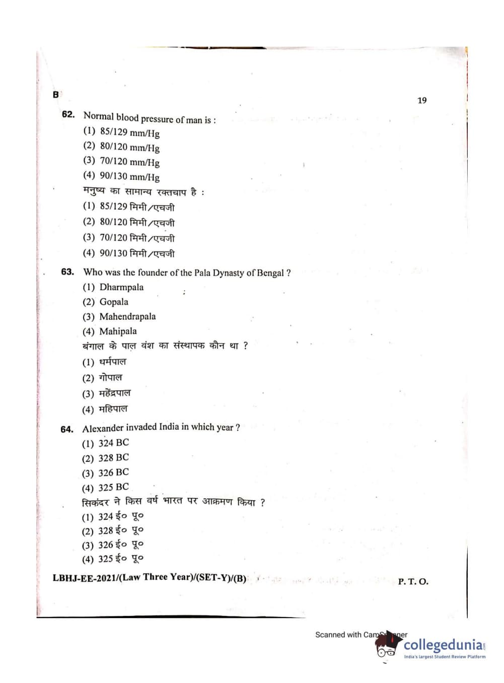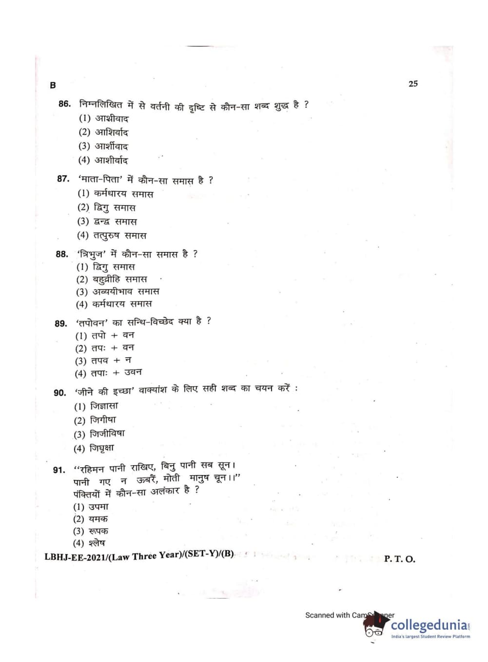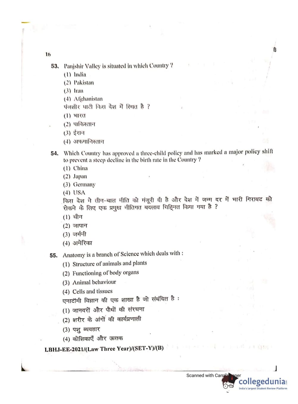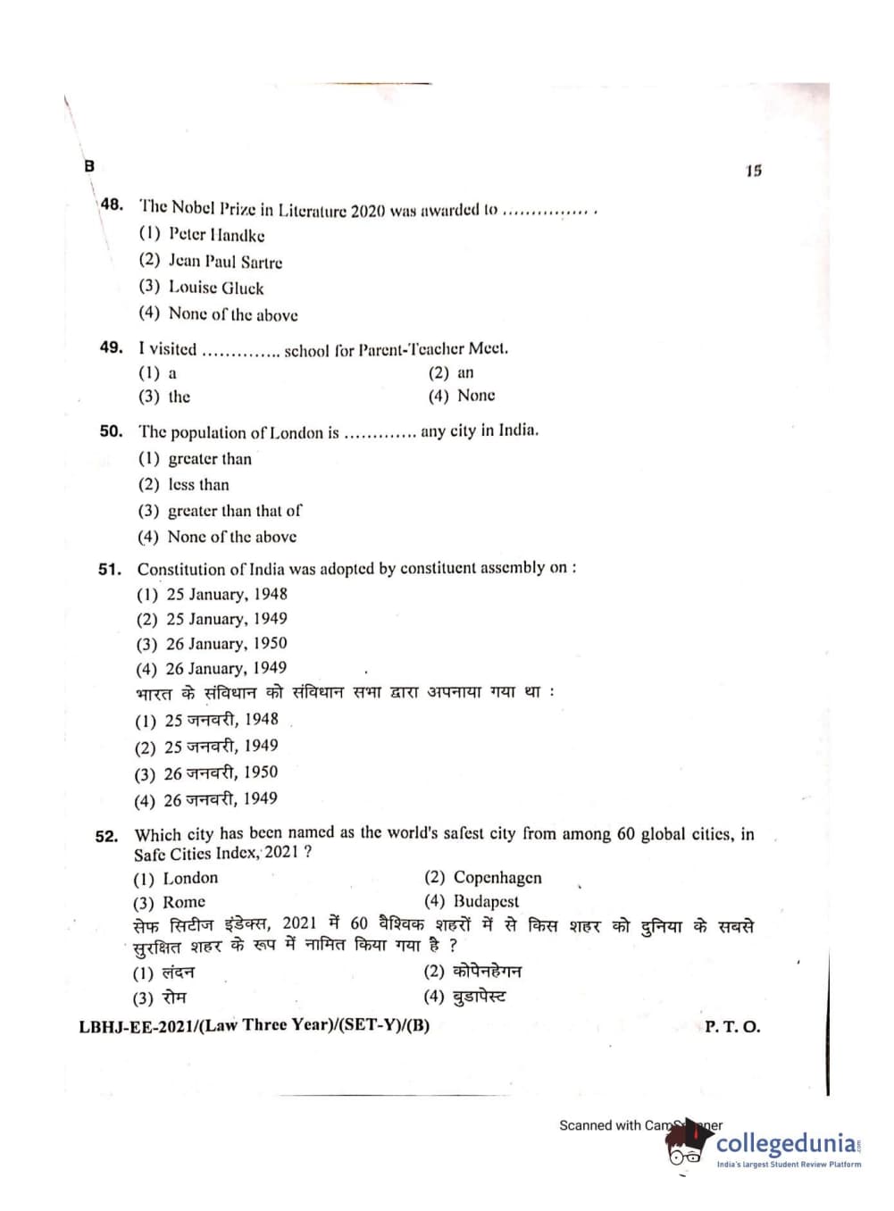 MDUCEE 2021 LL.B (Hons.)-3 Year course Set B Question Paper with Answer Key PDFs