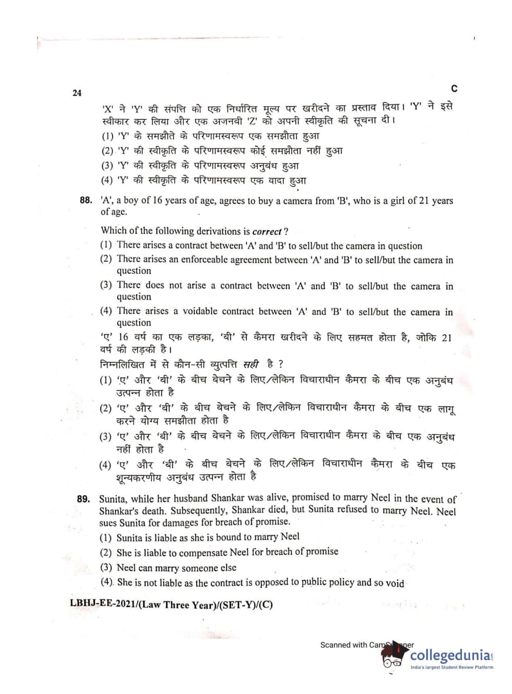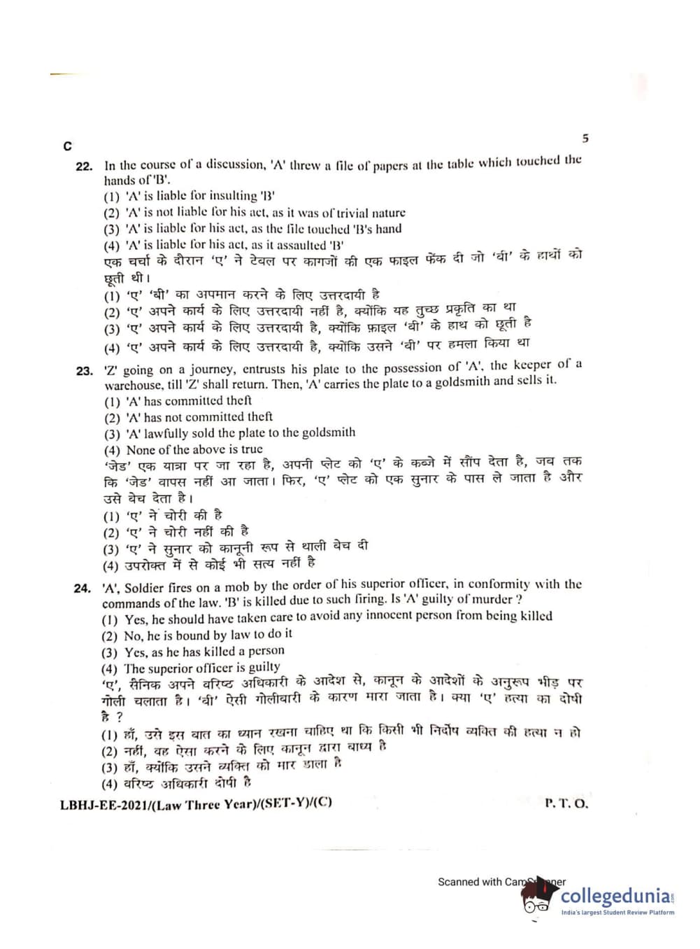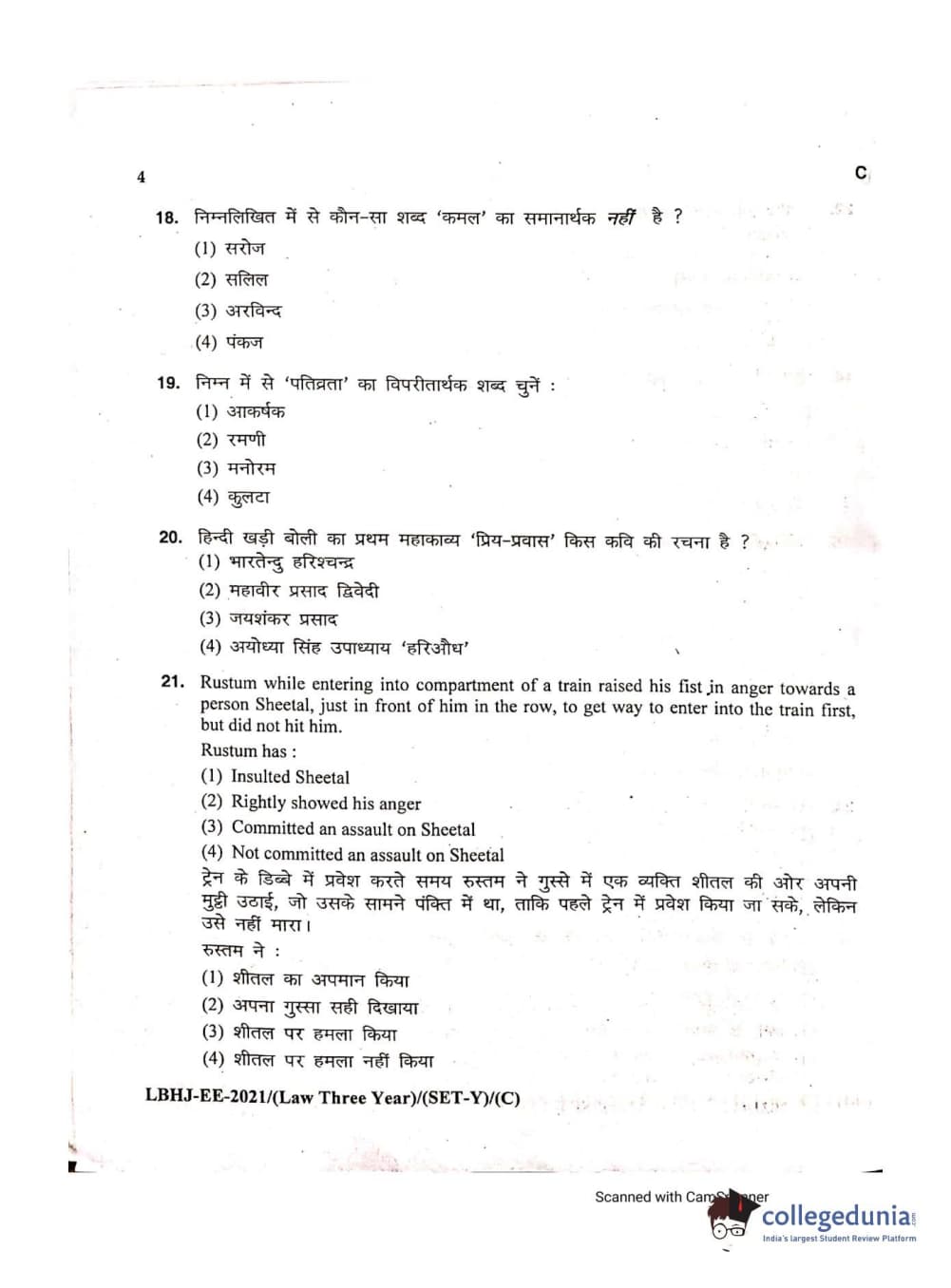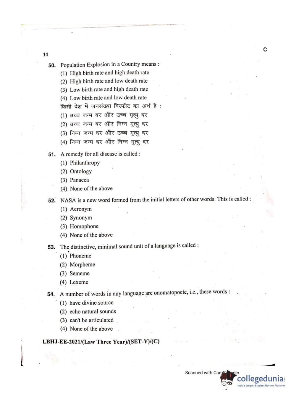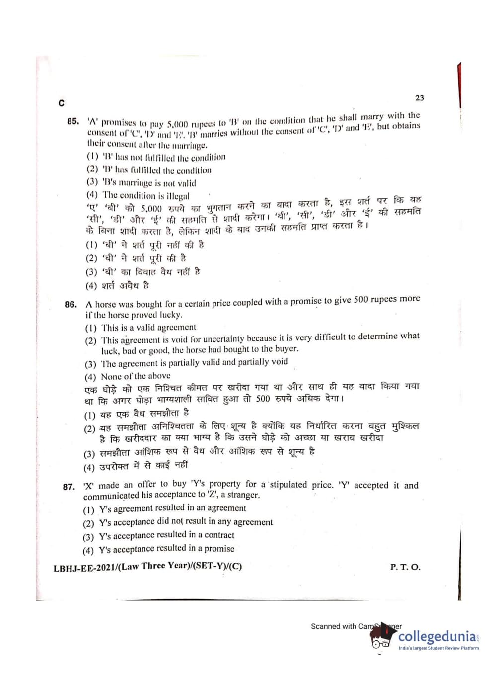 MDUCEE 2021 LL.B (Hons.)-3 Year course Set C Question Paper with Answer Key PDFs