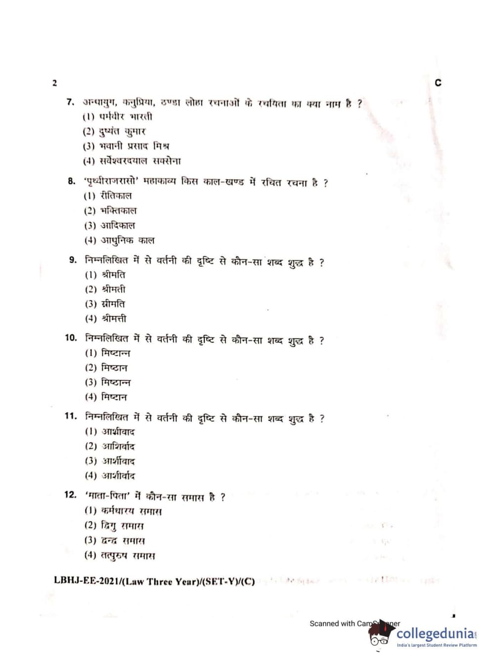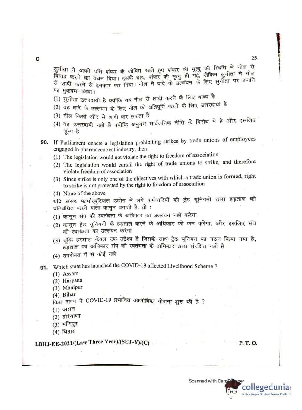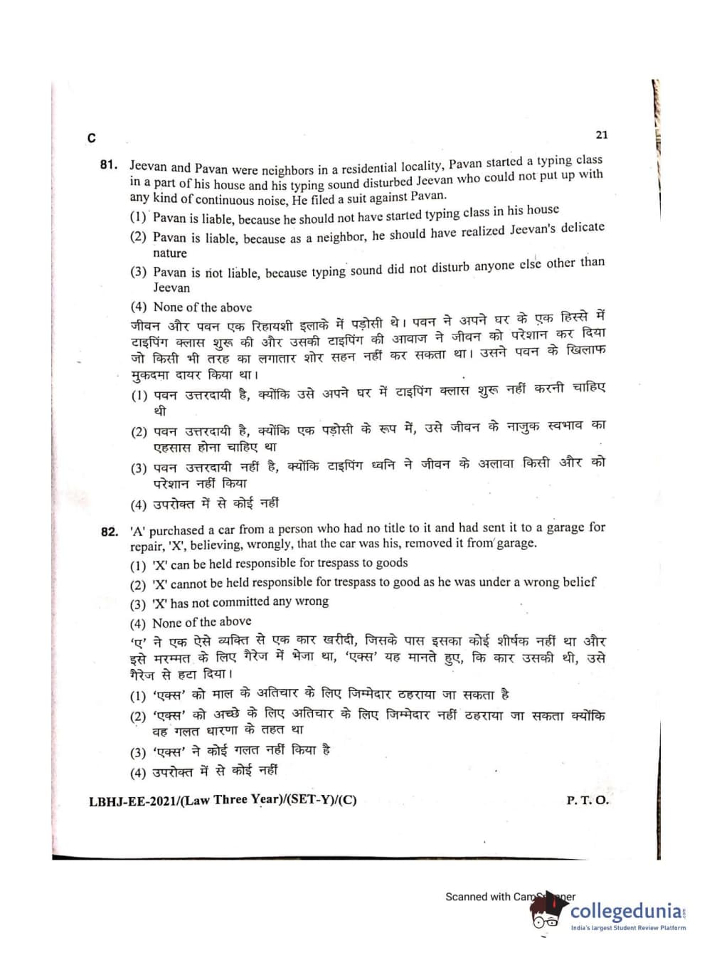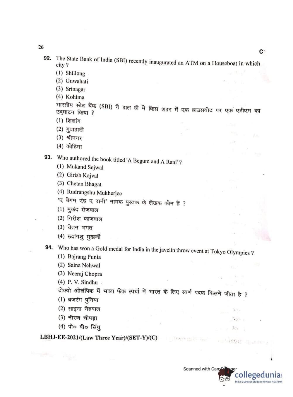 MDUCEE 2021 LL.B (Hons.)-3 Year course Set C Question Paper with Answer Key PDFs