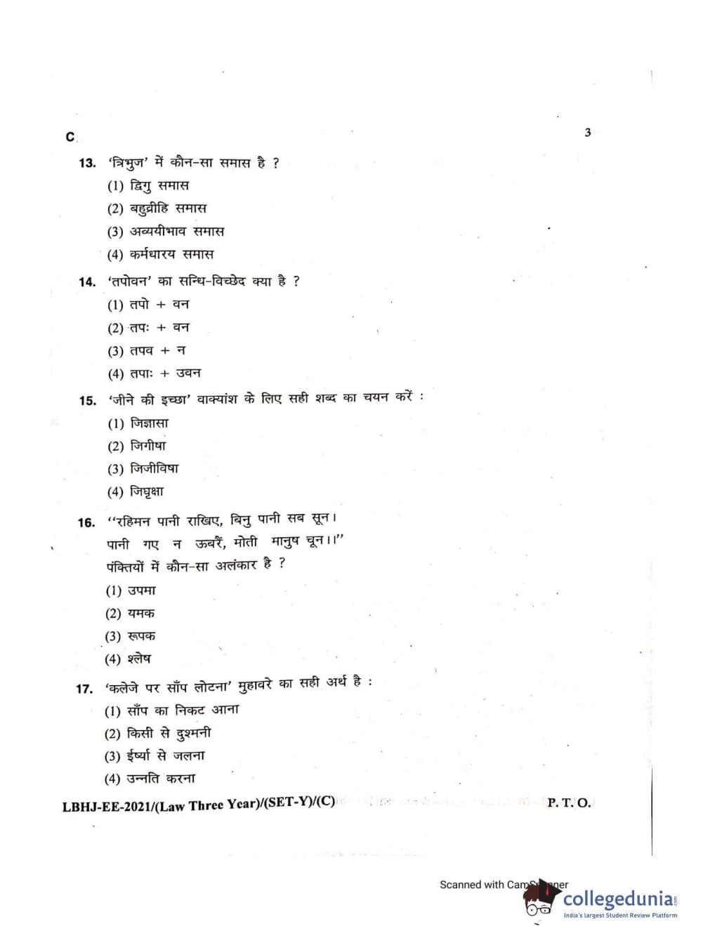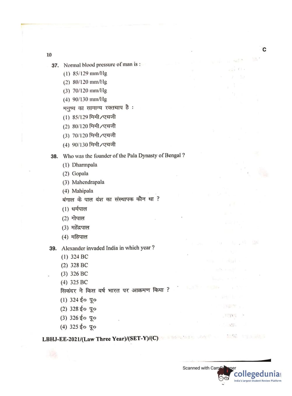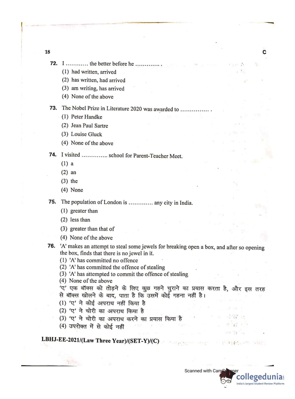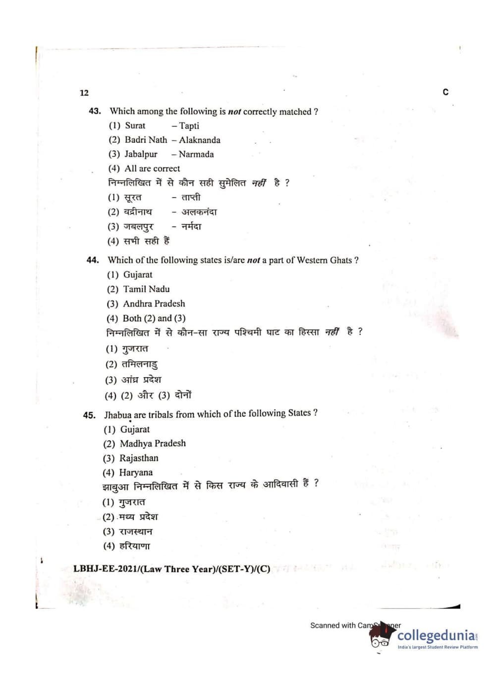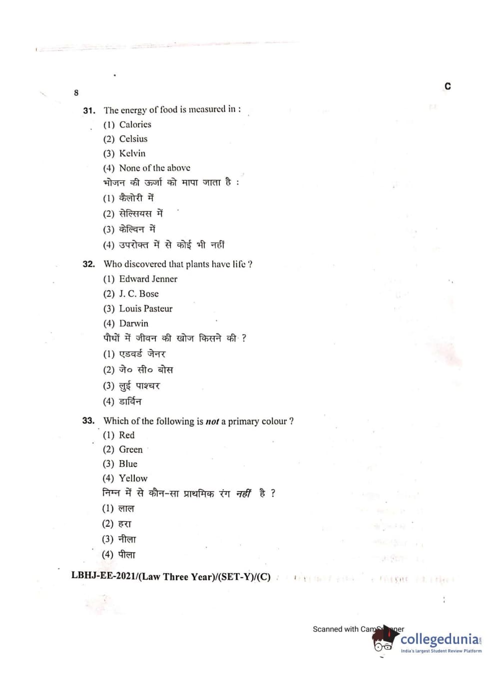 MDUCEE 2021 LL.B (Hons.)-3 Year course Set C Question Paper with Answer Key PDFs