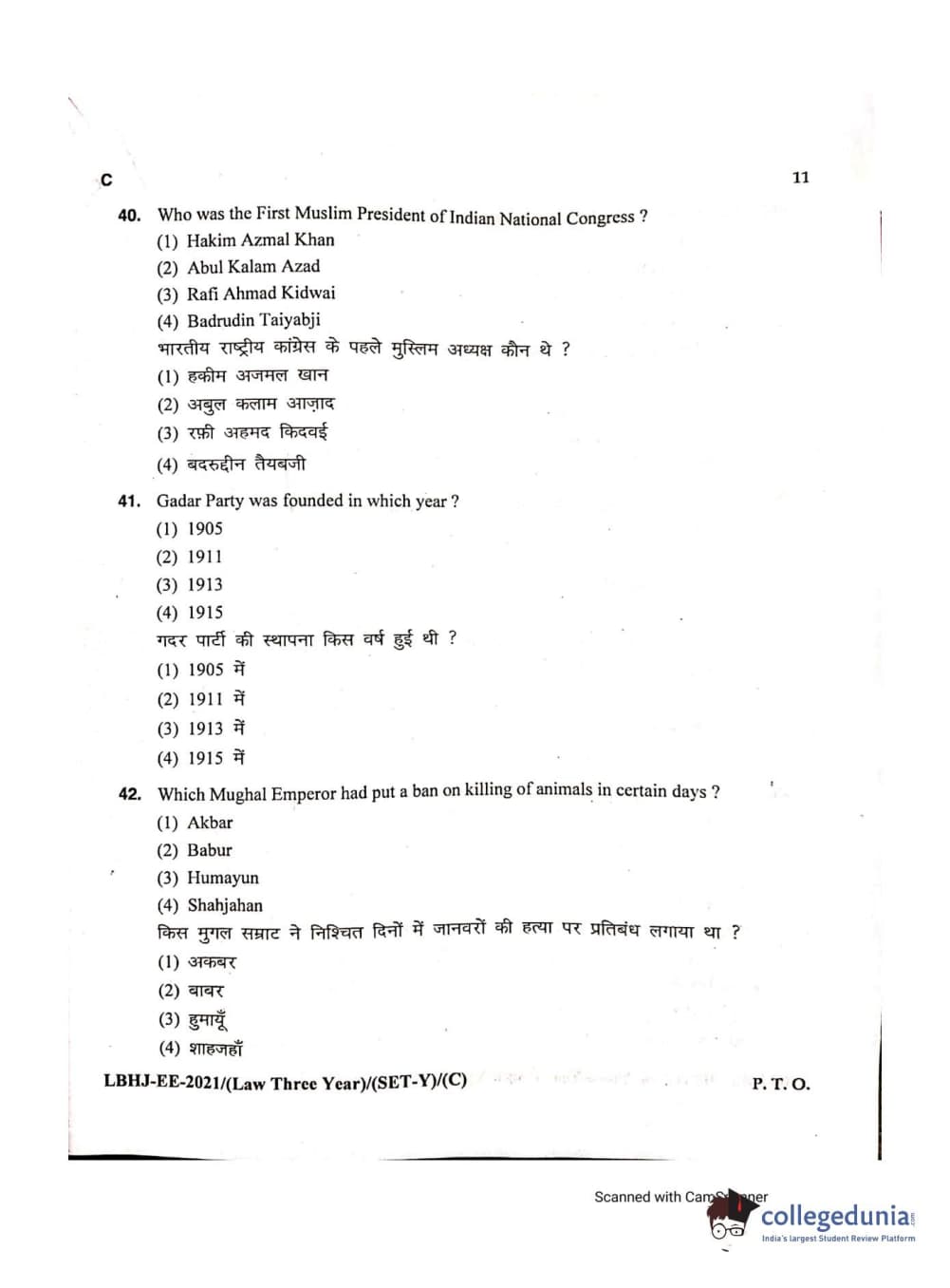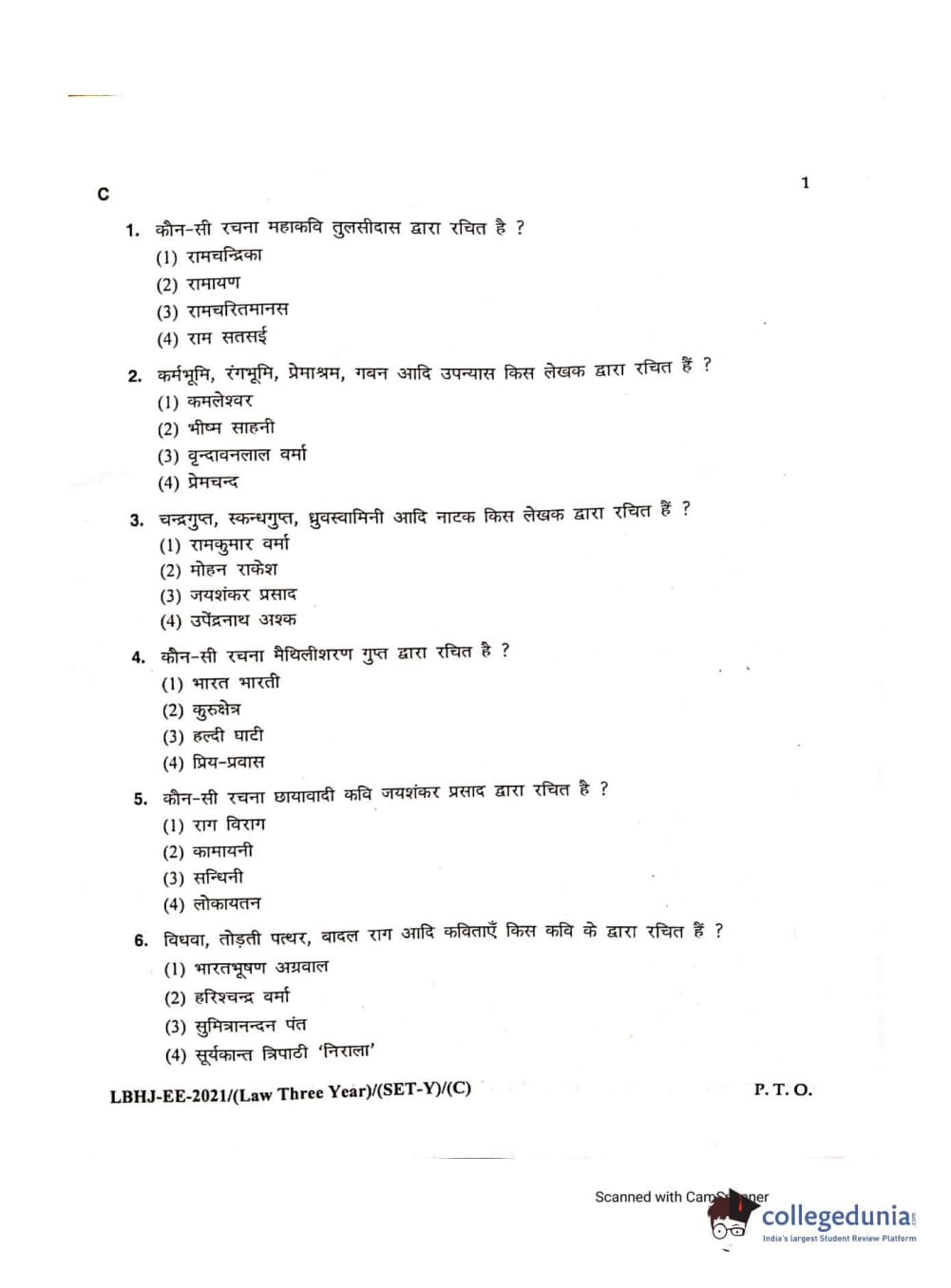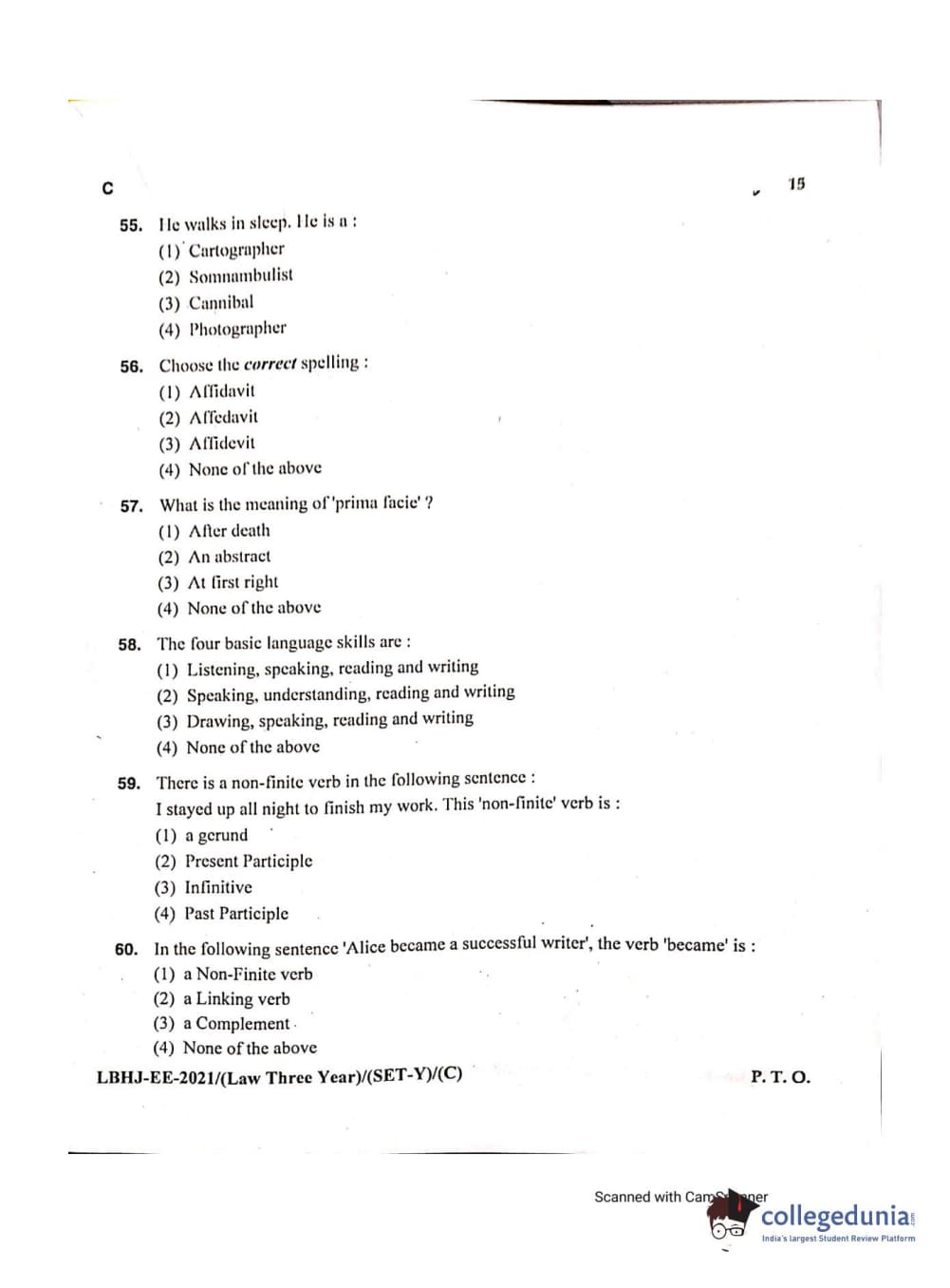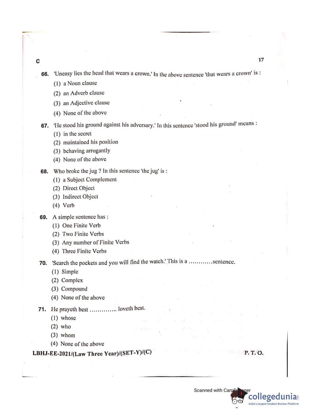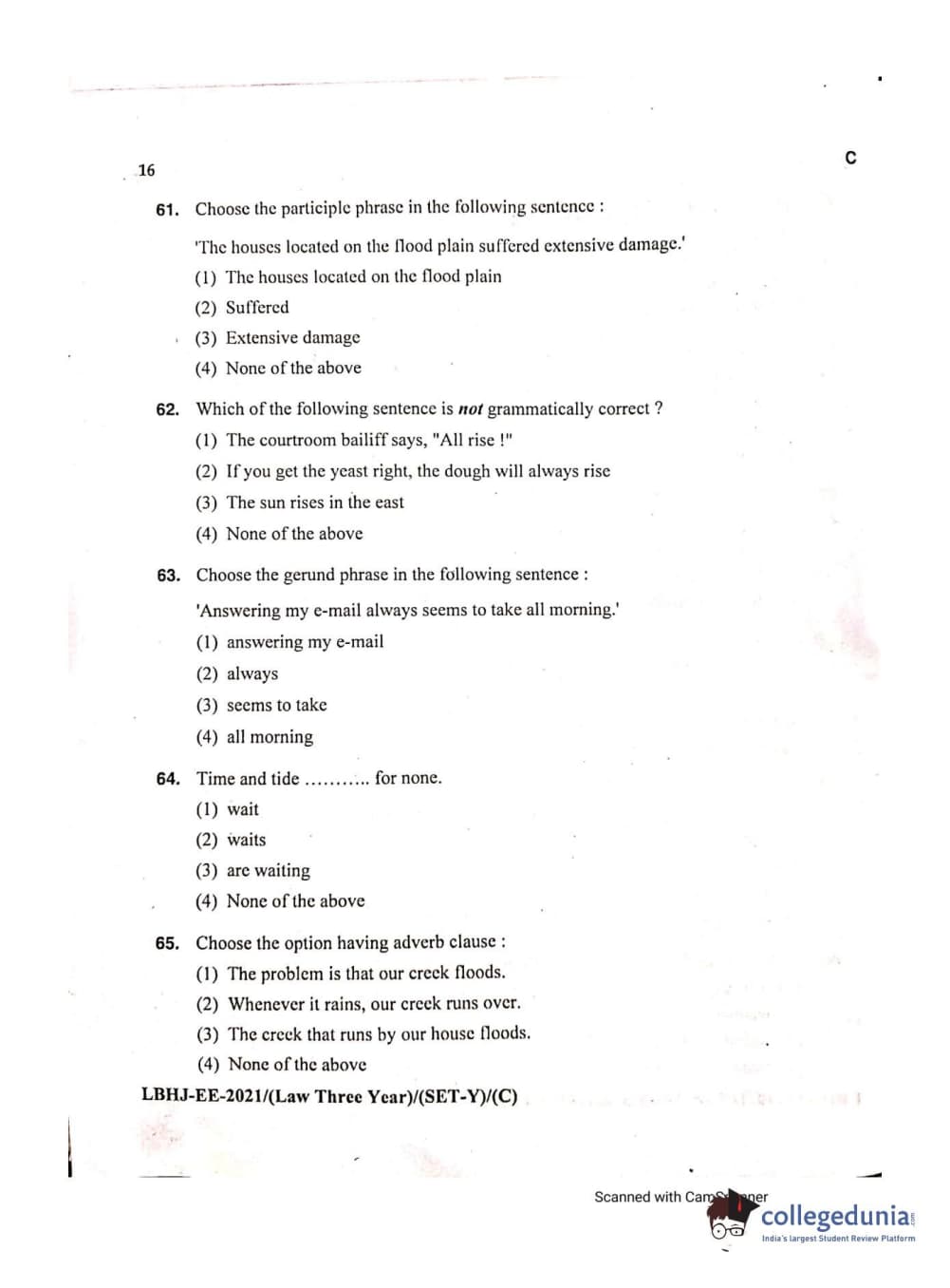 MDUCEE 2021 LL.B (Hons.)-3 Year course Set C Question Paper with Answer Key PDFs