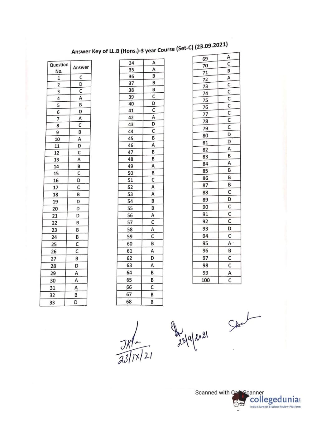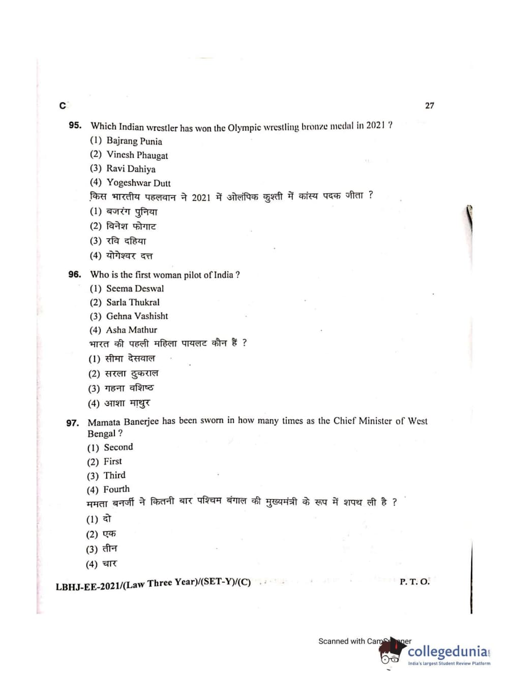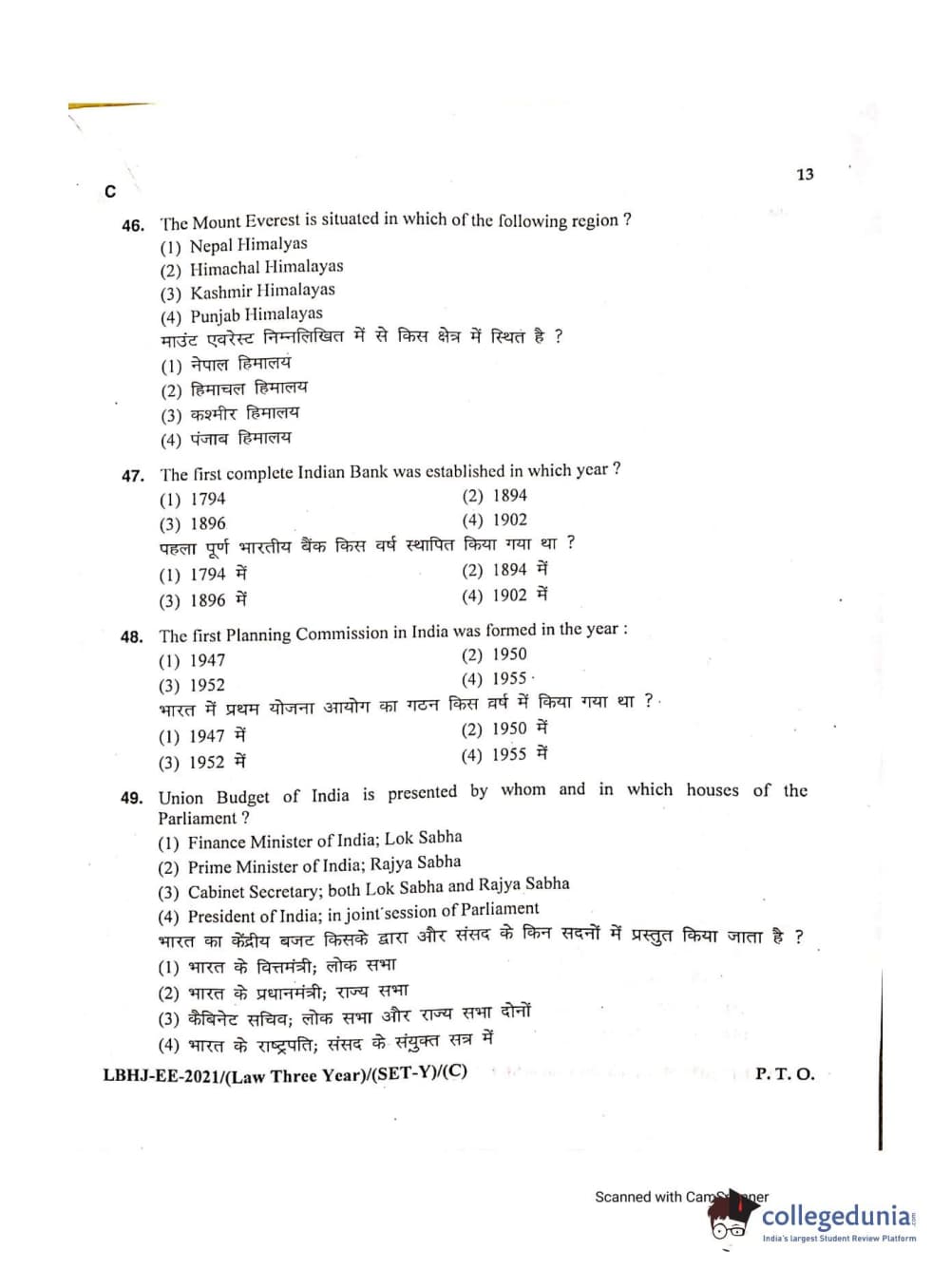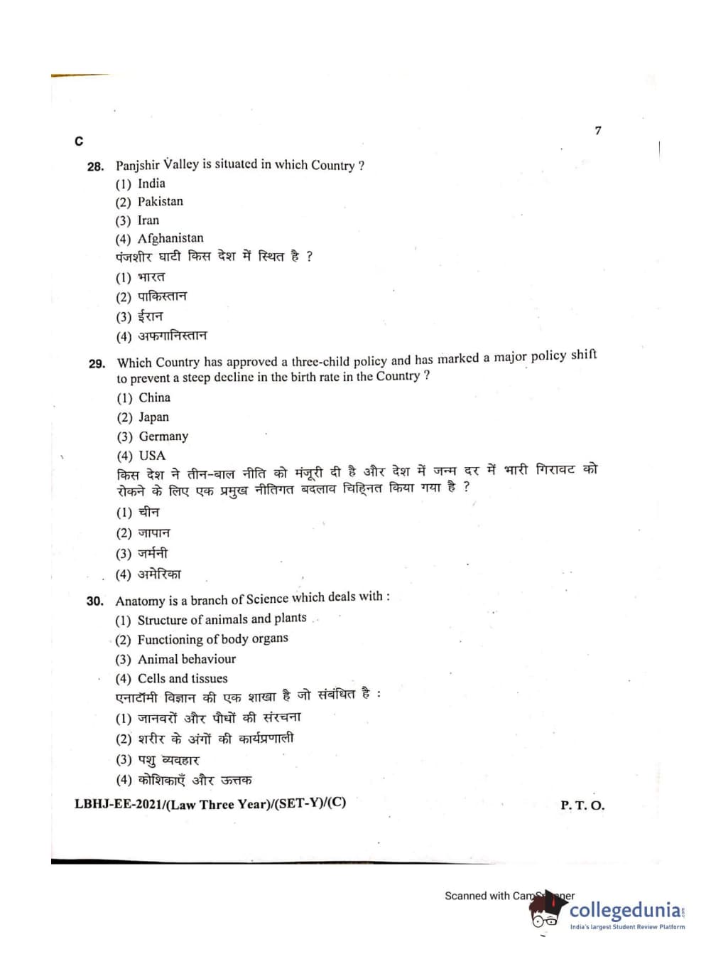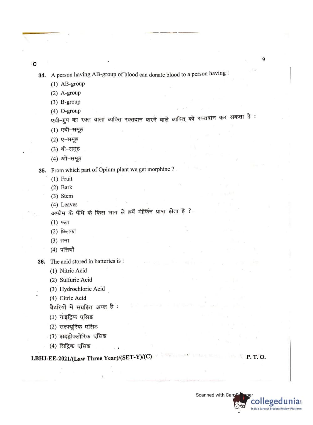 MDUCEE 2021 LL.B (Hons.)-3 Year course Set C Question Paper with Answer Key PDFs