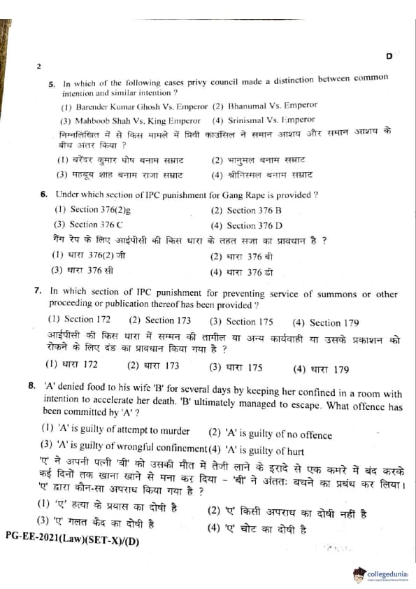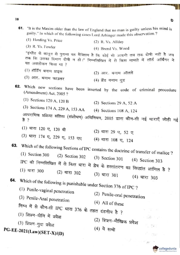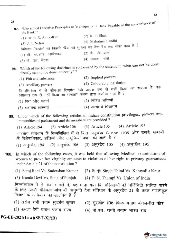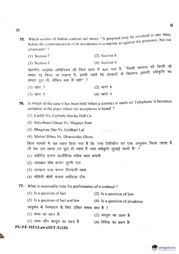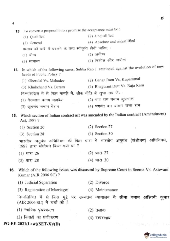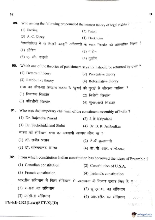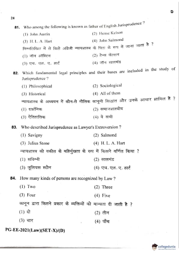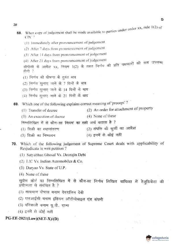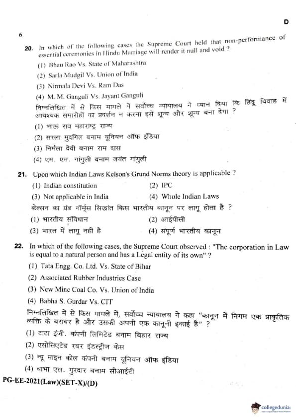 MDUCEE 2021 LLM Question Paper with Answer Key PDFs Set D