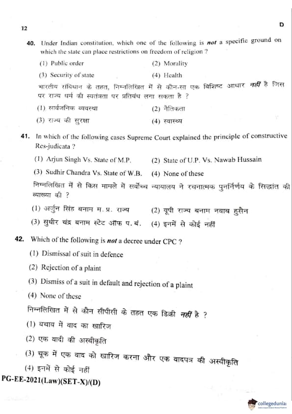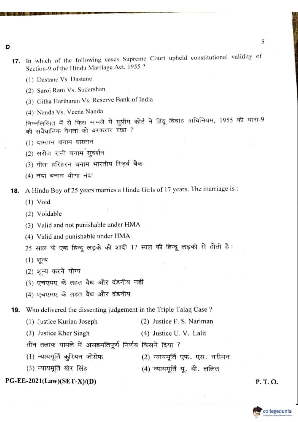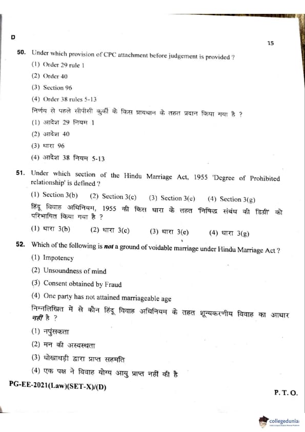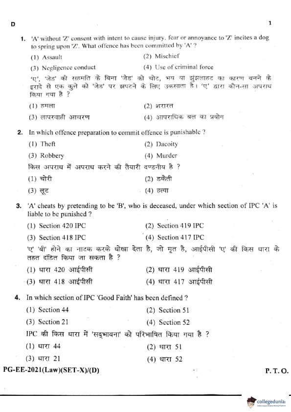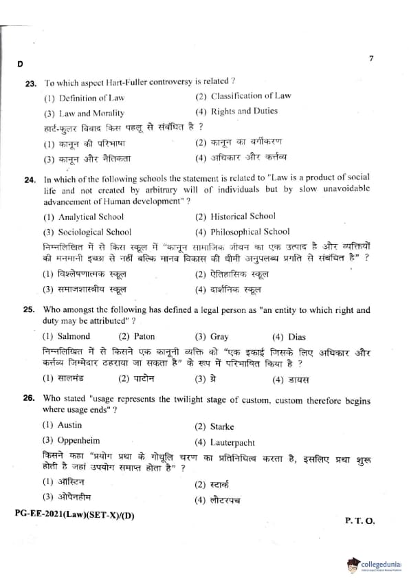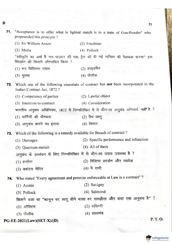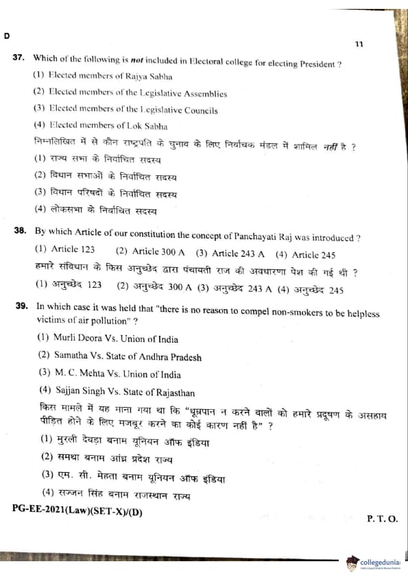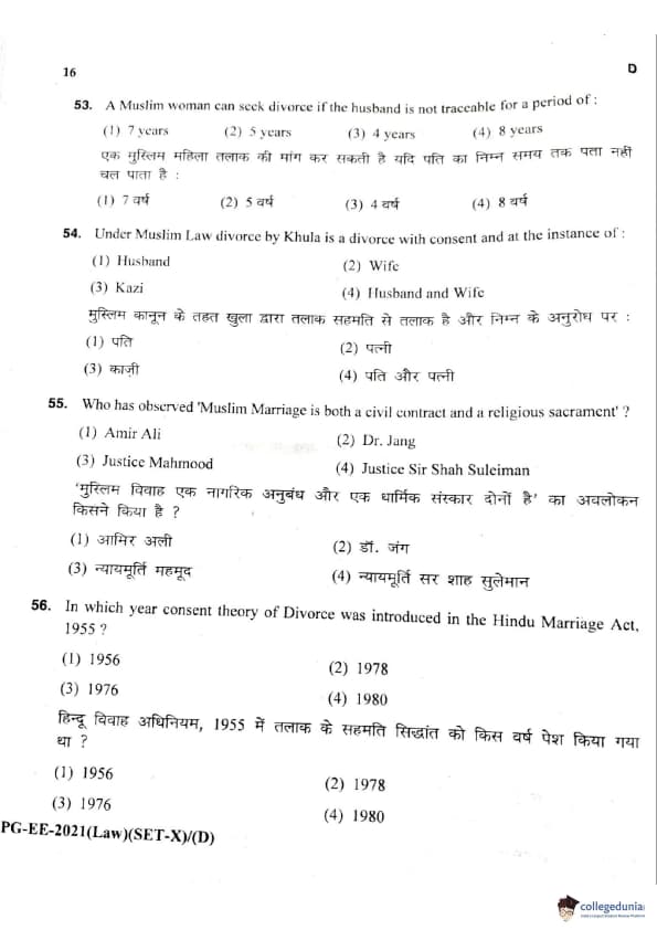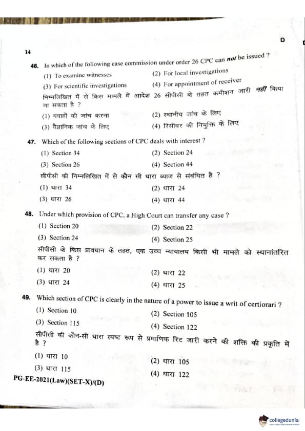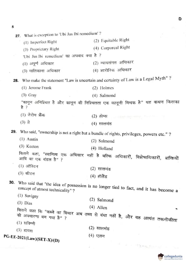 MDUCEE 2021 LLM Question Paper with Answer Key PDFs Set D