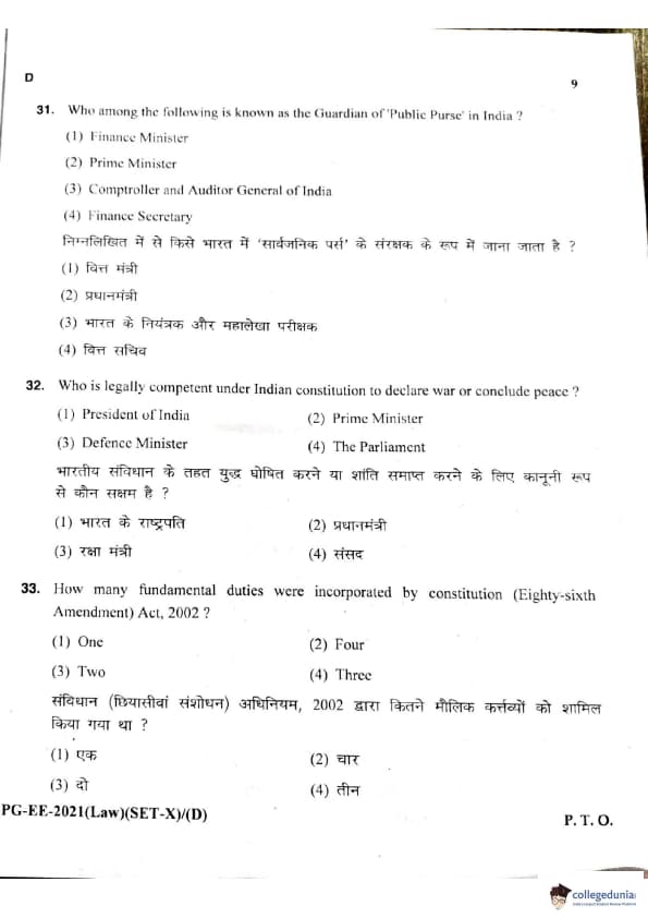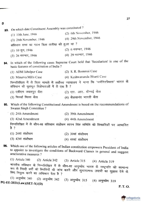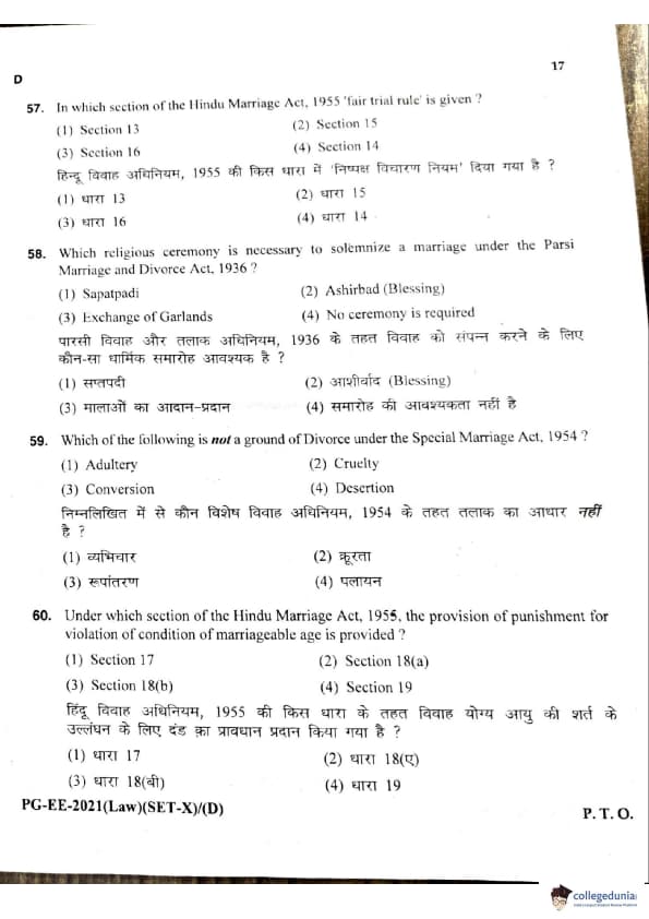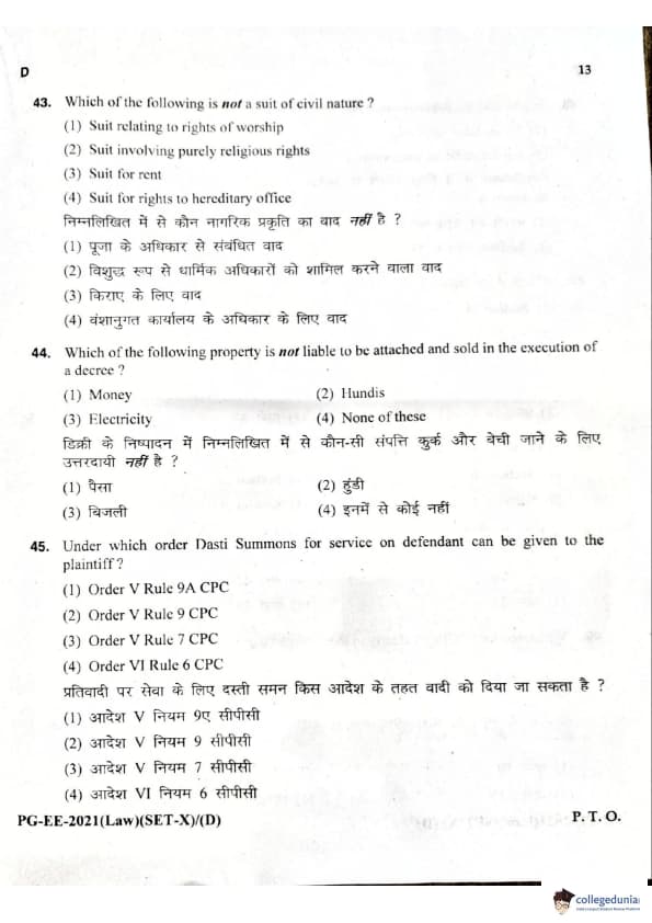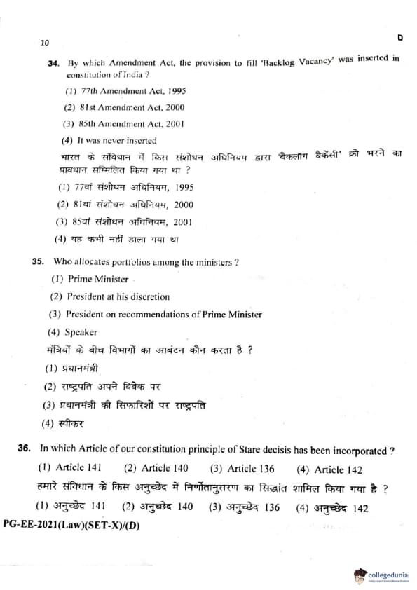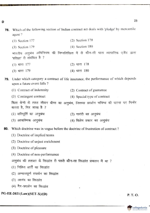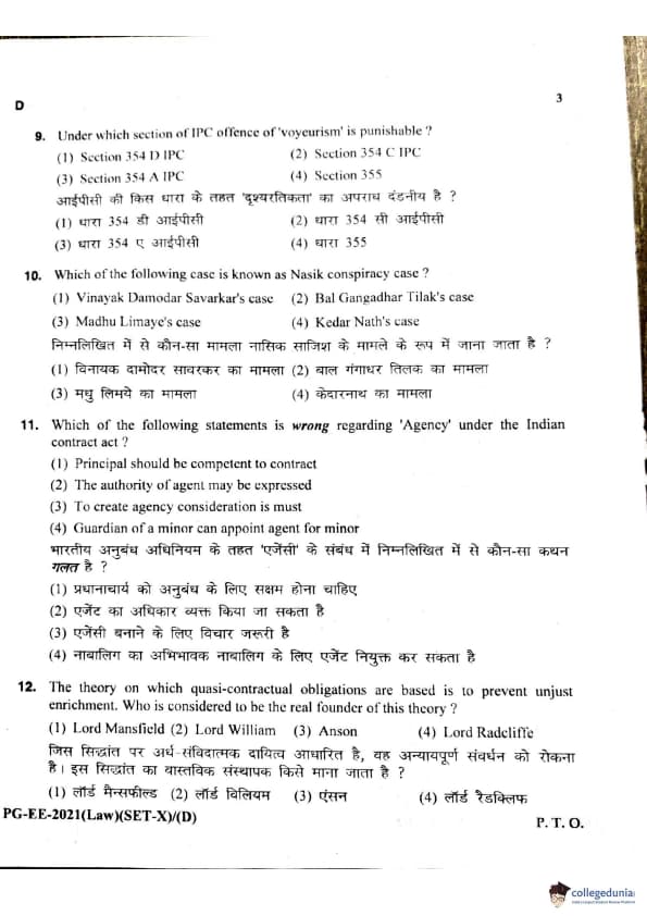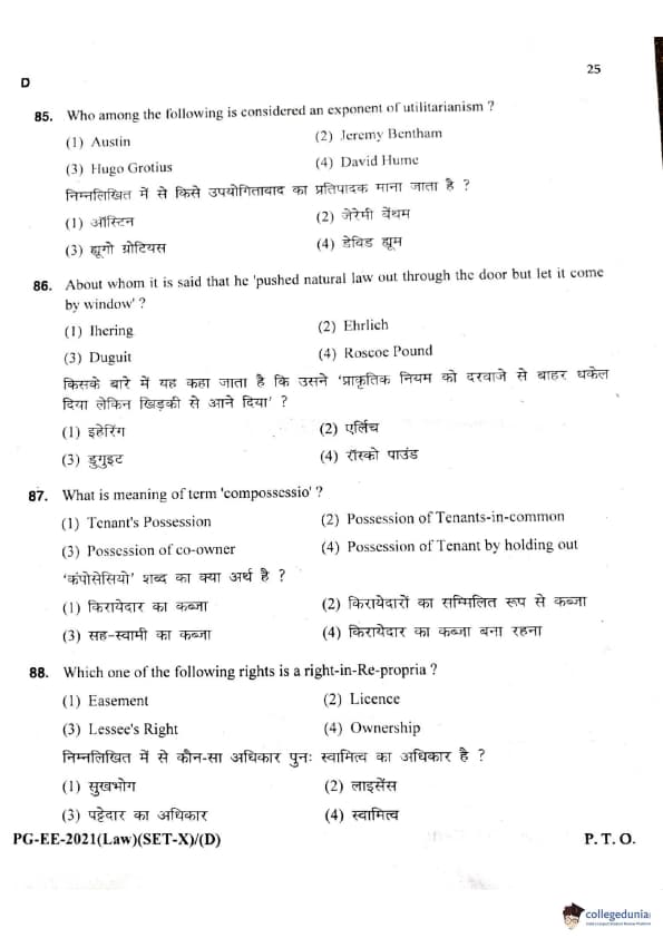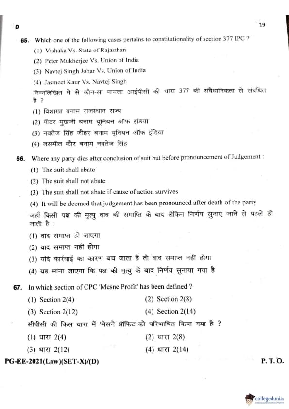 MDUCEE 2021 LLM Question Paper with Answer Key PDFs Set D