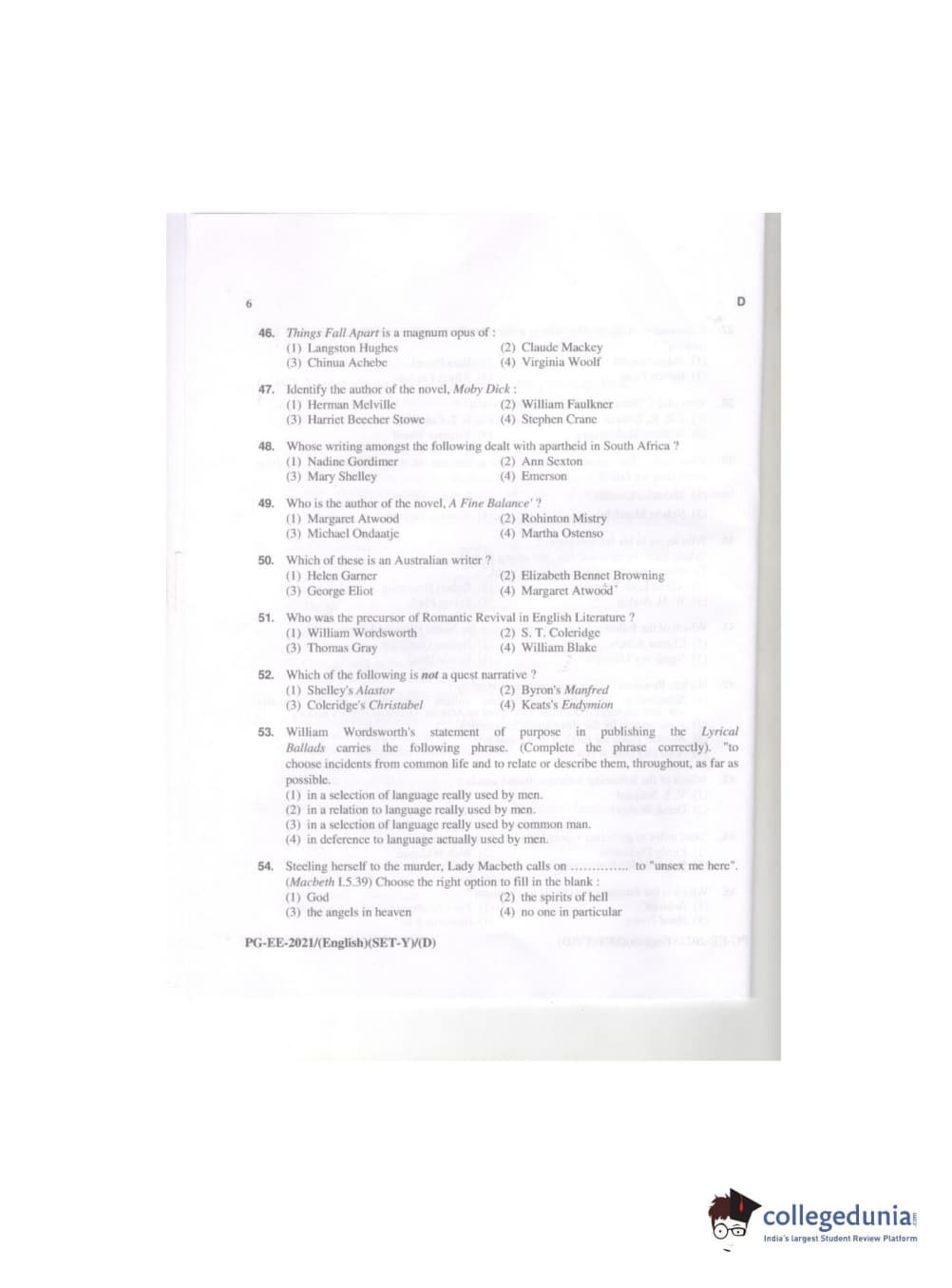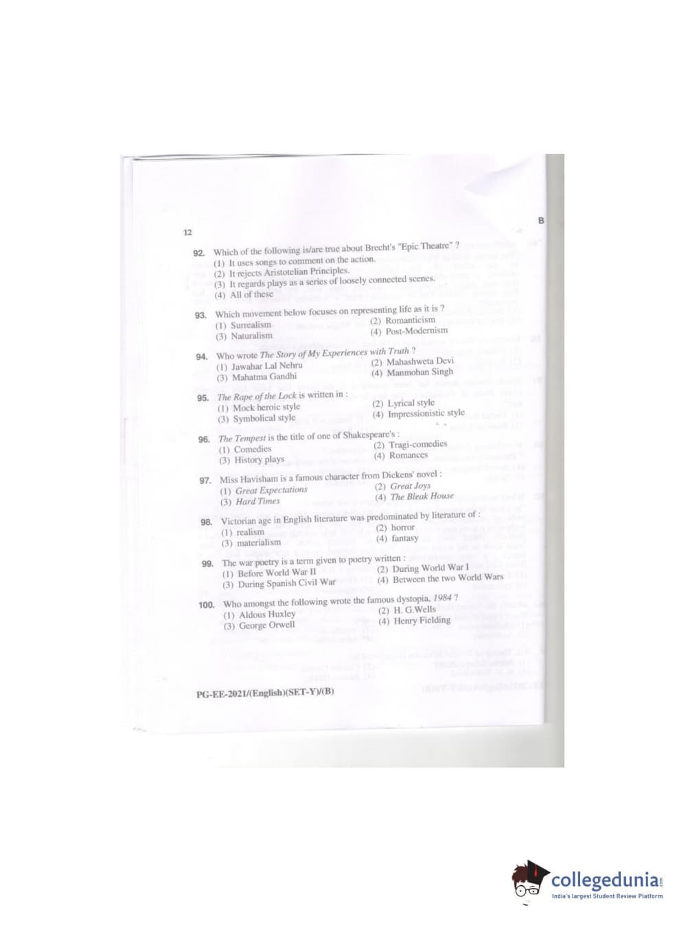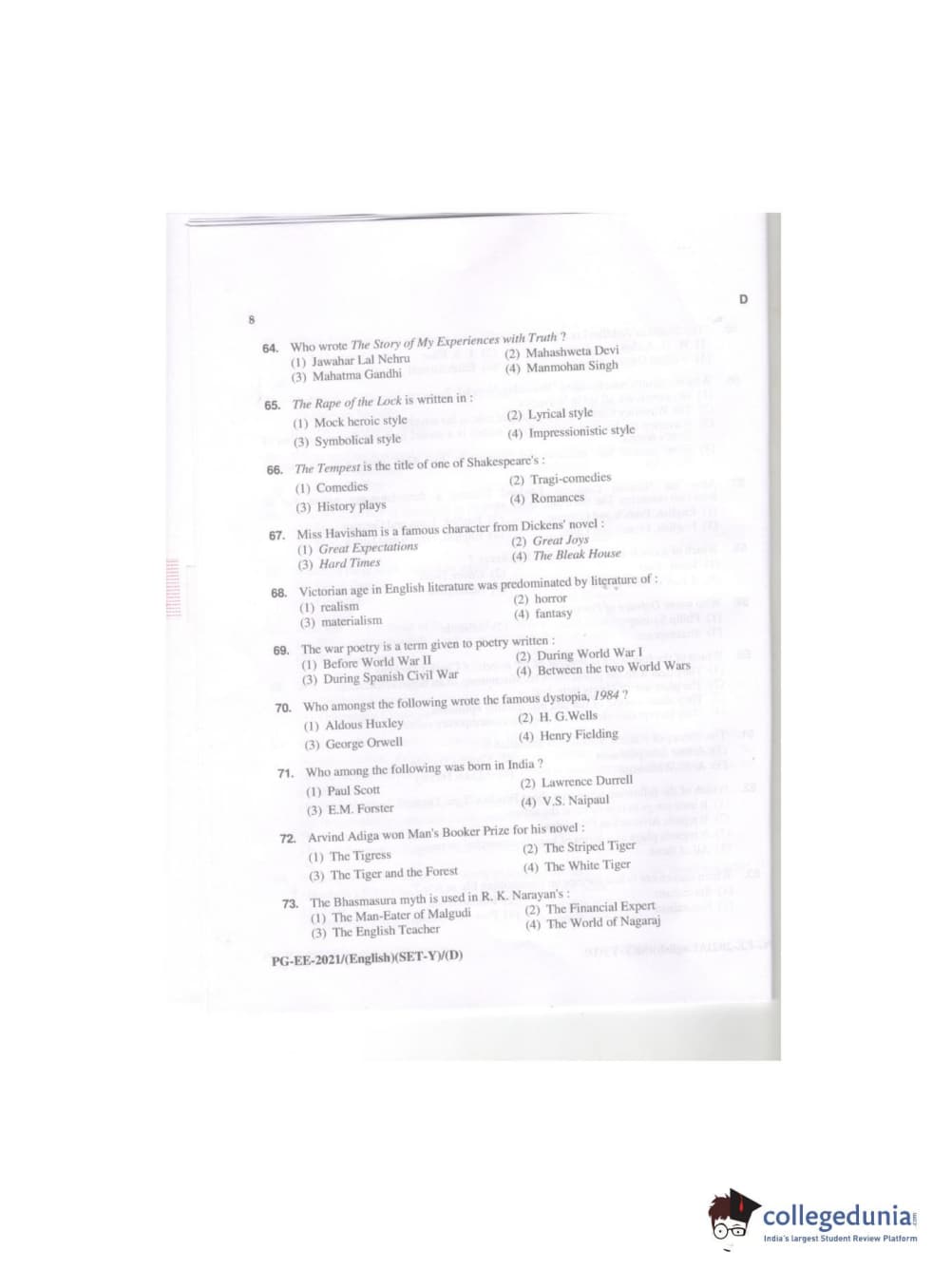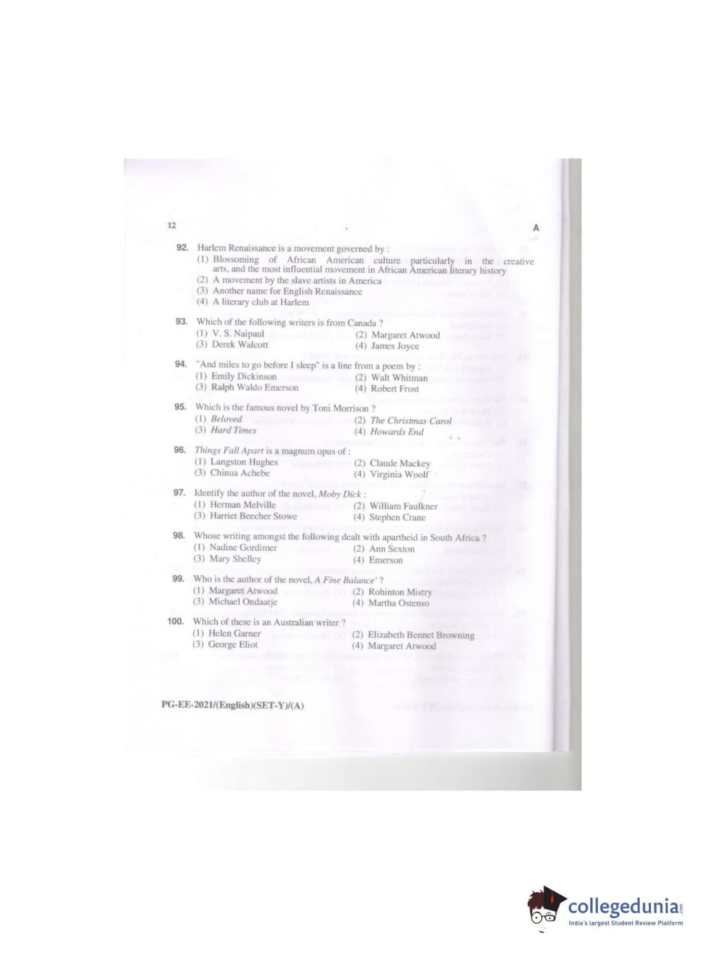 MDUCEE 2021 M.A. (English) Question paper with answer key pdf conducted on September 21, 2021 is available for download. The exam was successfully organized by Maharishi Dayanand University. The question paper comprised a total of 100 questions.