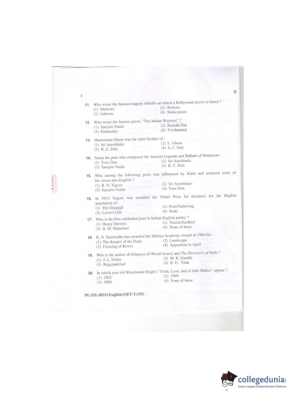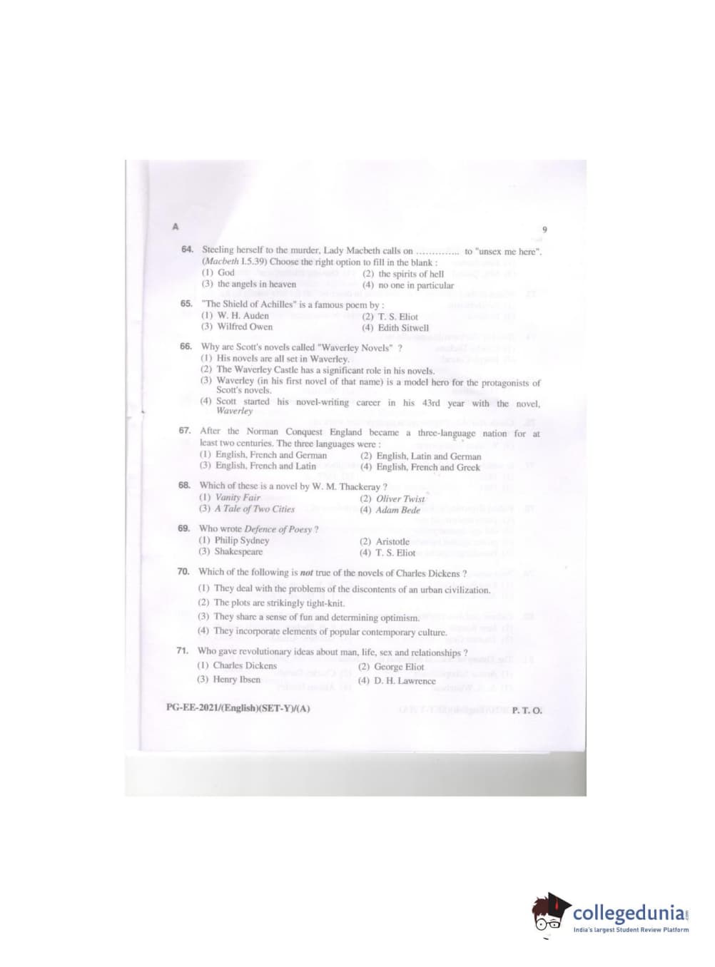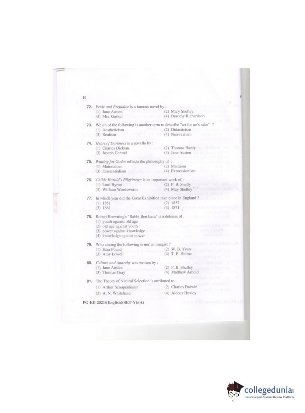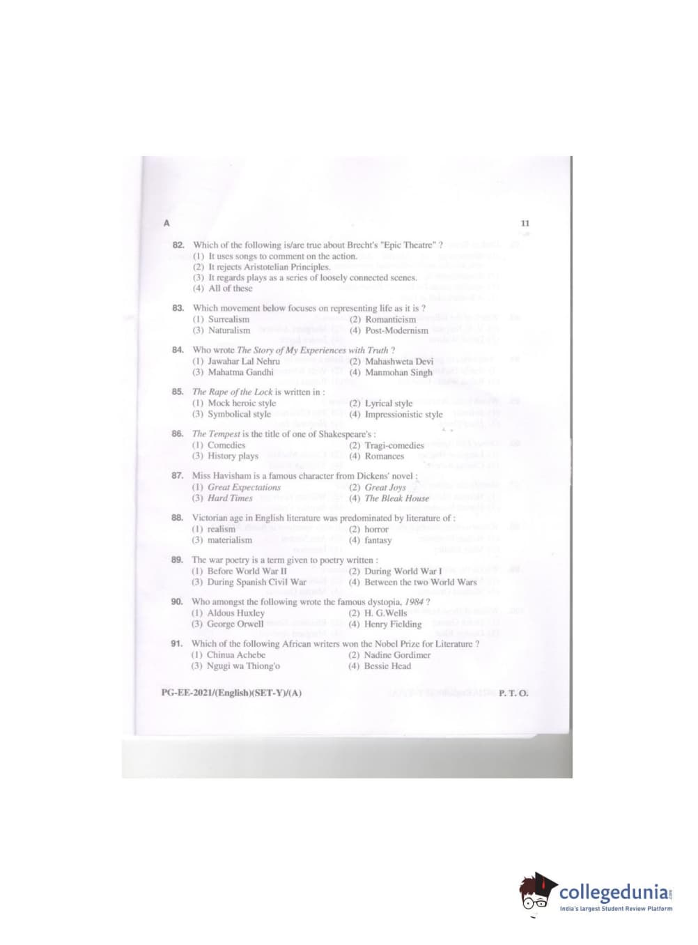 MDUCEE 2021 M.A. (English) Question paper with answer key pdf conducted on September 21, 2021 is available for download. The exam was successfully organized by Maharishi Dayanand University. The question paper comprised a total of 100 questions.