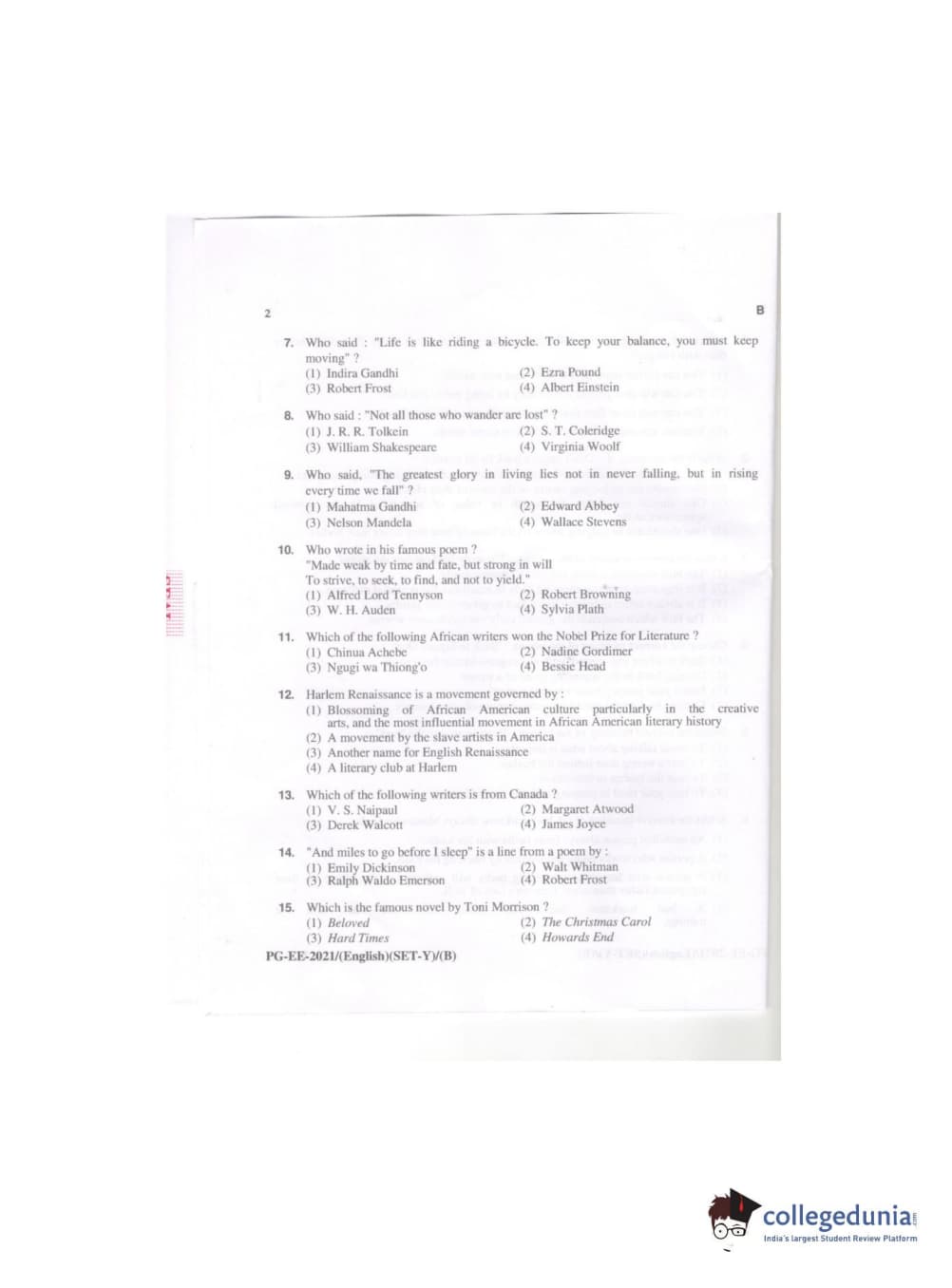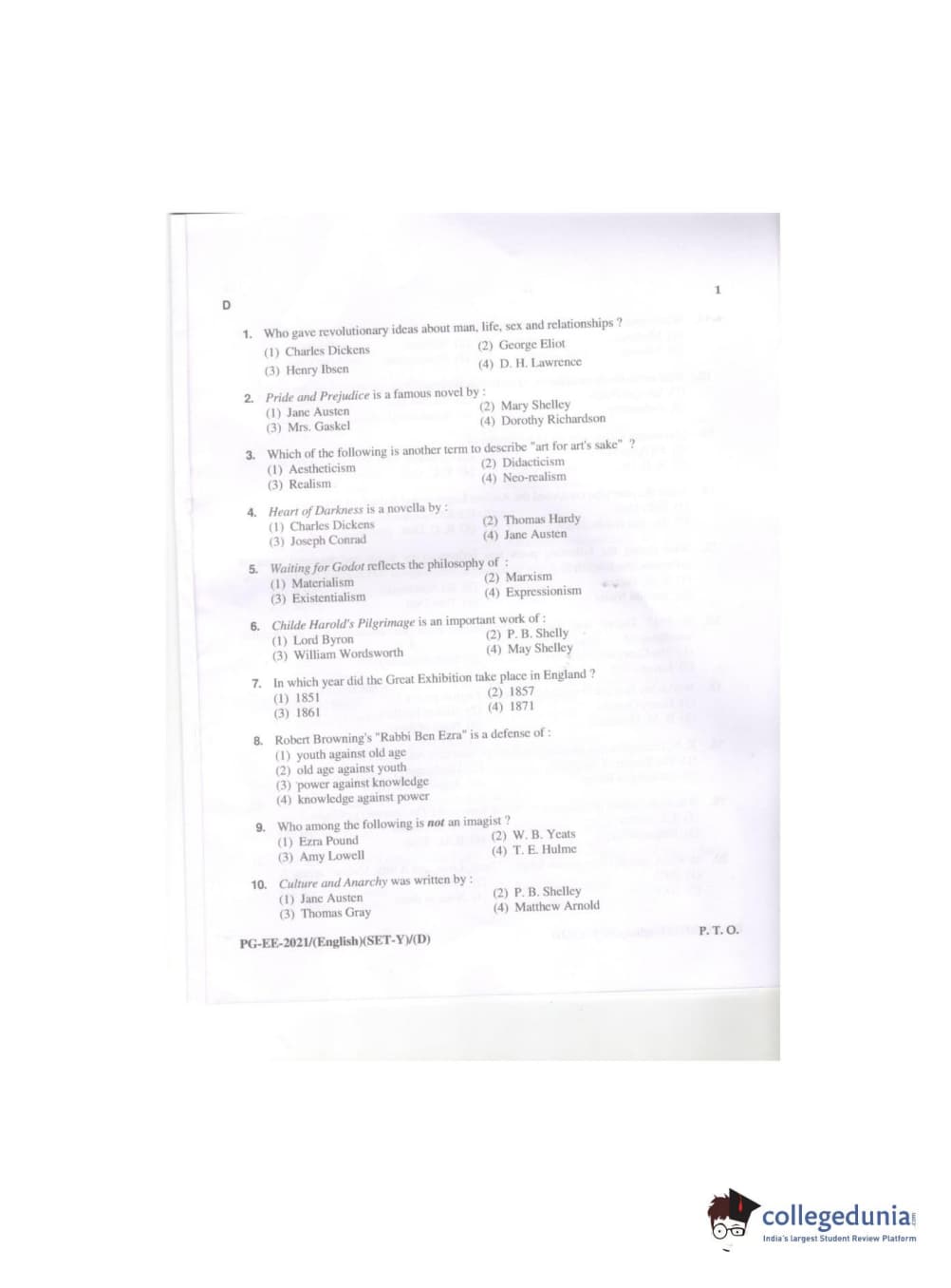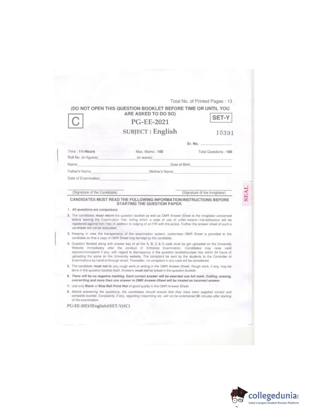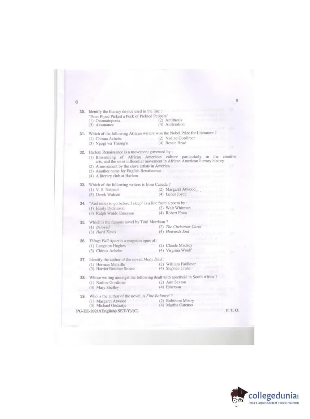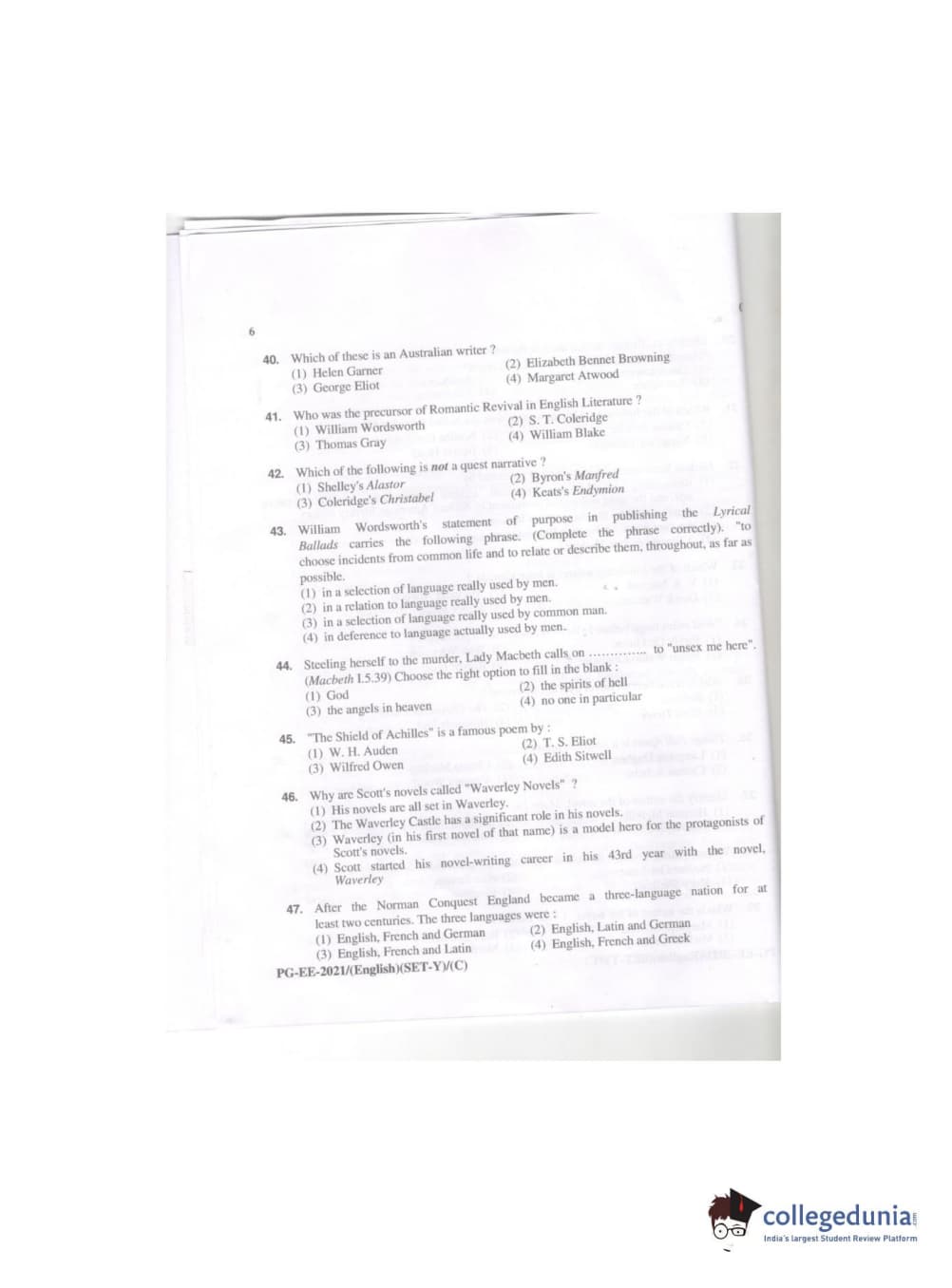 MDUCEE 2021 M.A. (English) Question paper with answer key pdf conducted on September 21, 2021 is available for download. The exam was successfully organized by Maharishi Dayanand University. The question paper comprised a total of 100 questions.