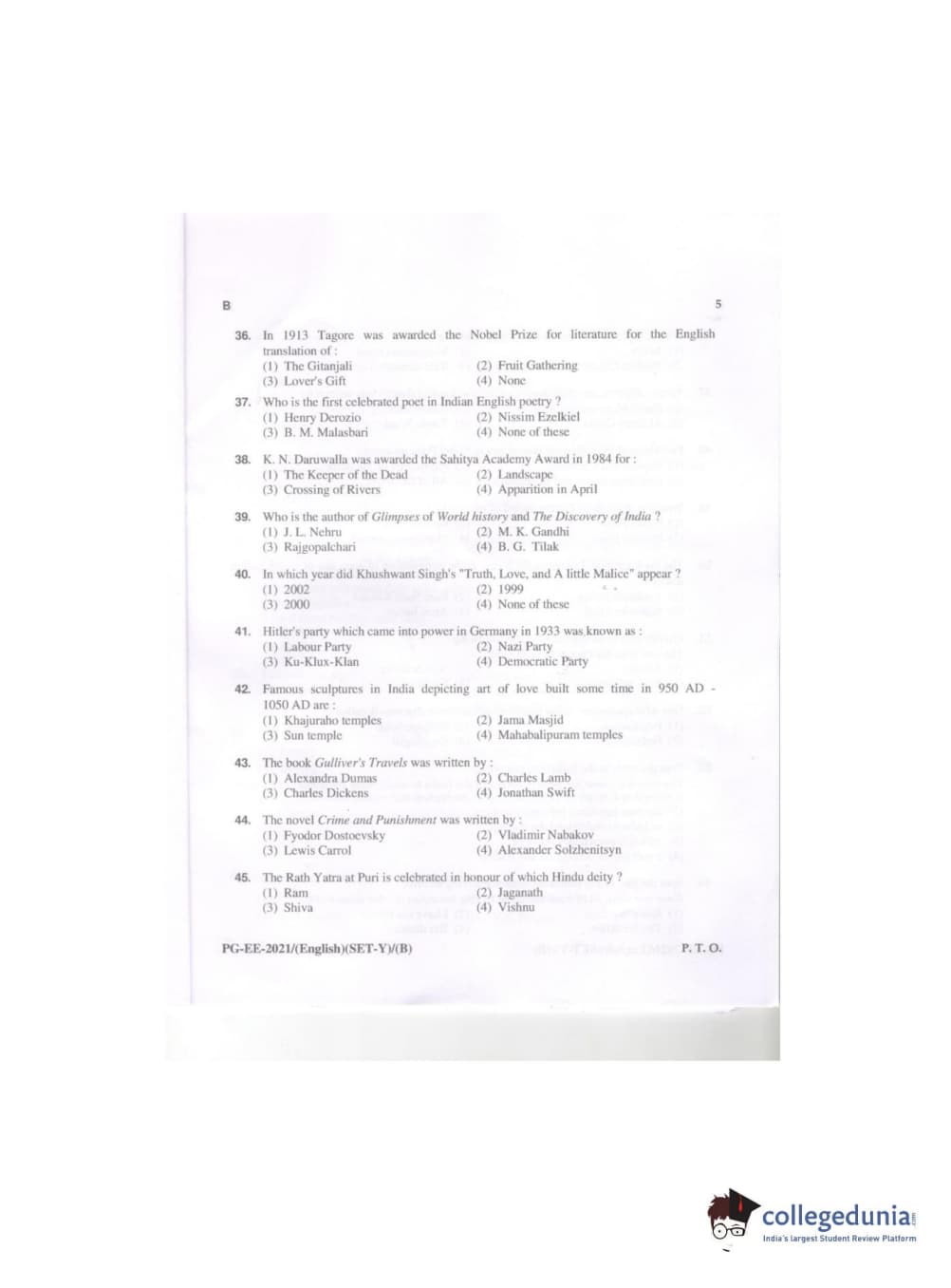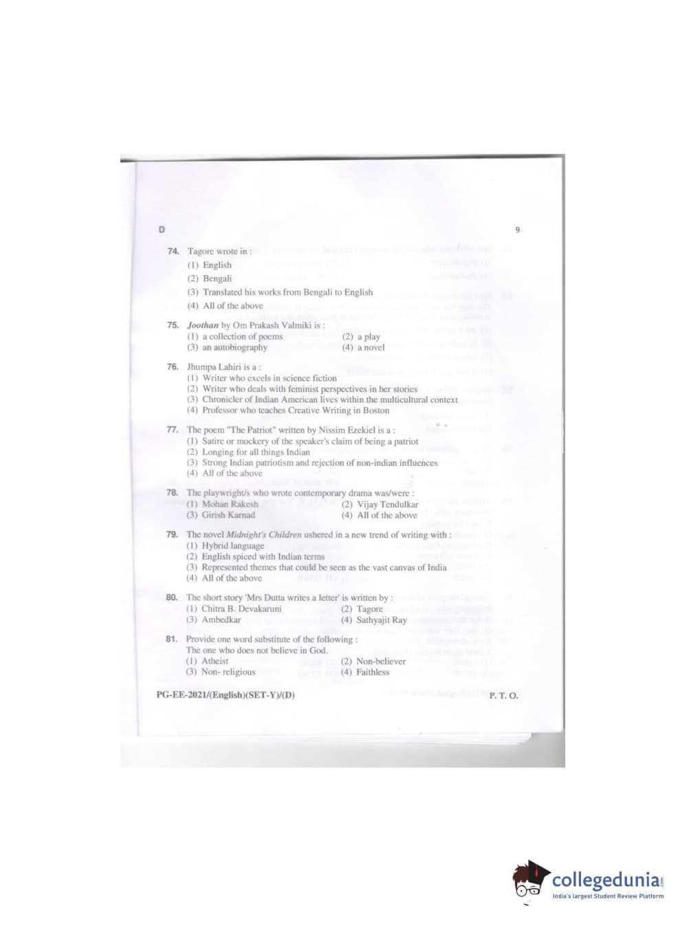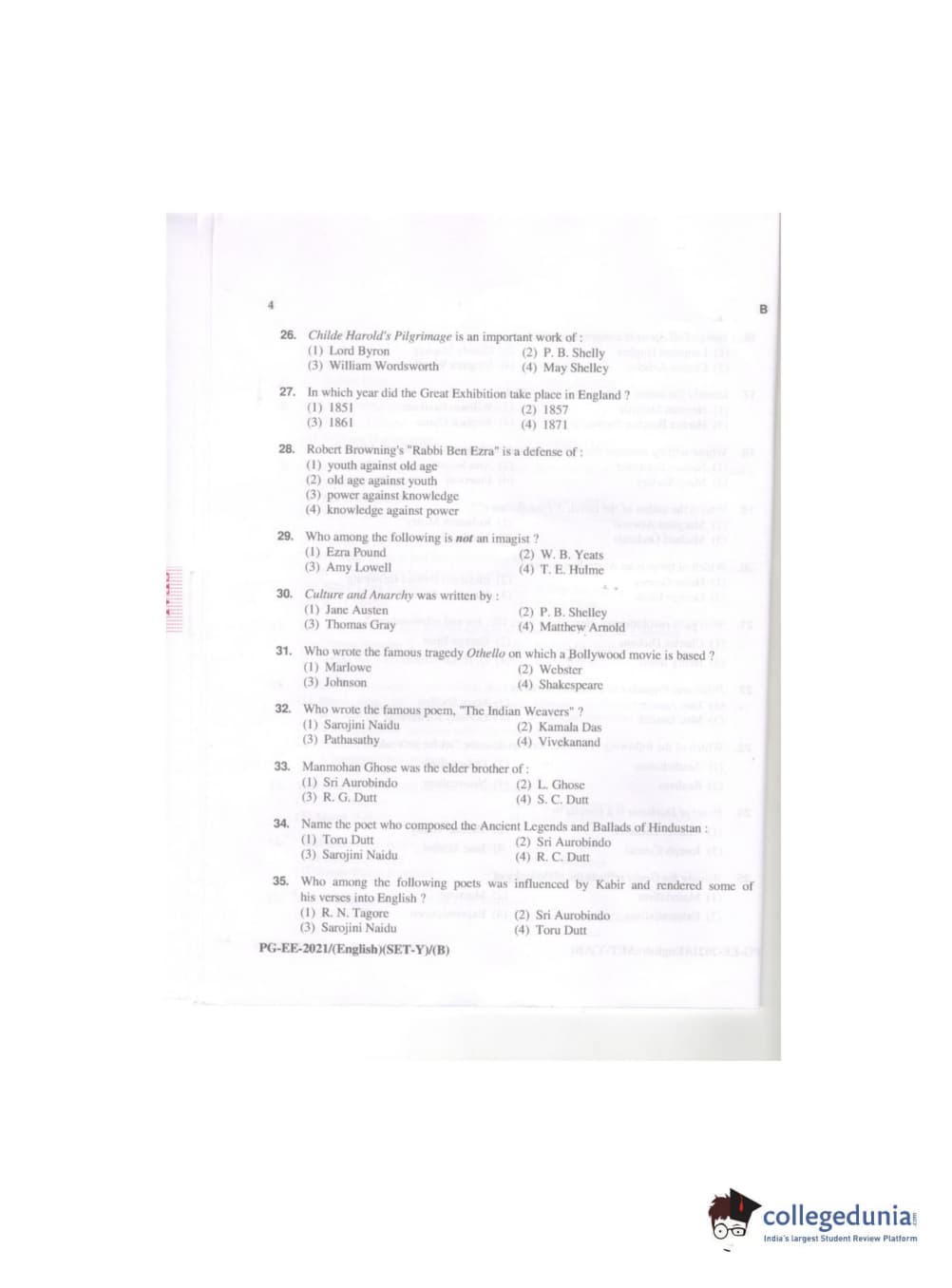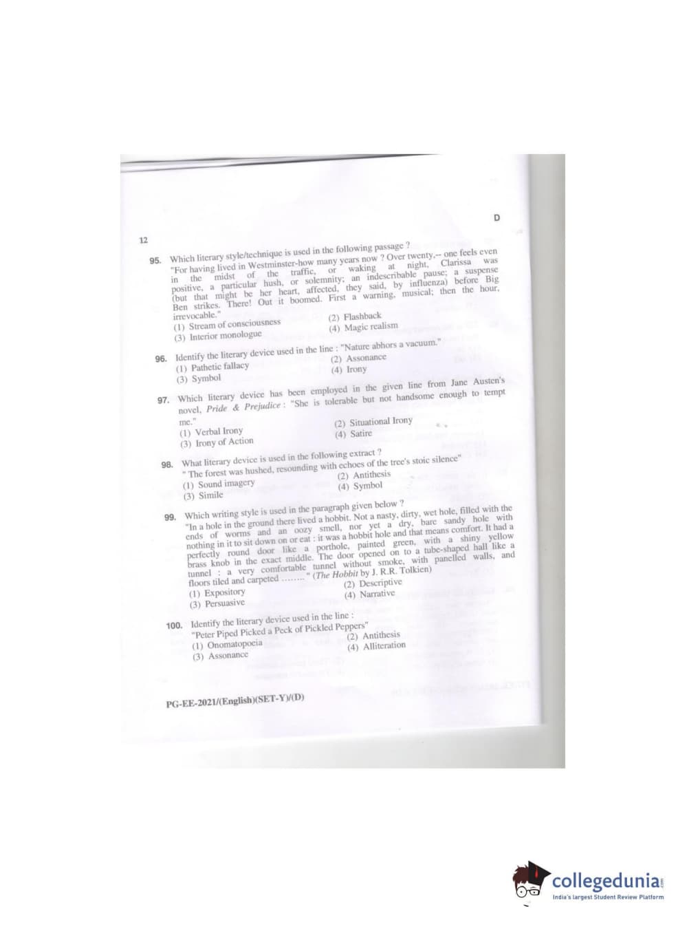 MDUCEE 2021 M.A. (English) Question paper with answer key pdf conducted on September 21, 2021 is available for download. The exam was successfully organized by Maharishi Dayanand University. The question paper comprised a total of 100 questions.