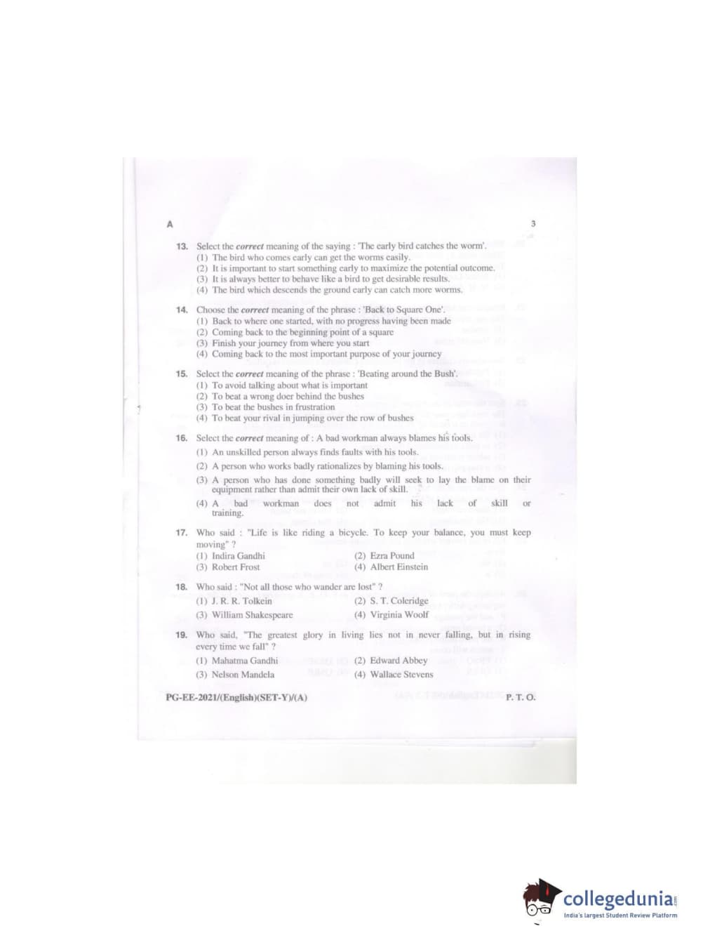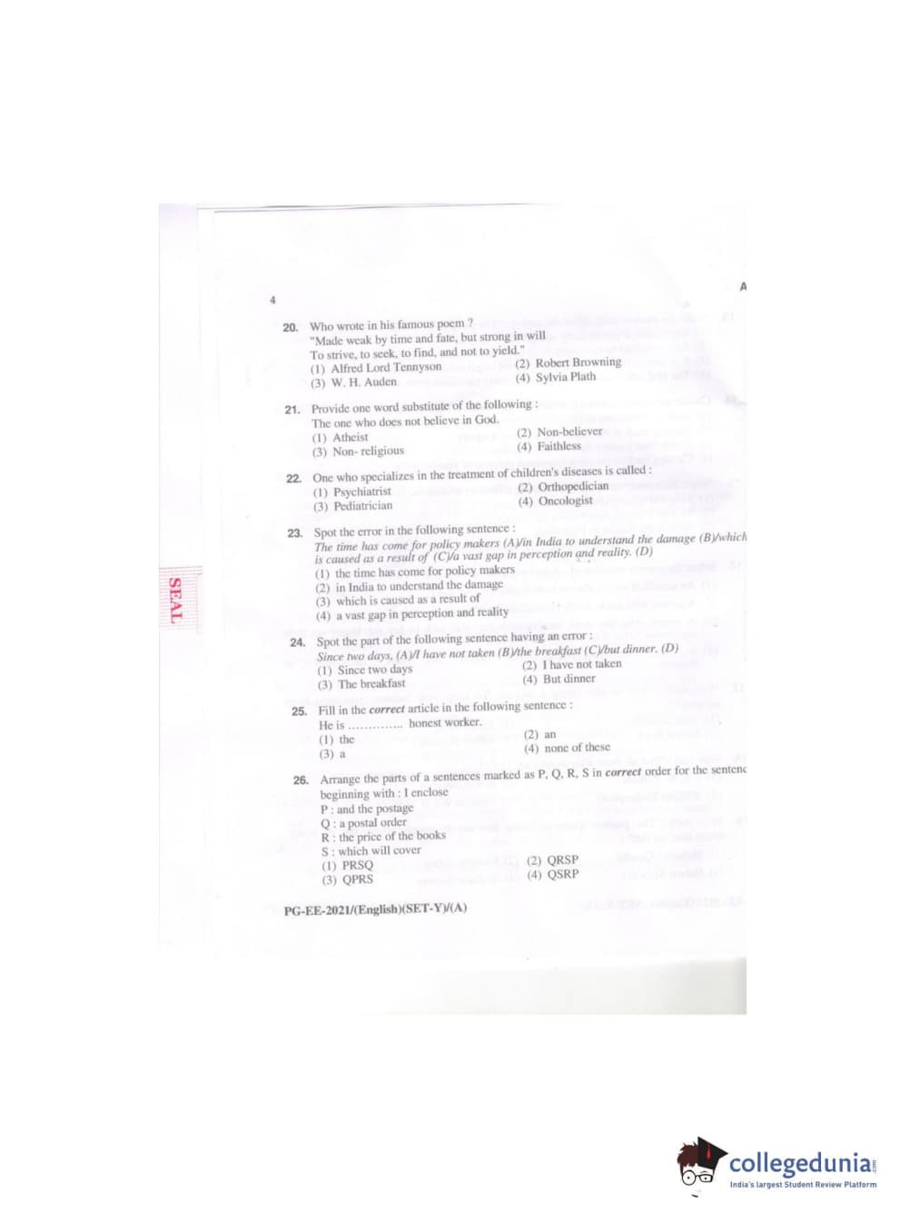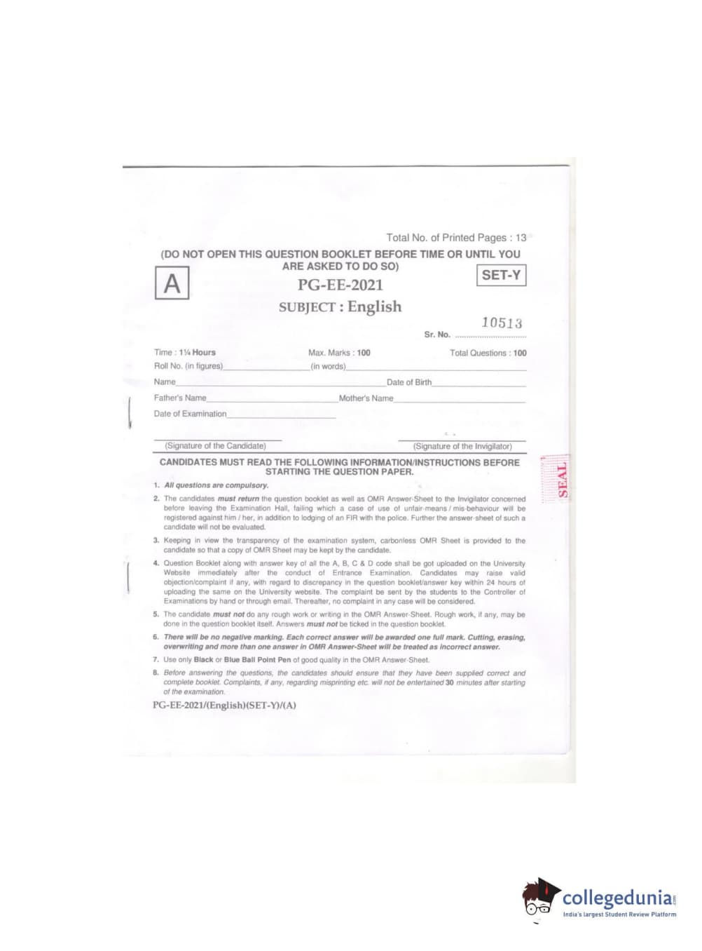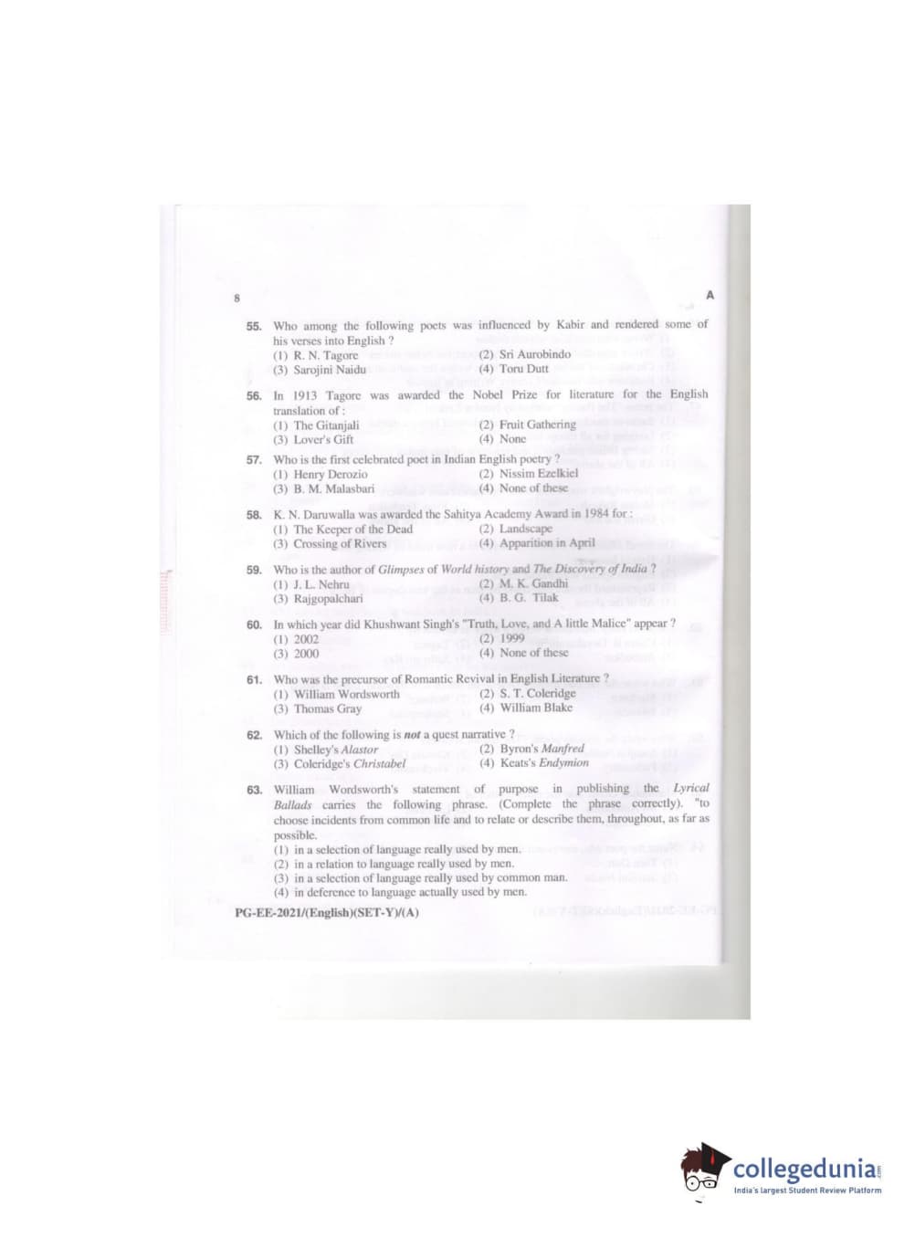 MDUCEE 2021 M.A. (English) Question paper with answer key pdf conducted on September 21, 2021 is available for download. The exam was successfully organized by Maharishi Dayanand University. The question paper comprised a total of 100 questions.