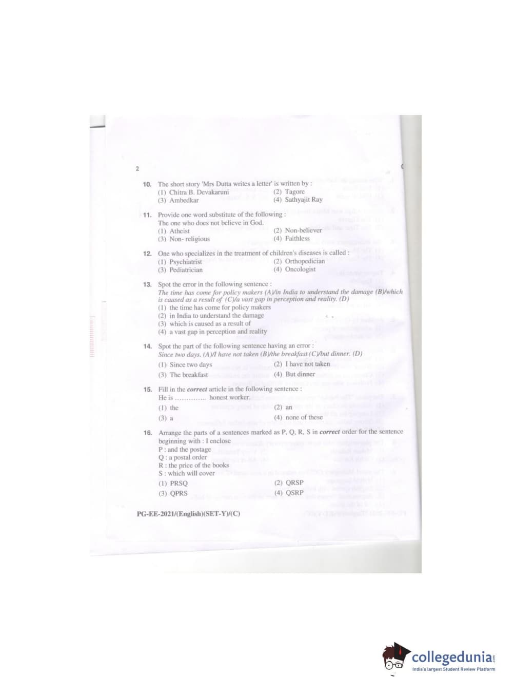 | MDUCEE 2021 M.A. (English) Question Paper PDF | MDUCEE 2021 M.A. (English) Answer Key PDF |