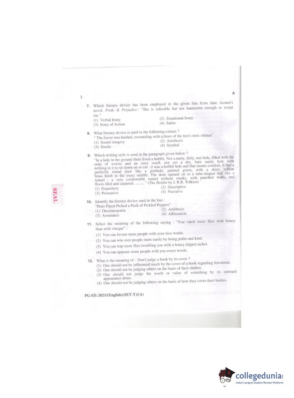 MDUCEE 2021 M.A. (English) Question Paper with Answer Key PDFs