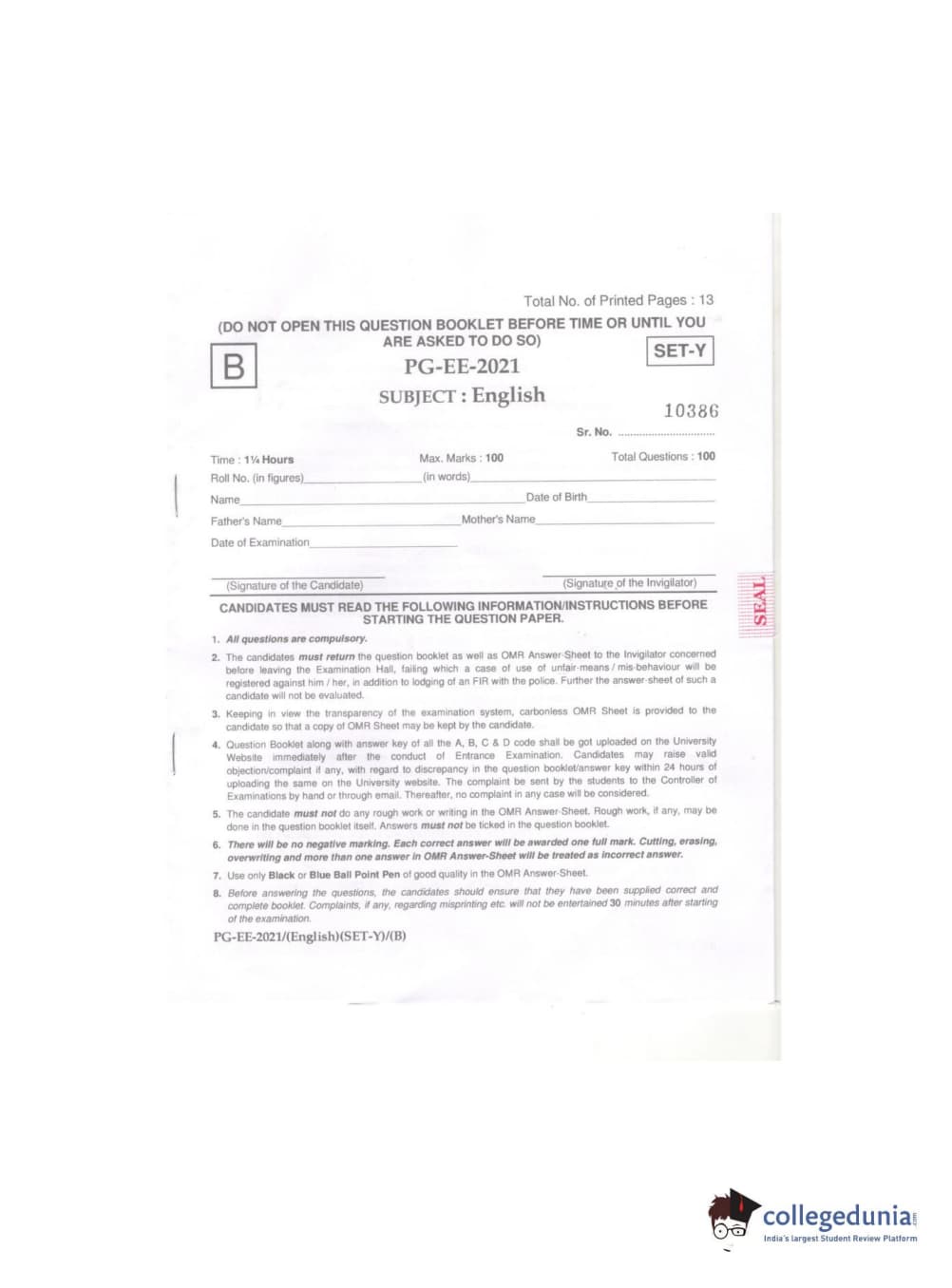 MDUCEE 2021 M.A. (English) Set B Question paper with answer key pdf conducted on September 21, 2021 is available for download. The exam was successfully organized by Maharishi Dayanand University. The question paper comprised a total of 100 questions.